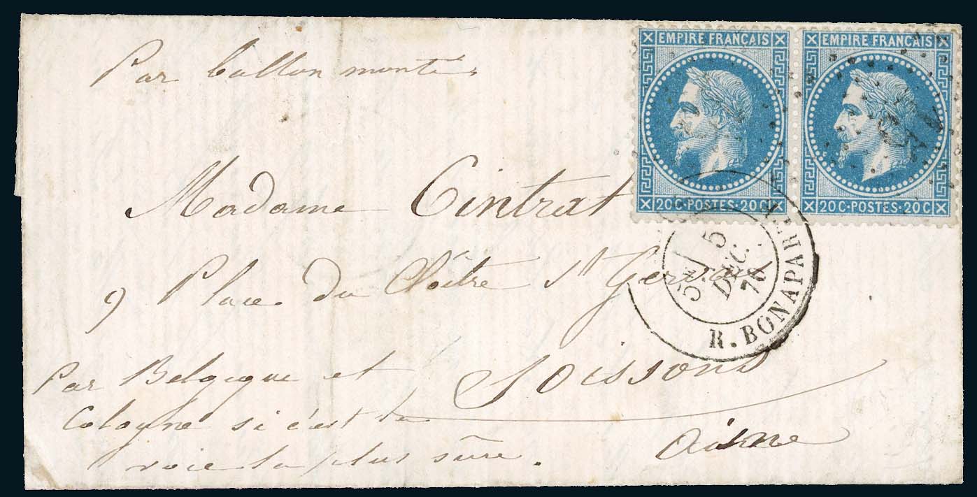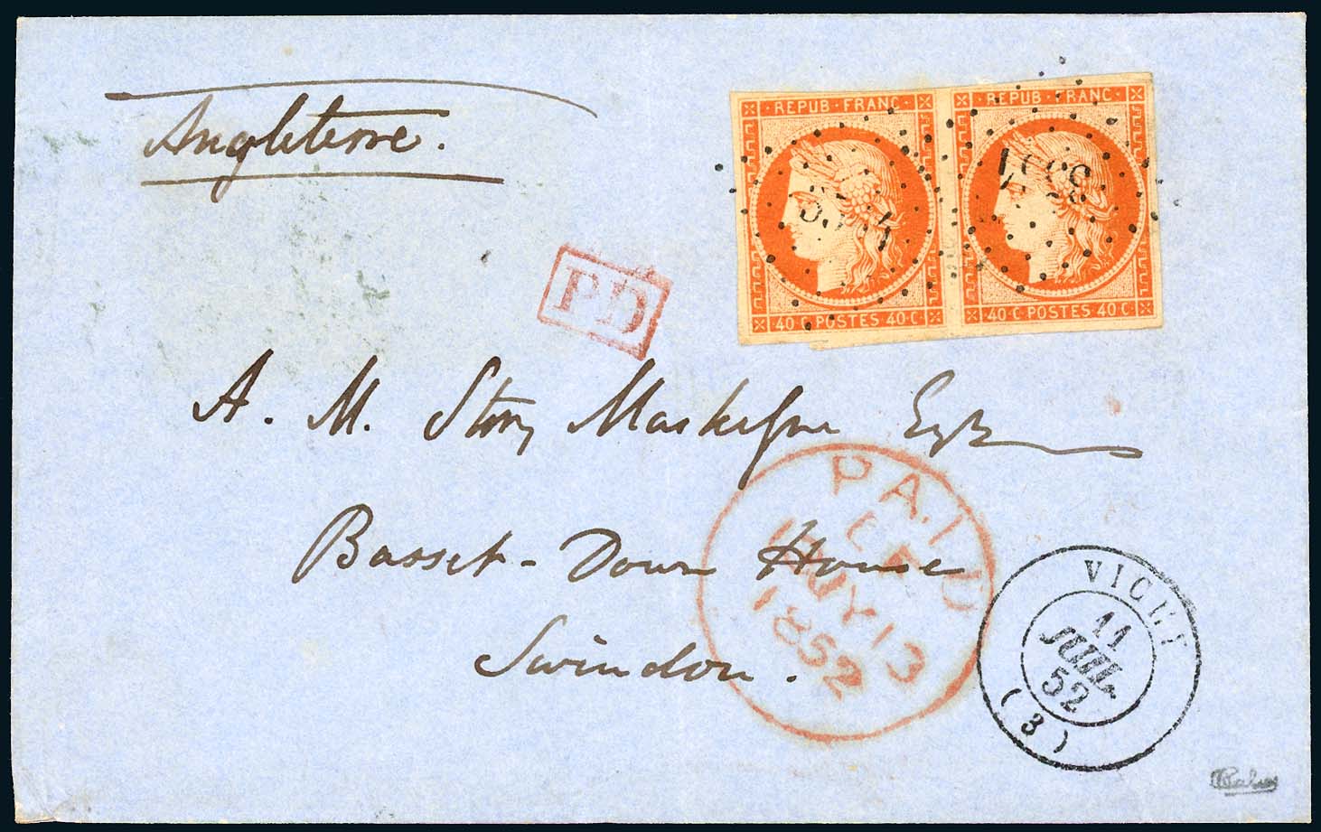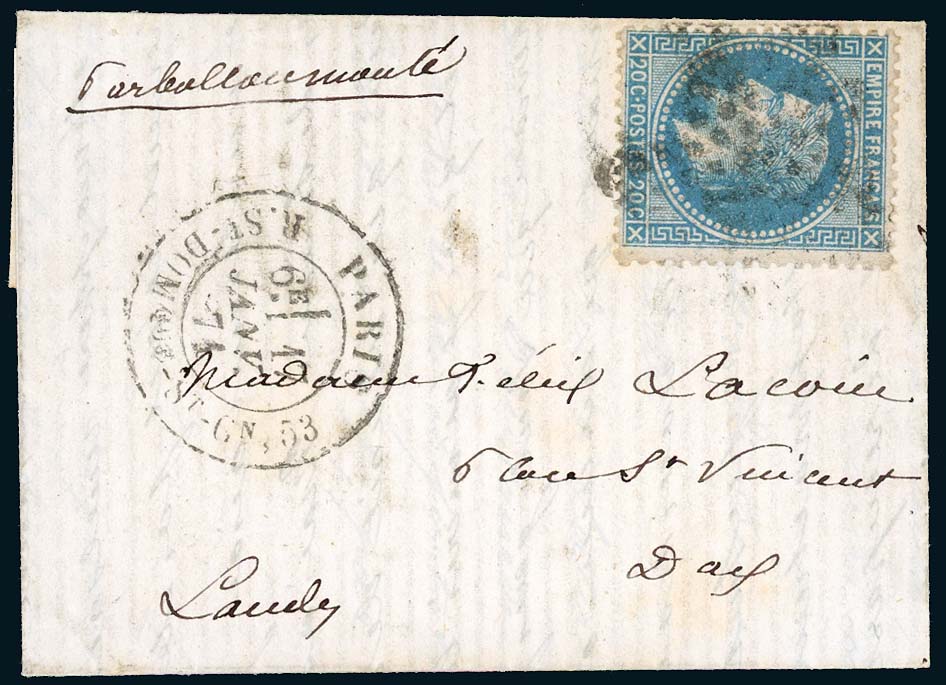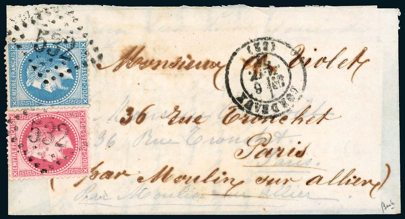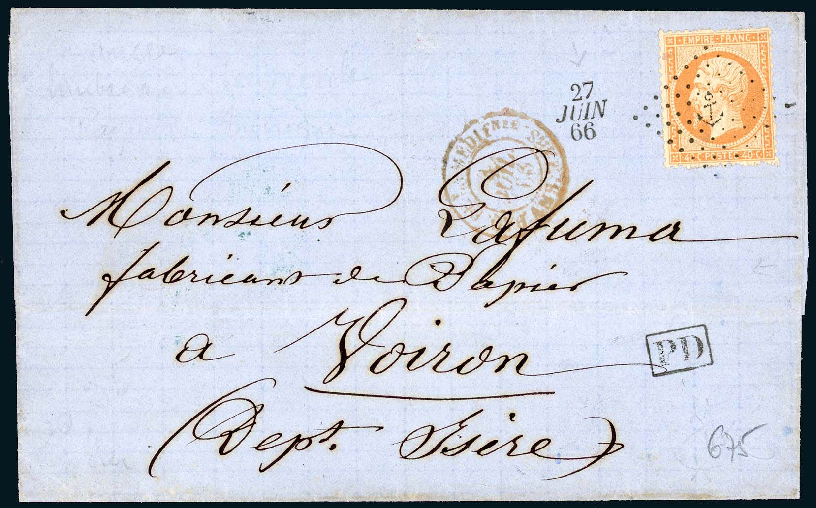30 | N°2 OB étoile légère dégageant bien l'effigie sur lettre de Paris pour Paris, juin 1853 TB/Sup | 500 | 800 | 500 | enchérir | |
