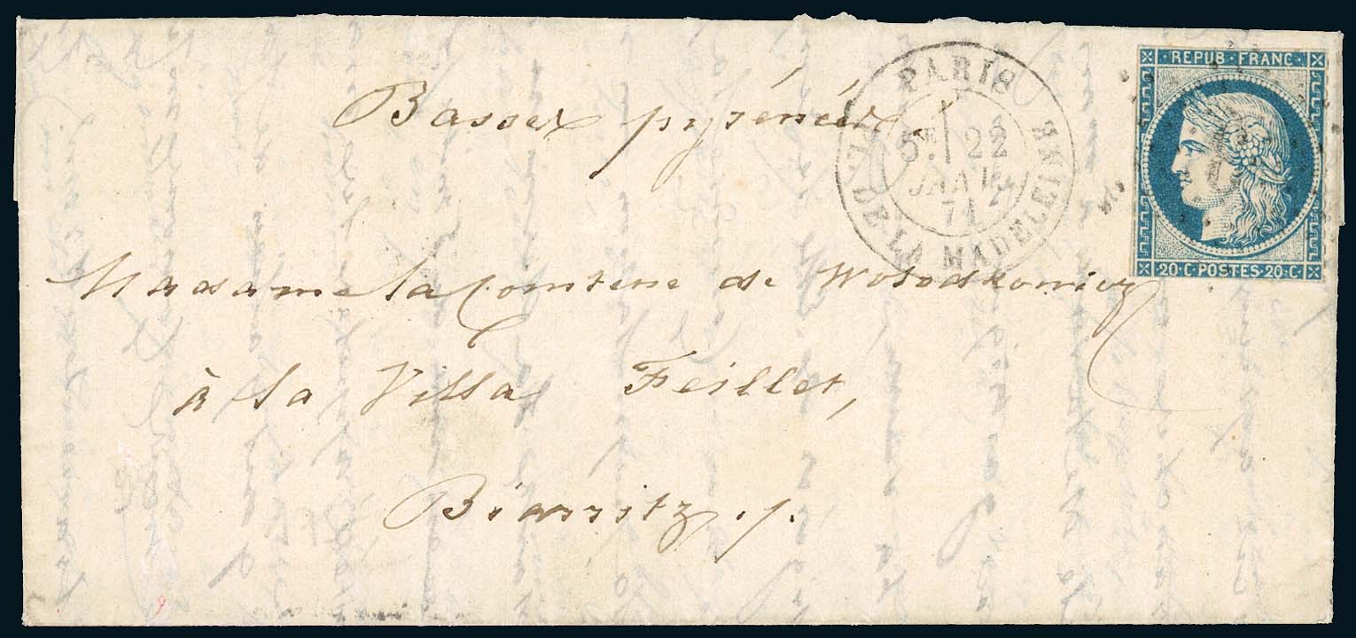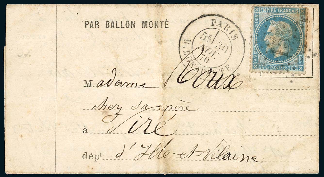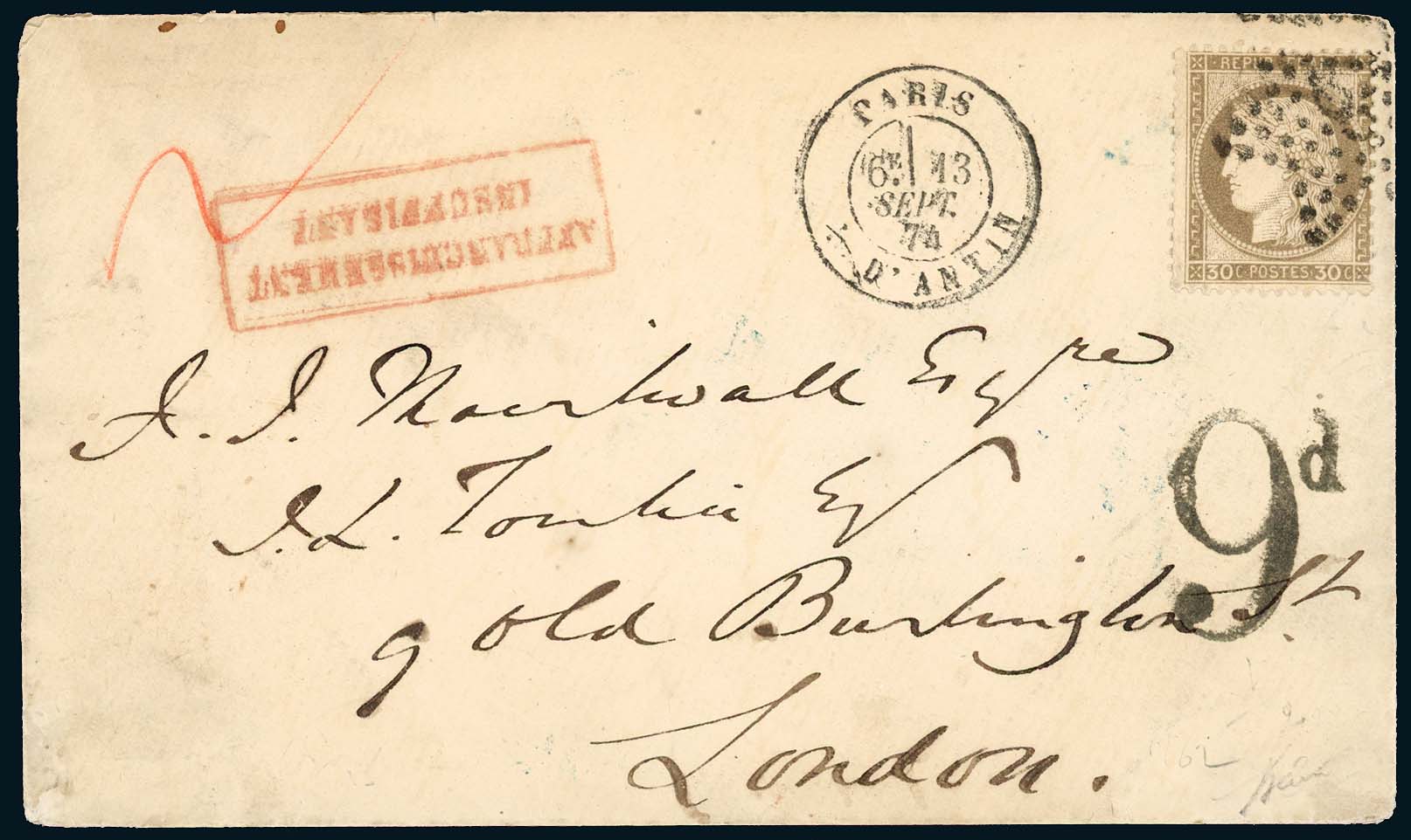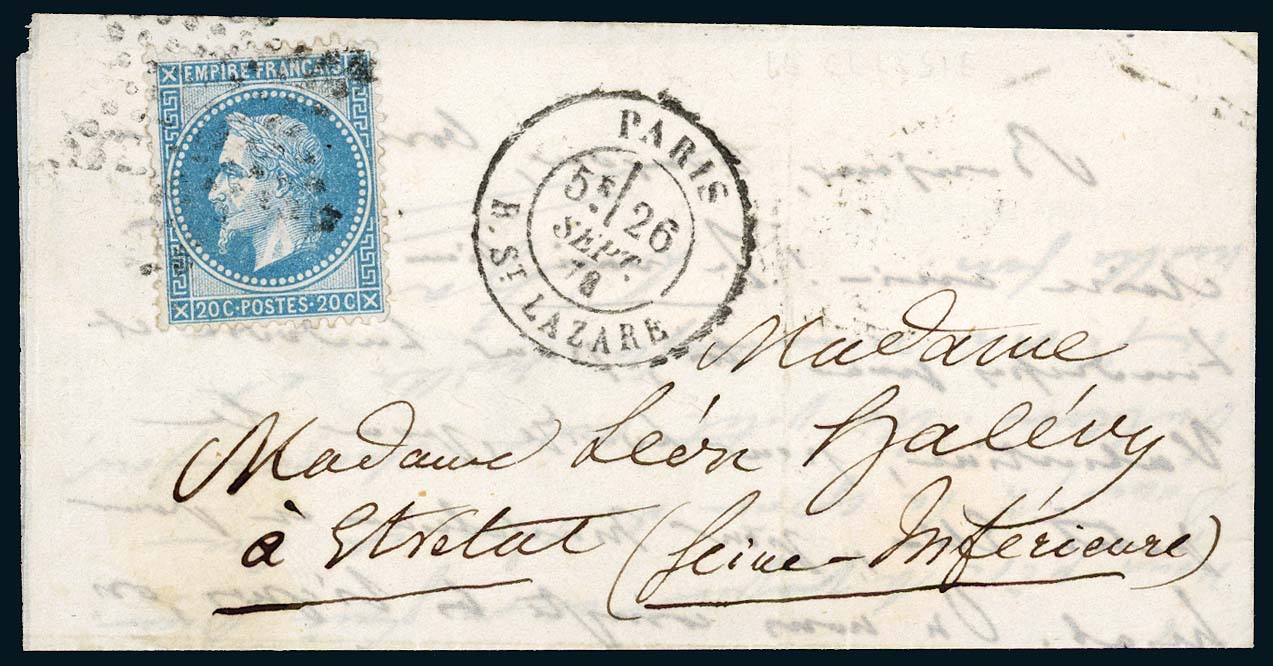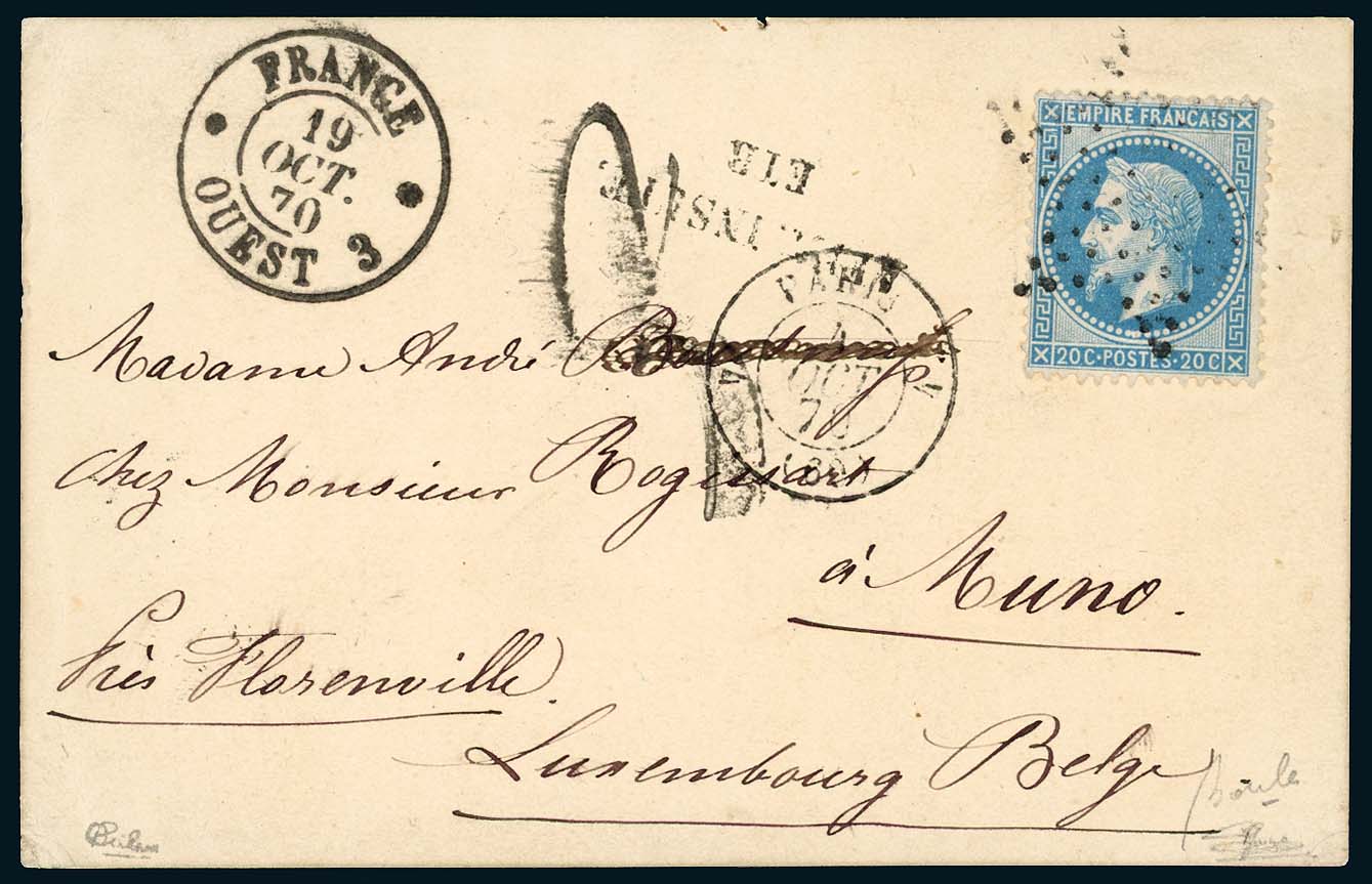 30 | N°2 OB étoile légère dégageant bien l'effigie sur lettre de Paris pour Paris, juin 1853 TB/Sup | 500 | 800 | 500 | enchérir | |