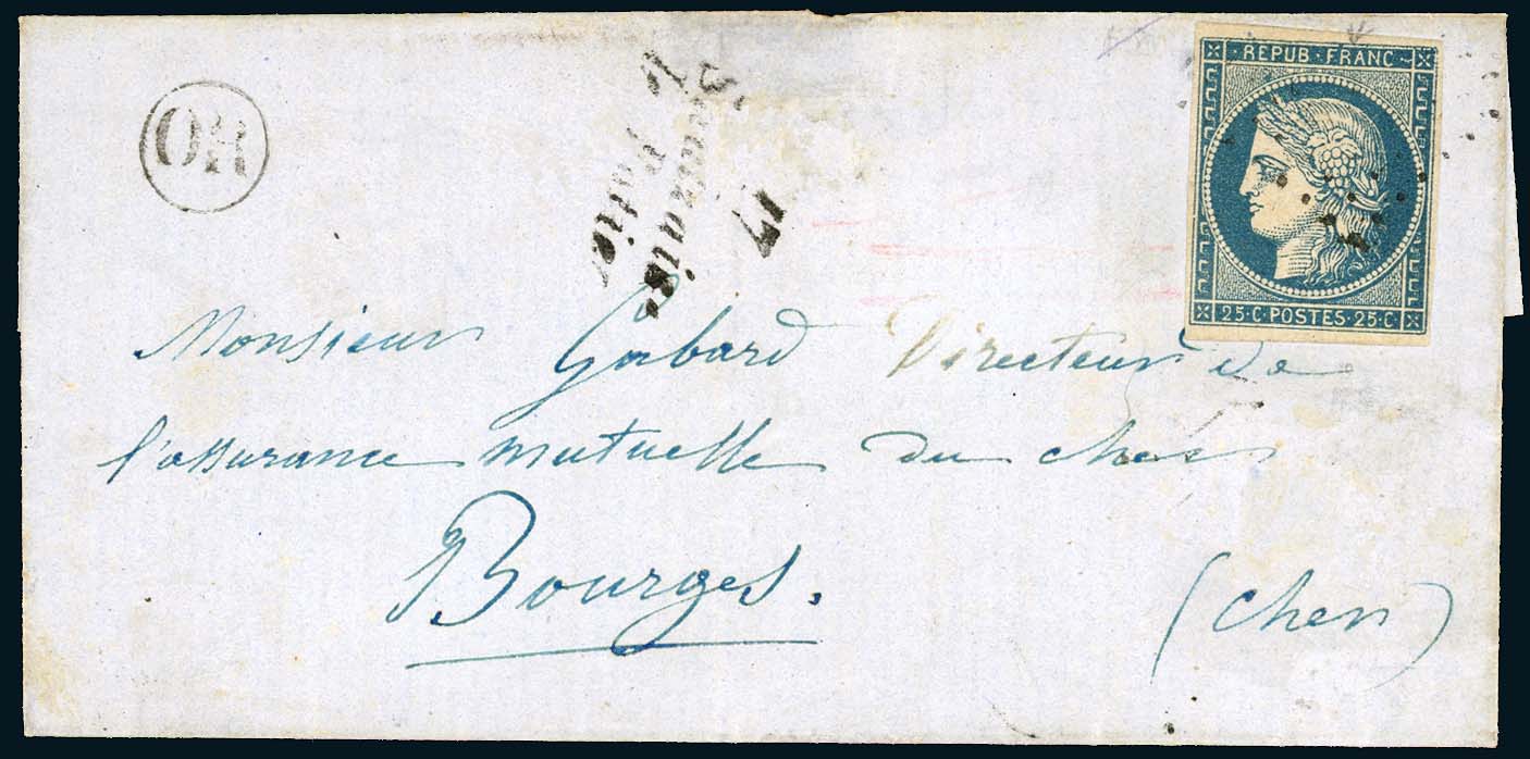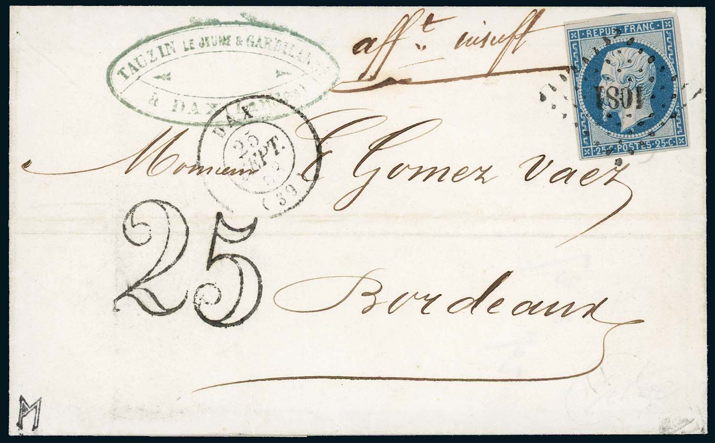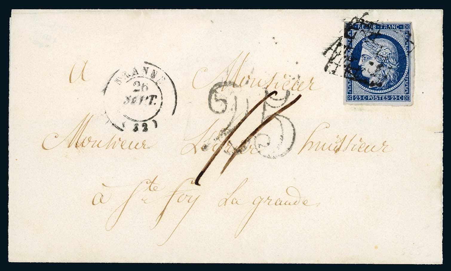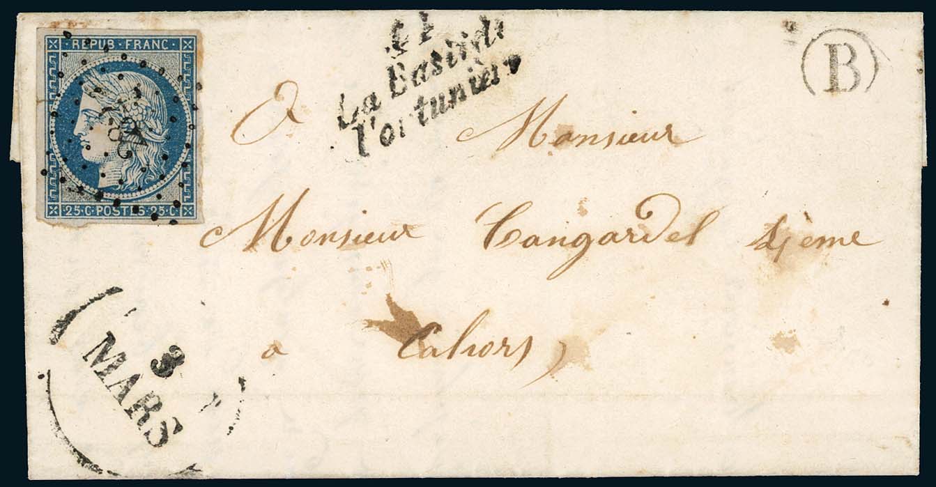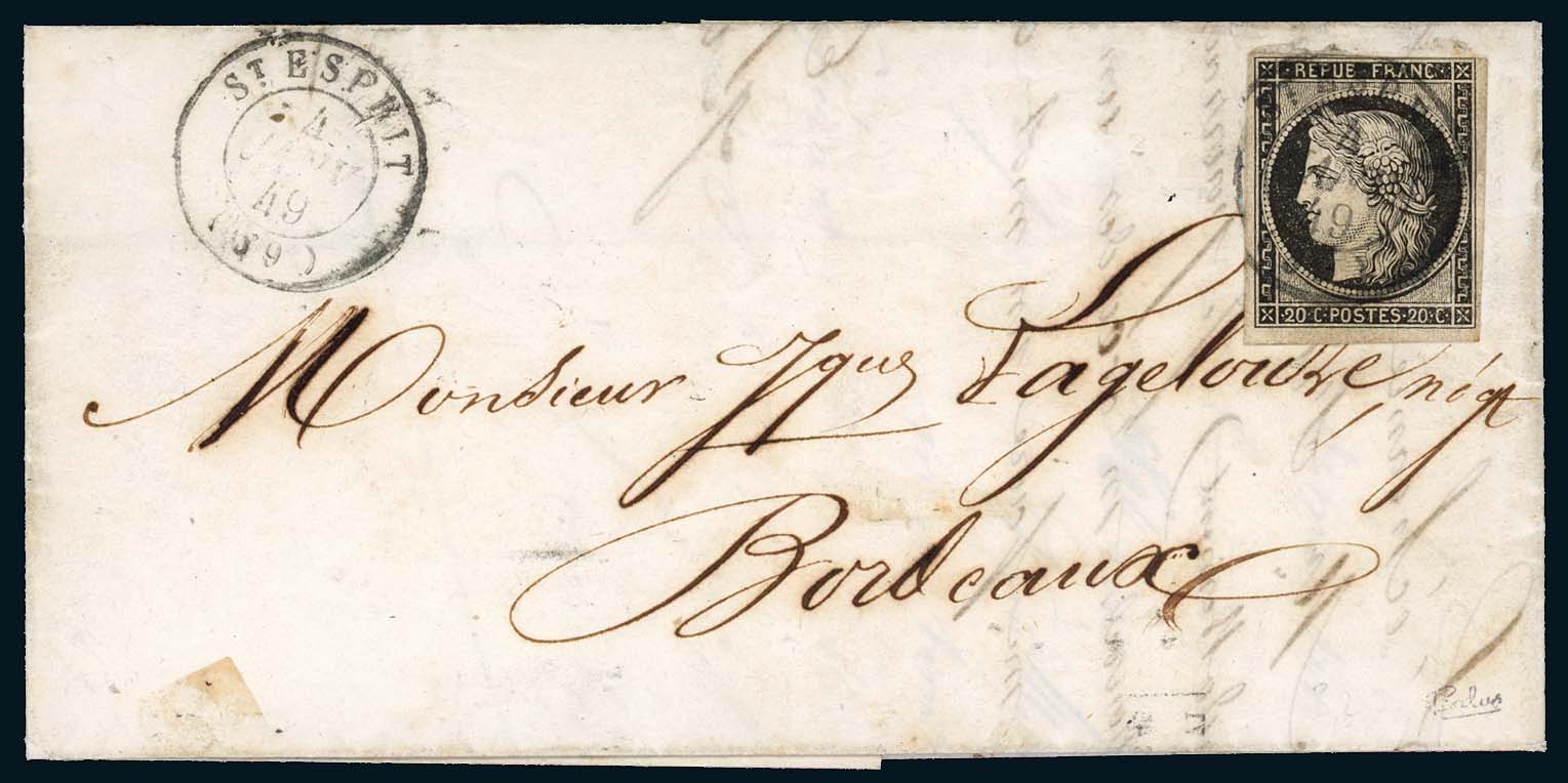 47 | N°3 OB C. ST ESPRIT sur lettre à destination de Bordeaux 4 janvier 1849 Signé Calves TB | 250 | 500 | 250 | enchérir | |