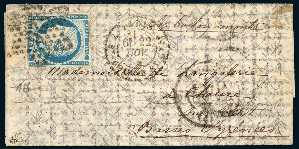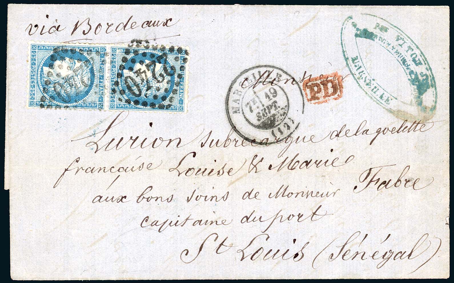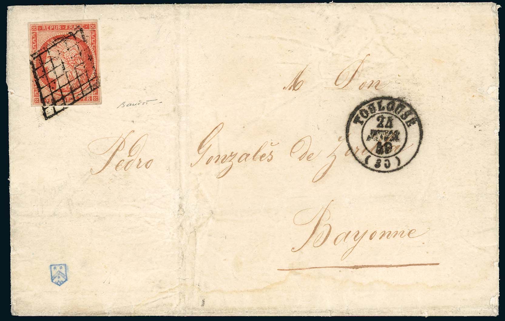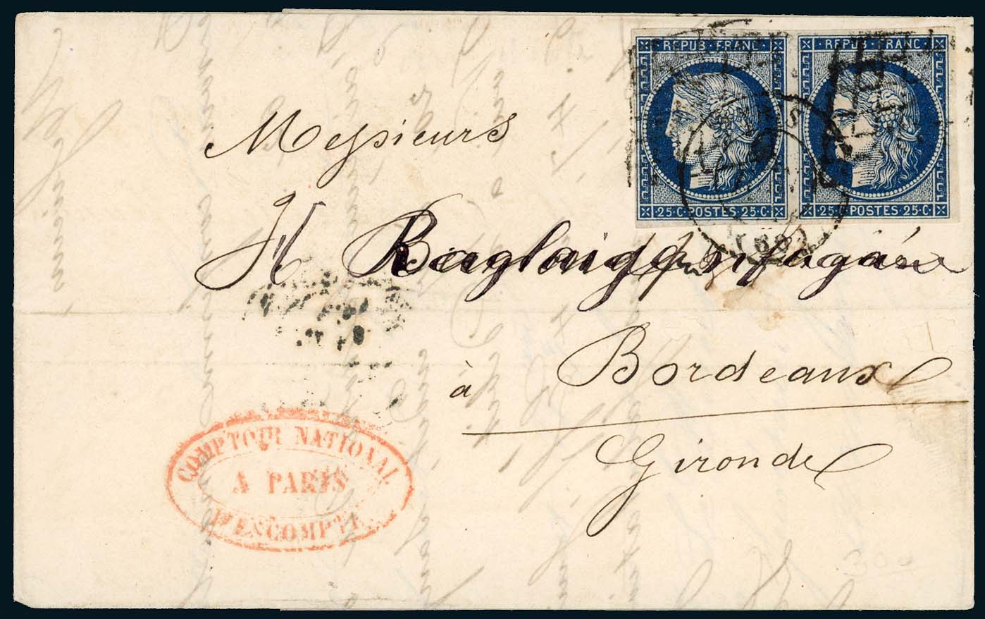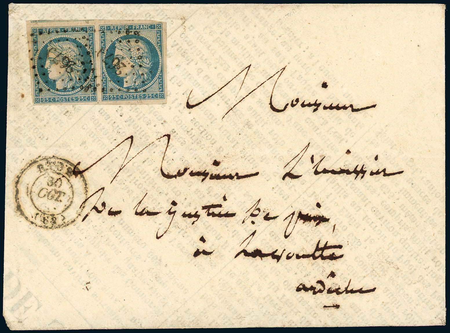 47 | N°3 OB C. ST ESPRIT sur lettre à destination de Bordeaux 4 janvier 1849 Signé Calves TB | 250 | 500 | 250 | enchérir | |