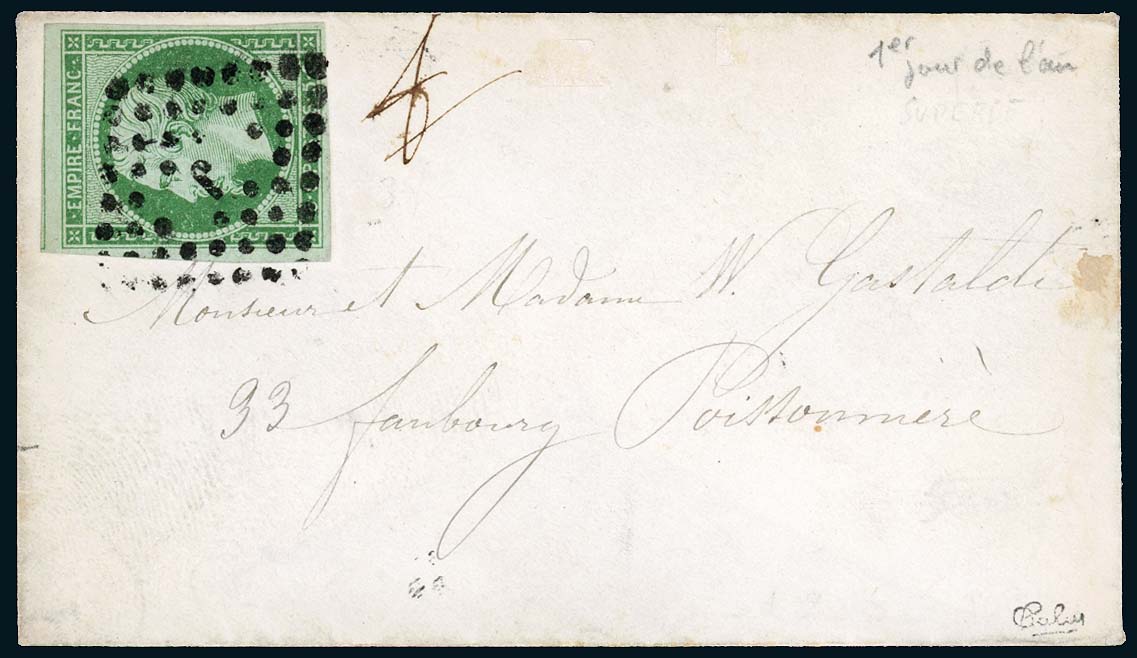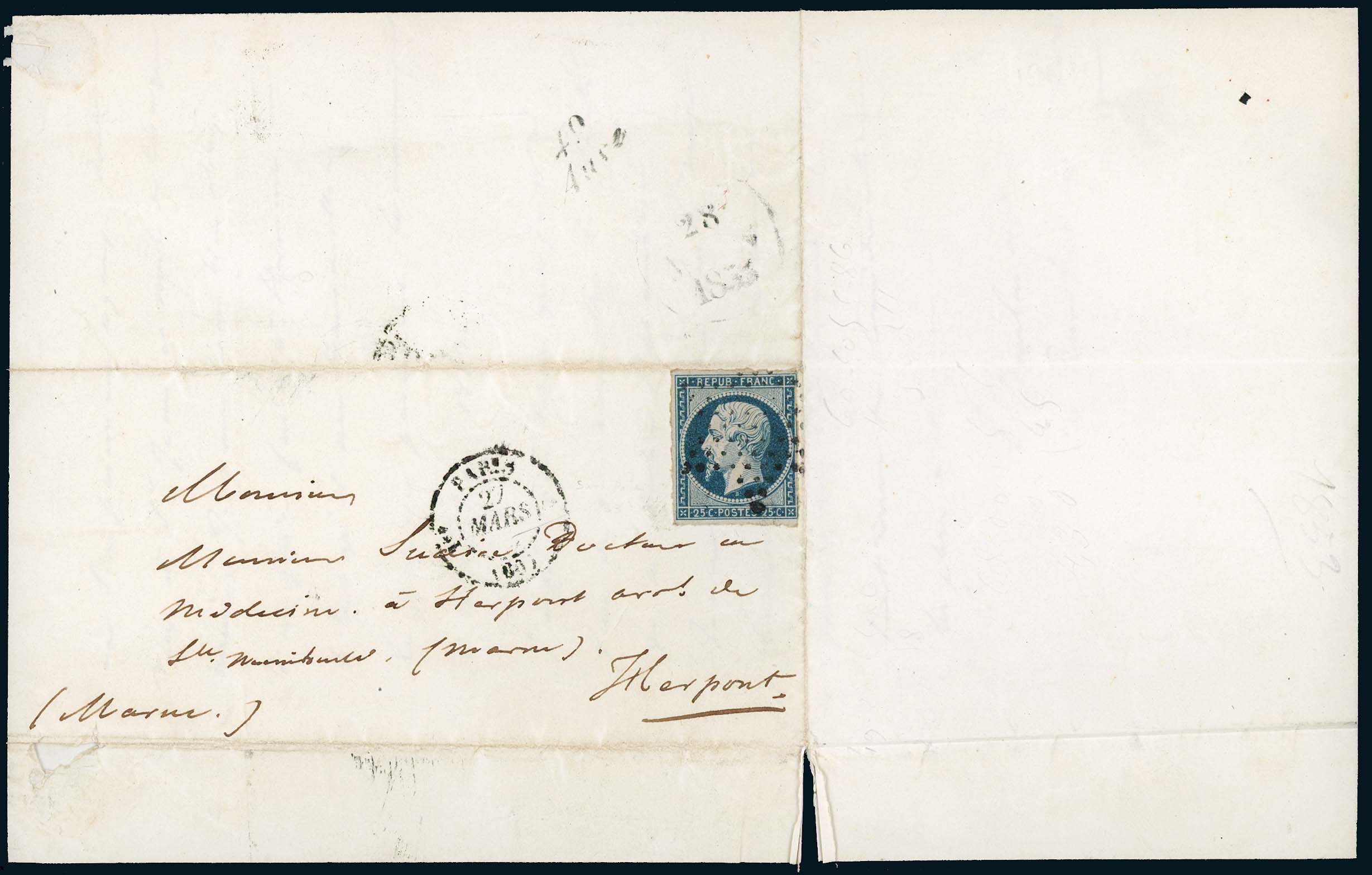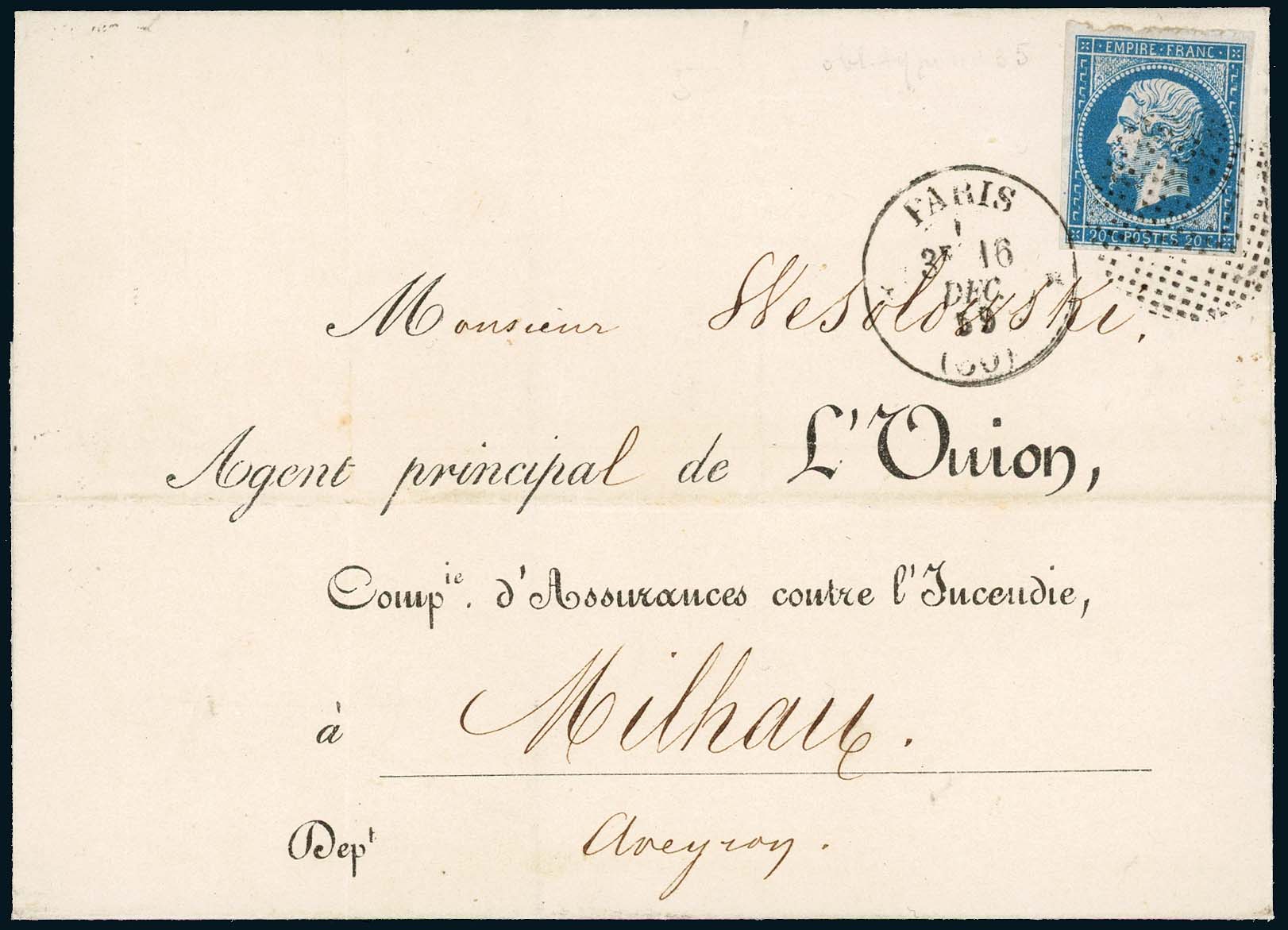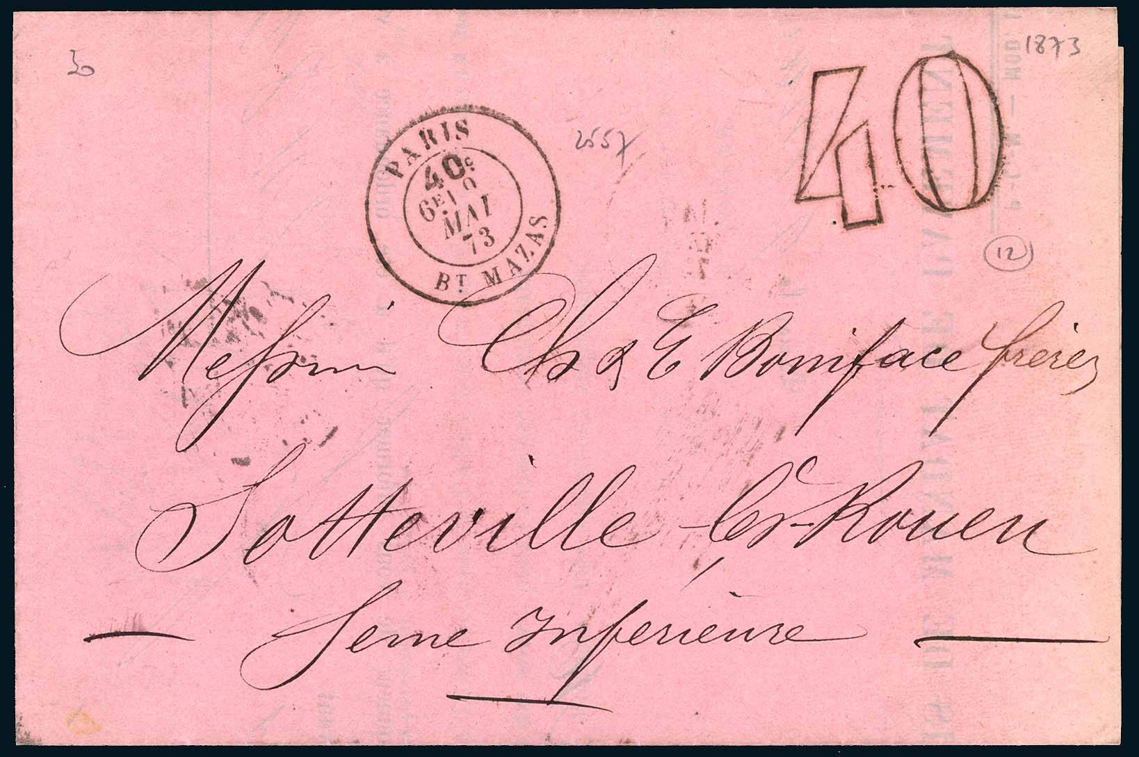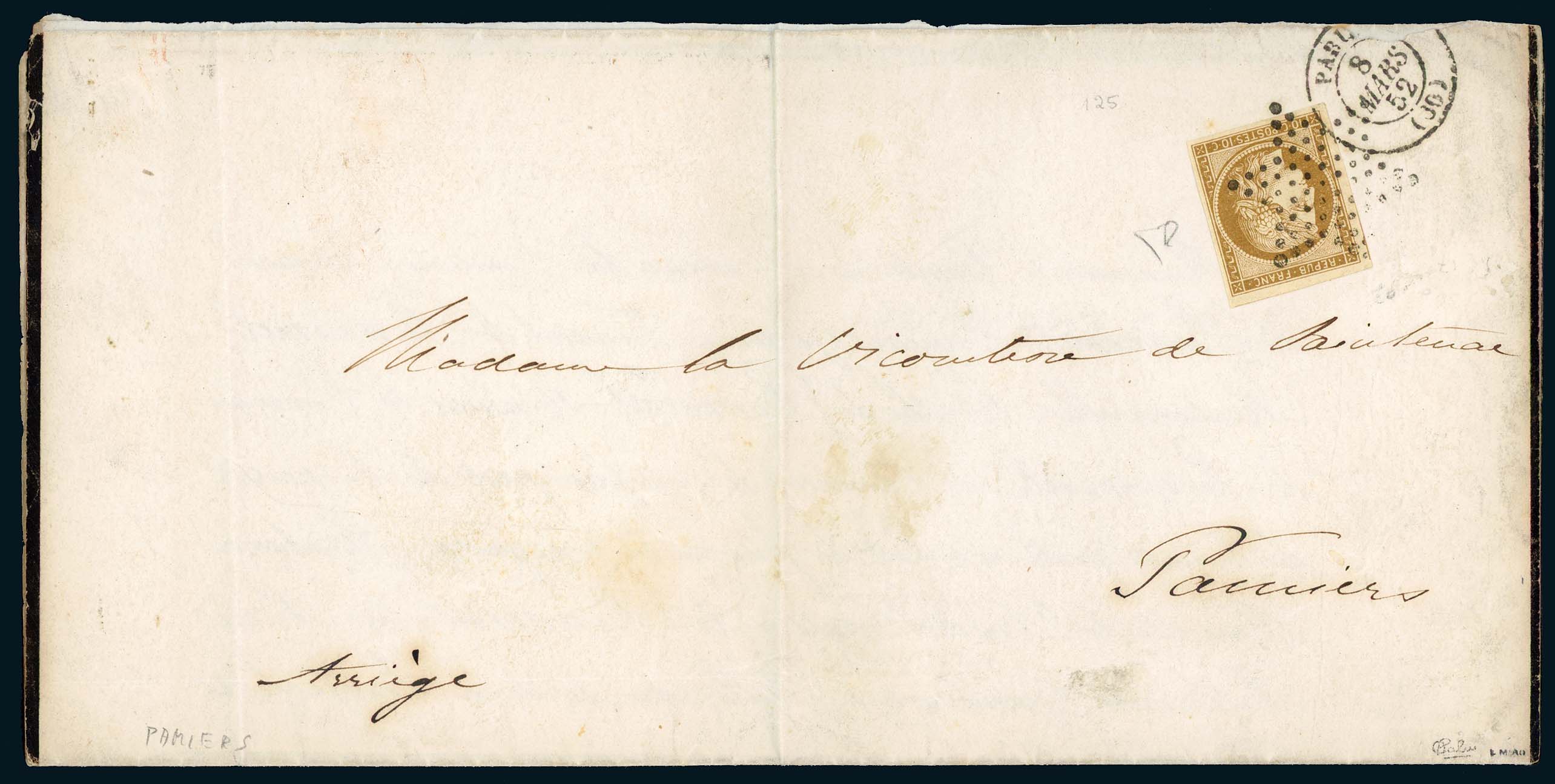 12 | N°1 OB étoile muette sur faire-part de Paris pour Pamiers (Ariège) 8 mars 1852 TB | 150 | 300 | 150 | enchérir | |