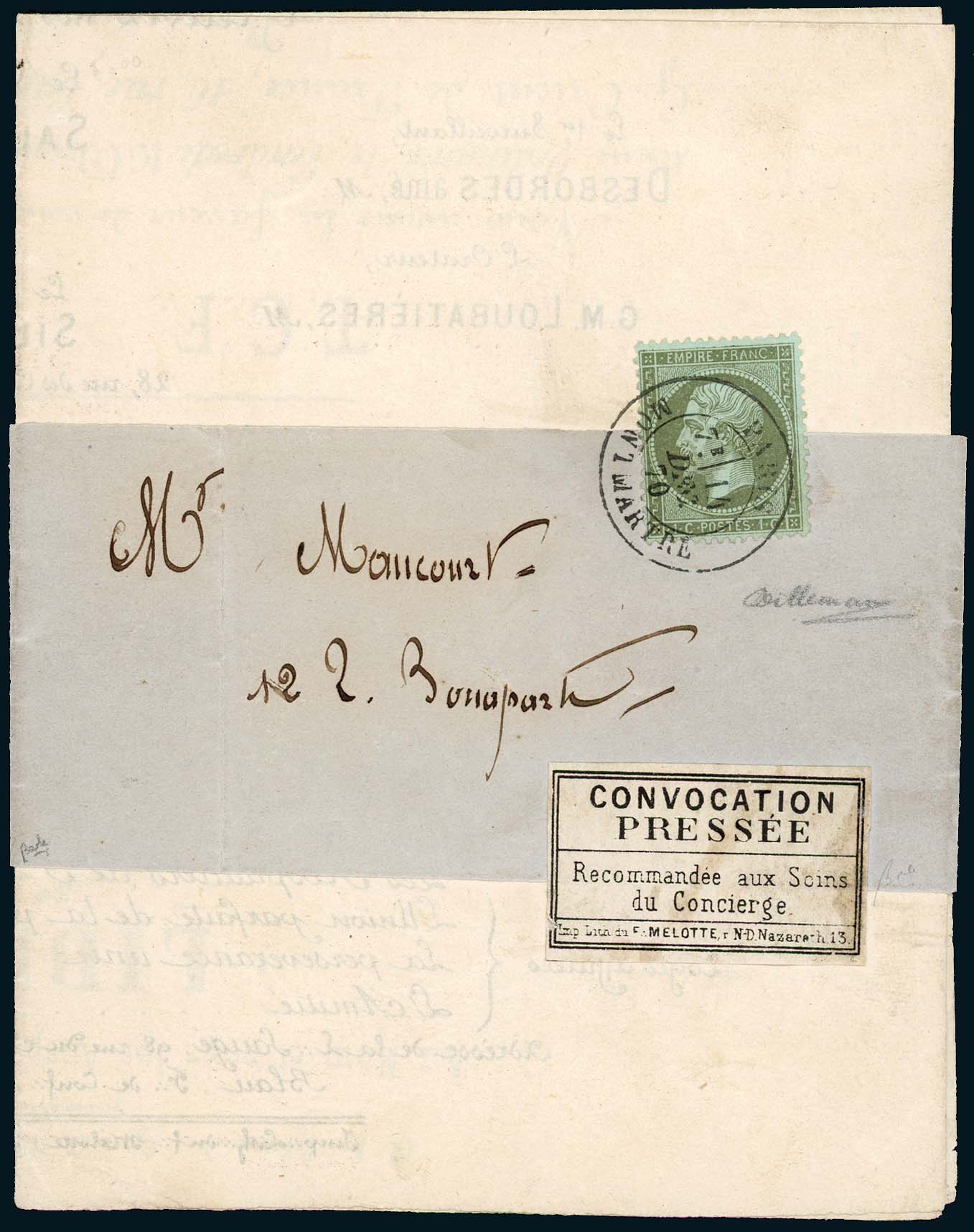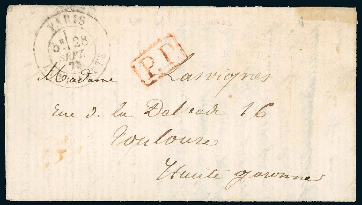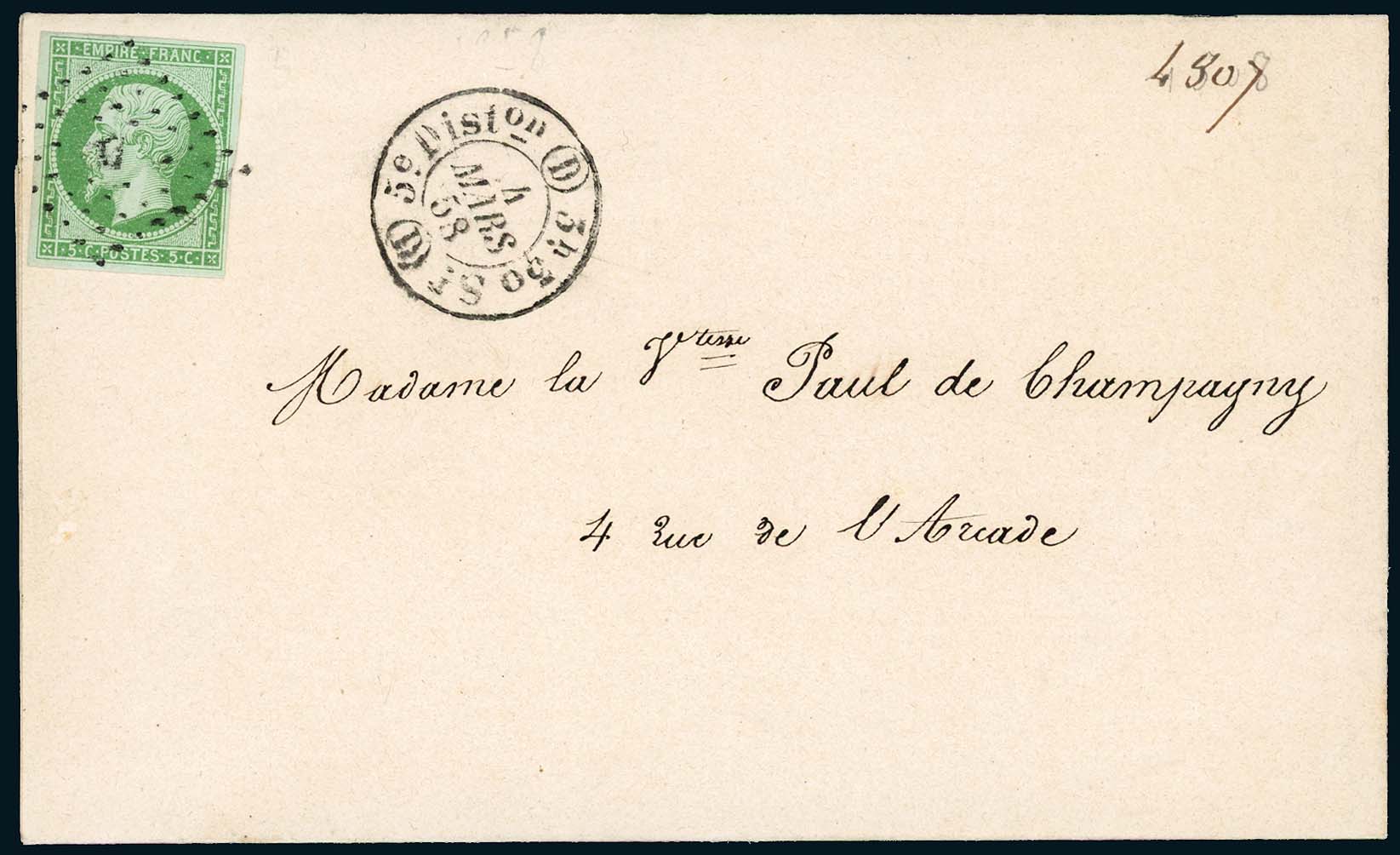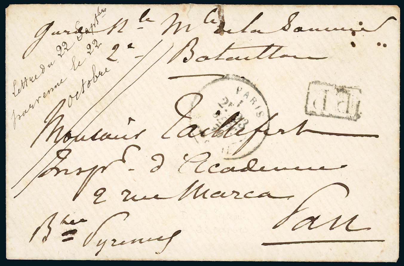 12 | N°1 OB étoile muette sur faire-part de Paris pour Pamiers (Ariège) 8 mars 1852 TB | 150 | 300 | 150 | enchérir | |
