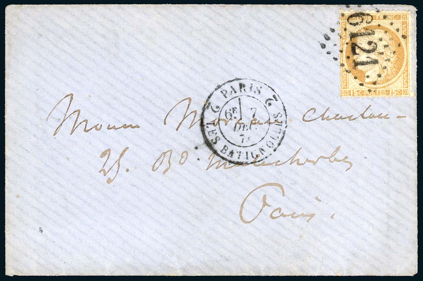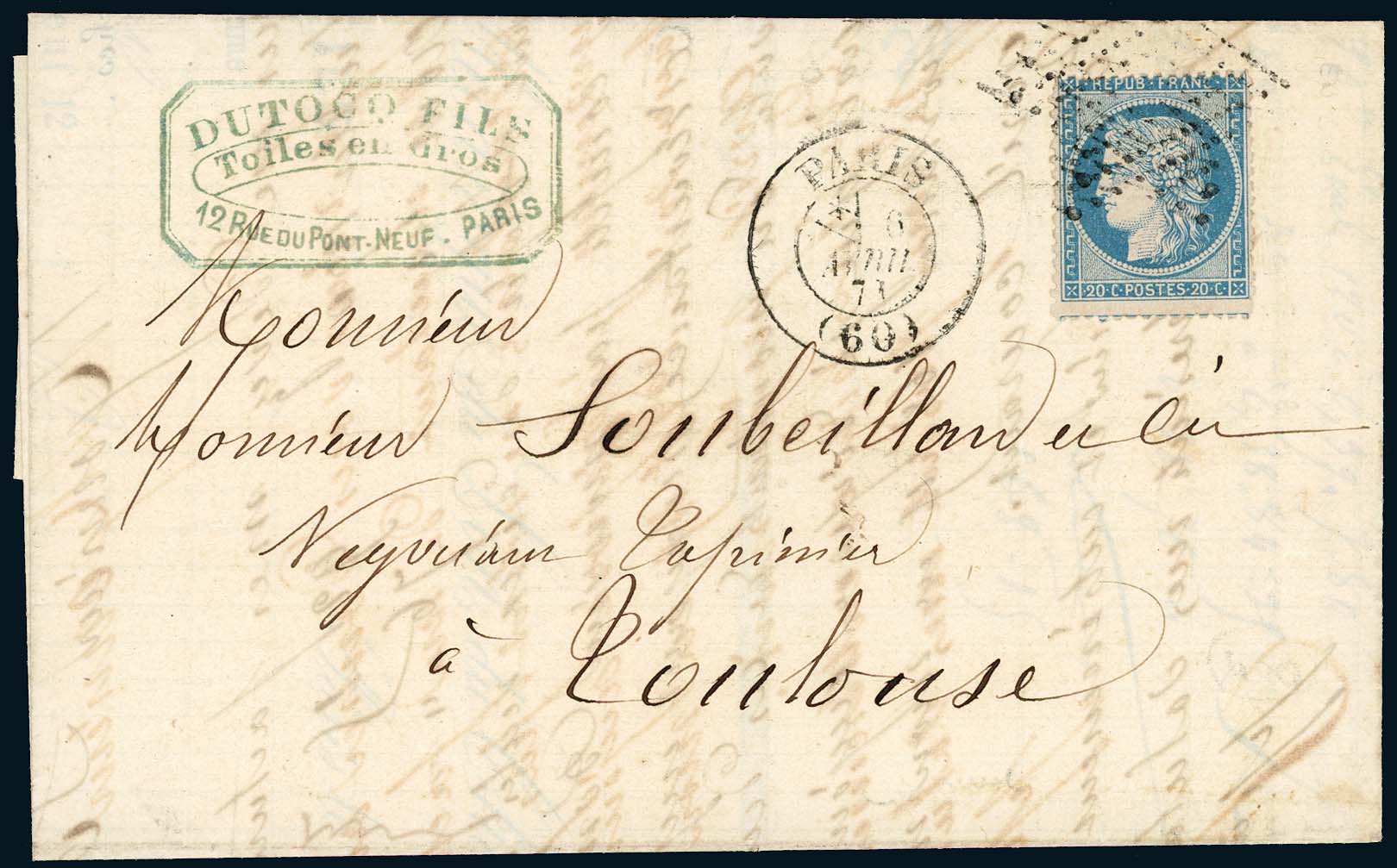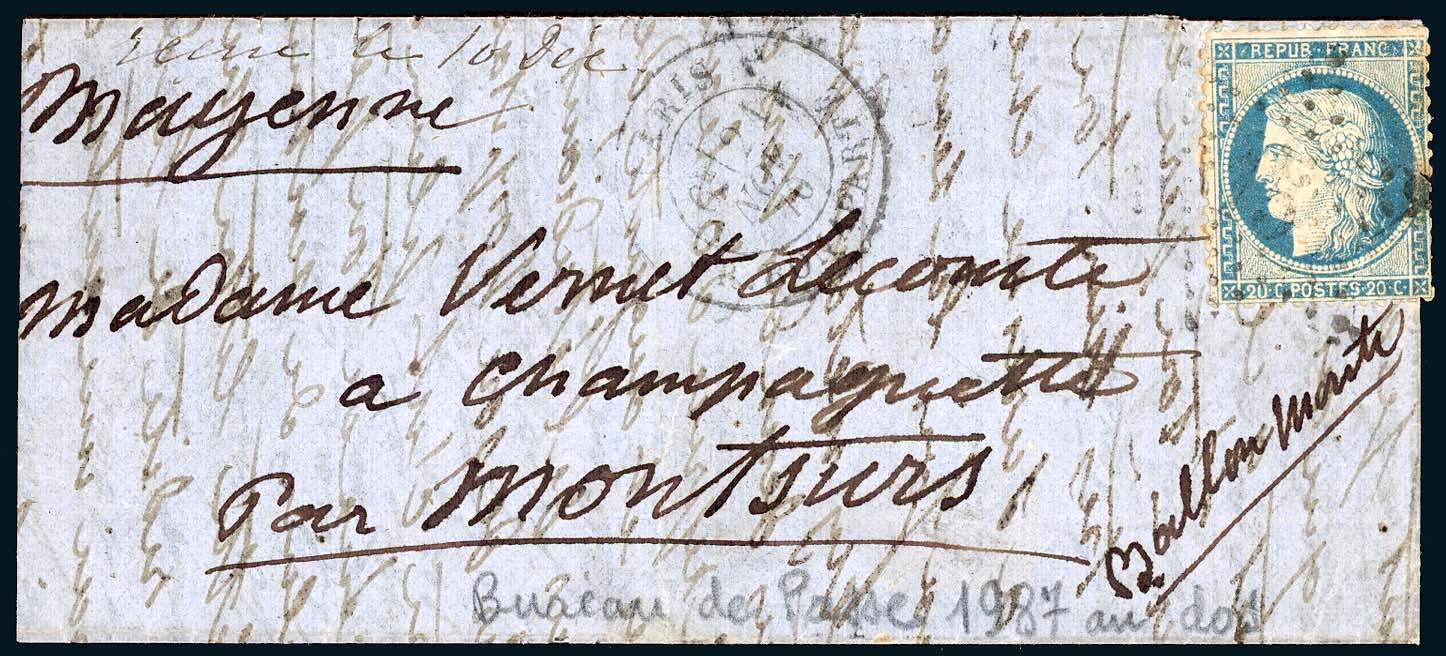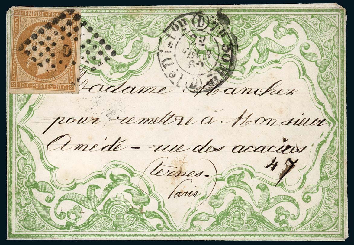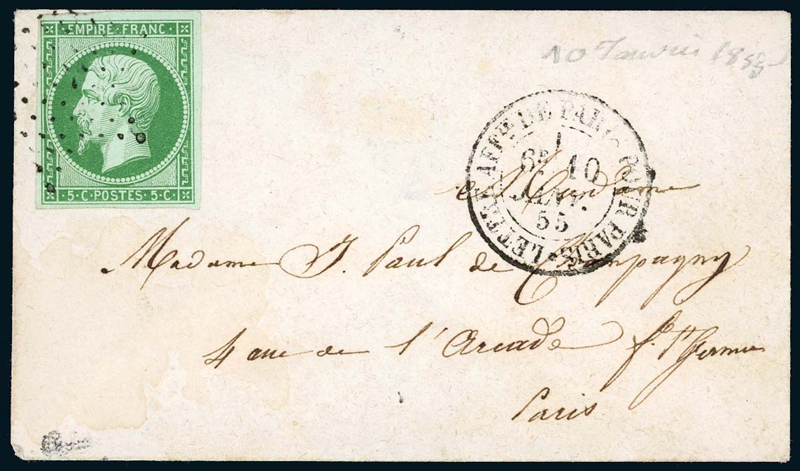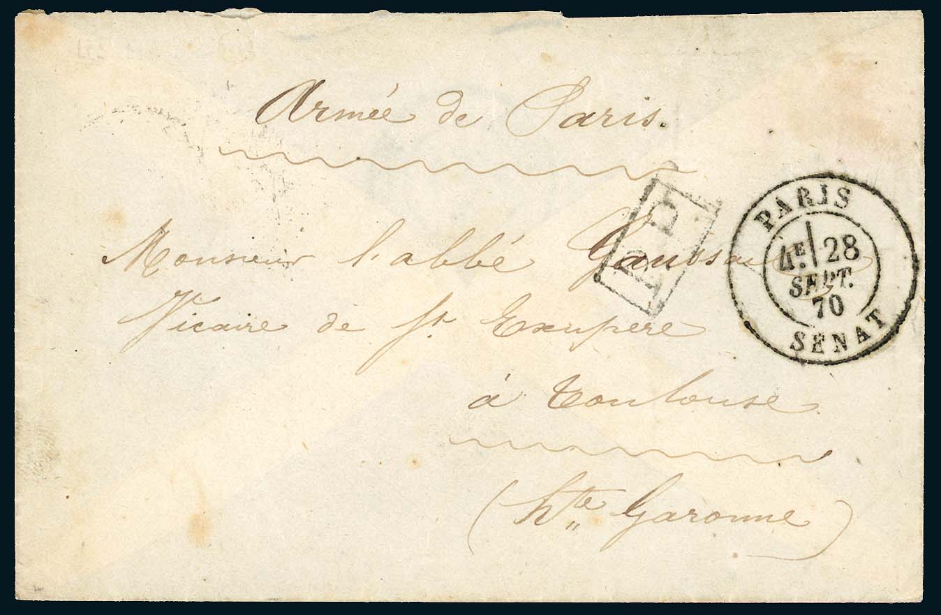 12 | N°1 OB étoile muette sur faire-part de Paris pour Pamiers (Ariège) 8 mars 1852 TB | 150 | 300 | 150 | enchérir | |