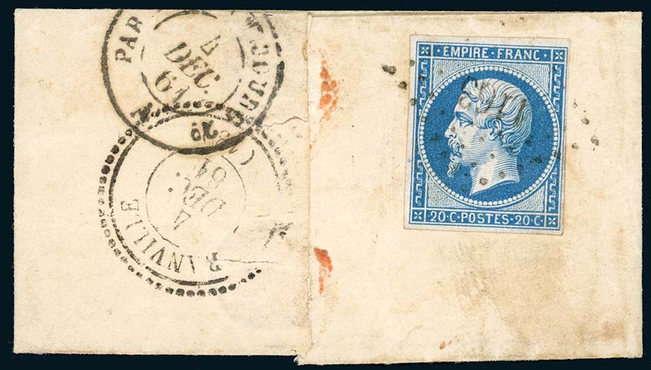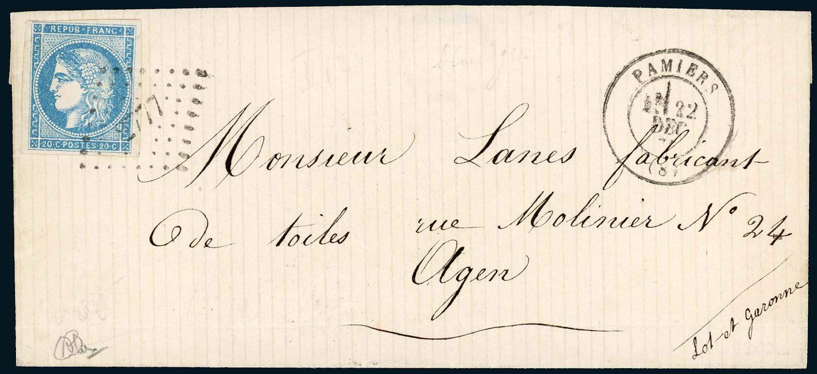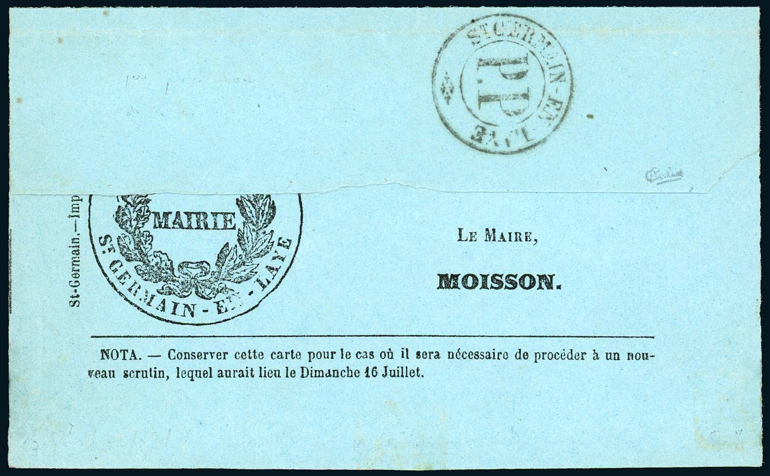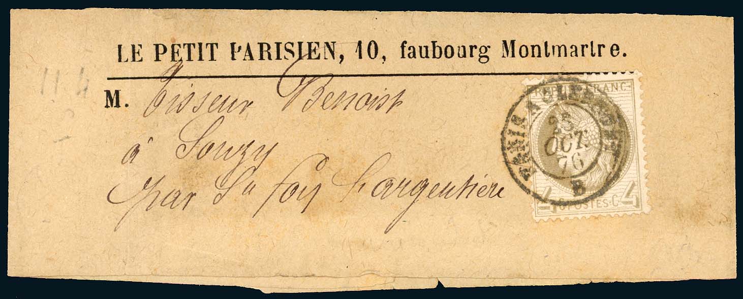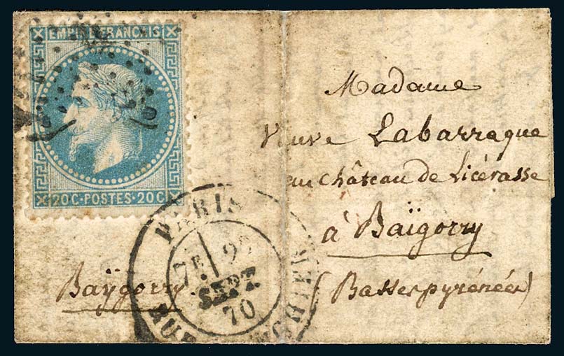 12 | N°1 OB étoile muette sur faire-part de Paris pour Pamiers (Ariège) 8 mars 1852 TB | 150 | 300 | 150 | enchérir | |