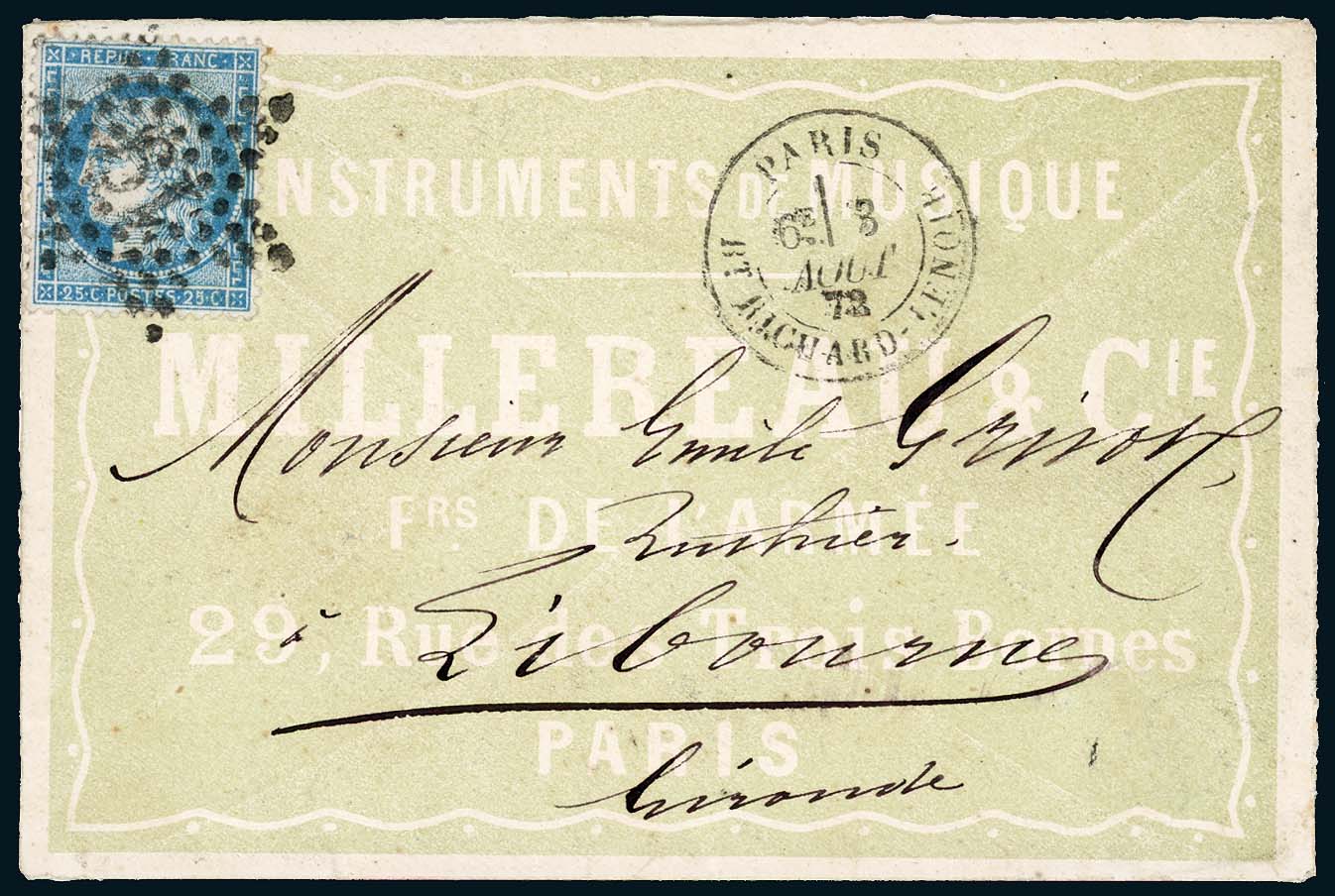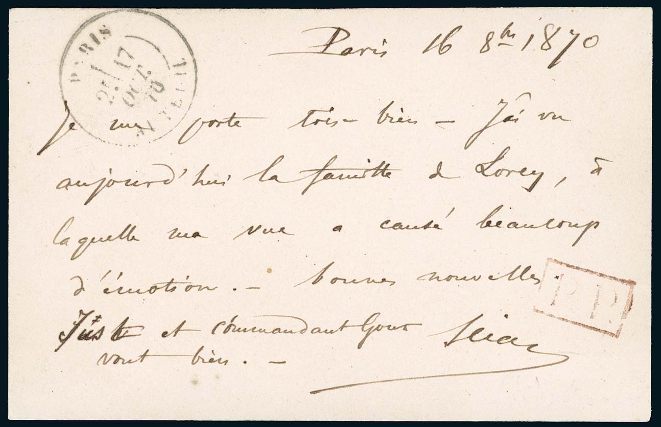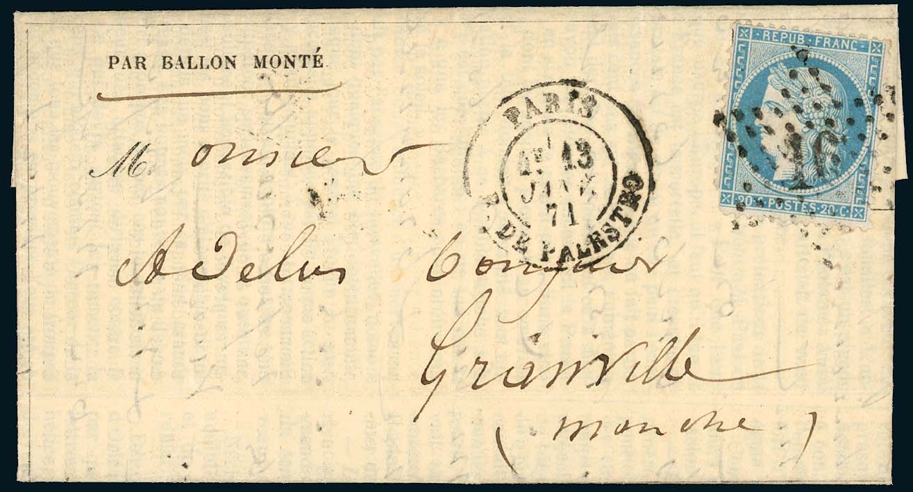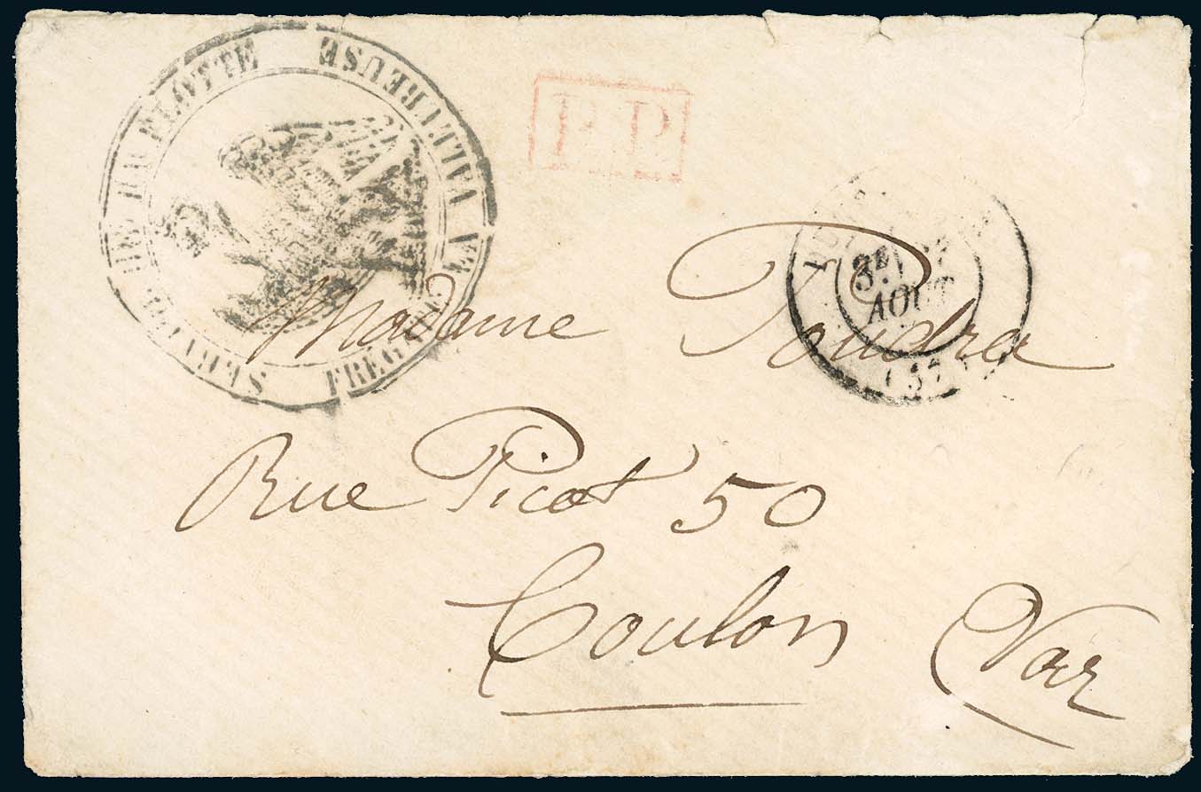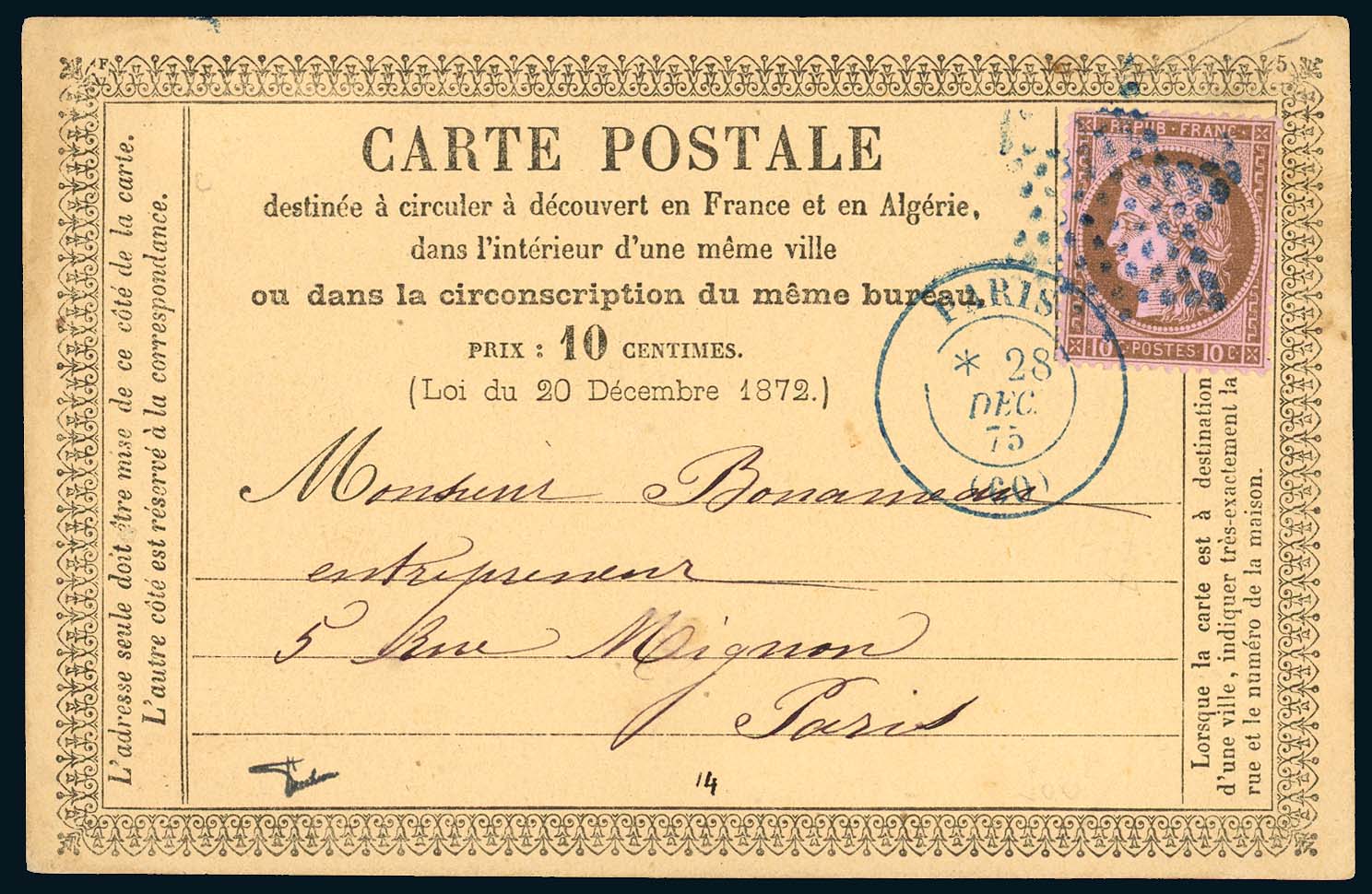 12 | N°1 OB étoile muette sur faire-part de Paris pour Pamiers (Ariège) 8 mars 1852 TB | 150 | 300 | 150 | enchérir | |
