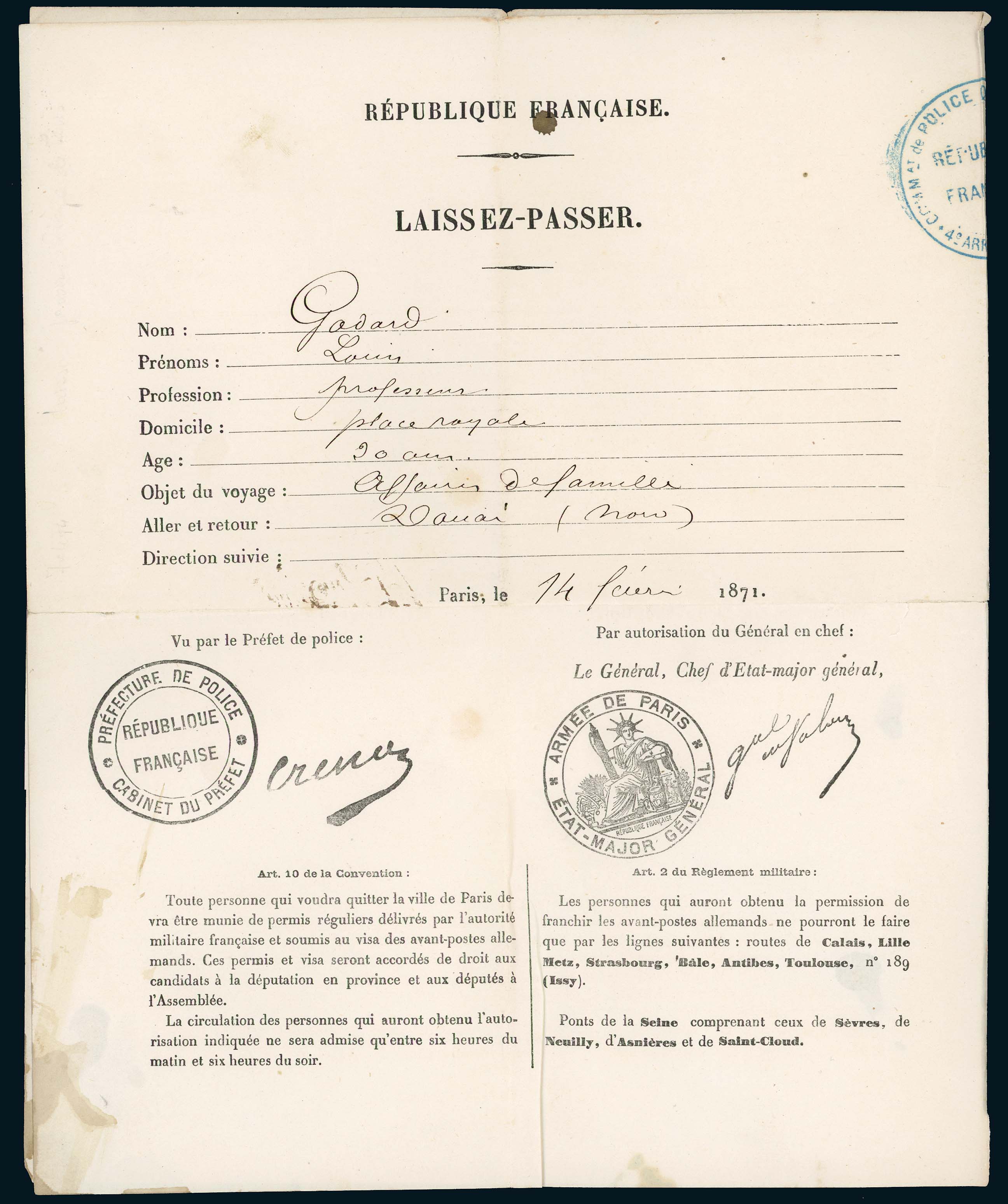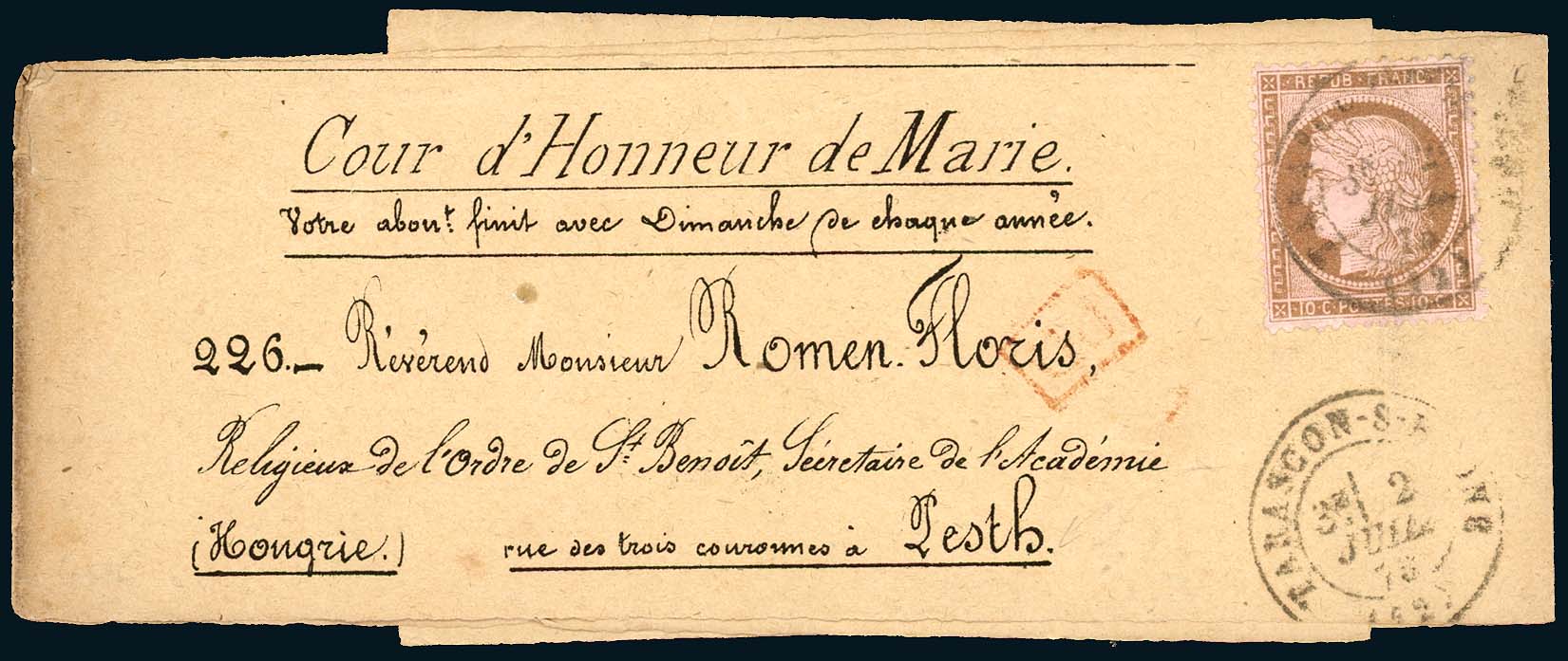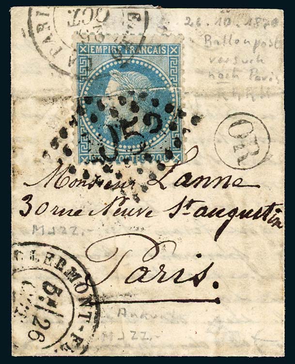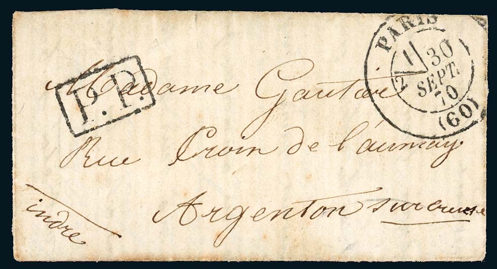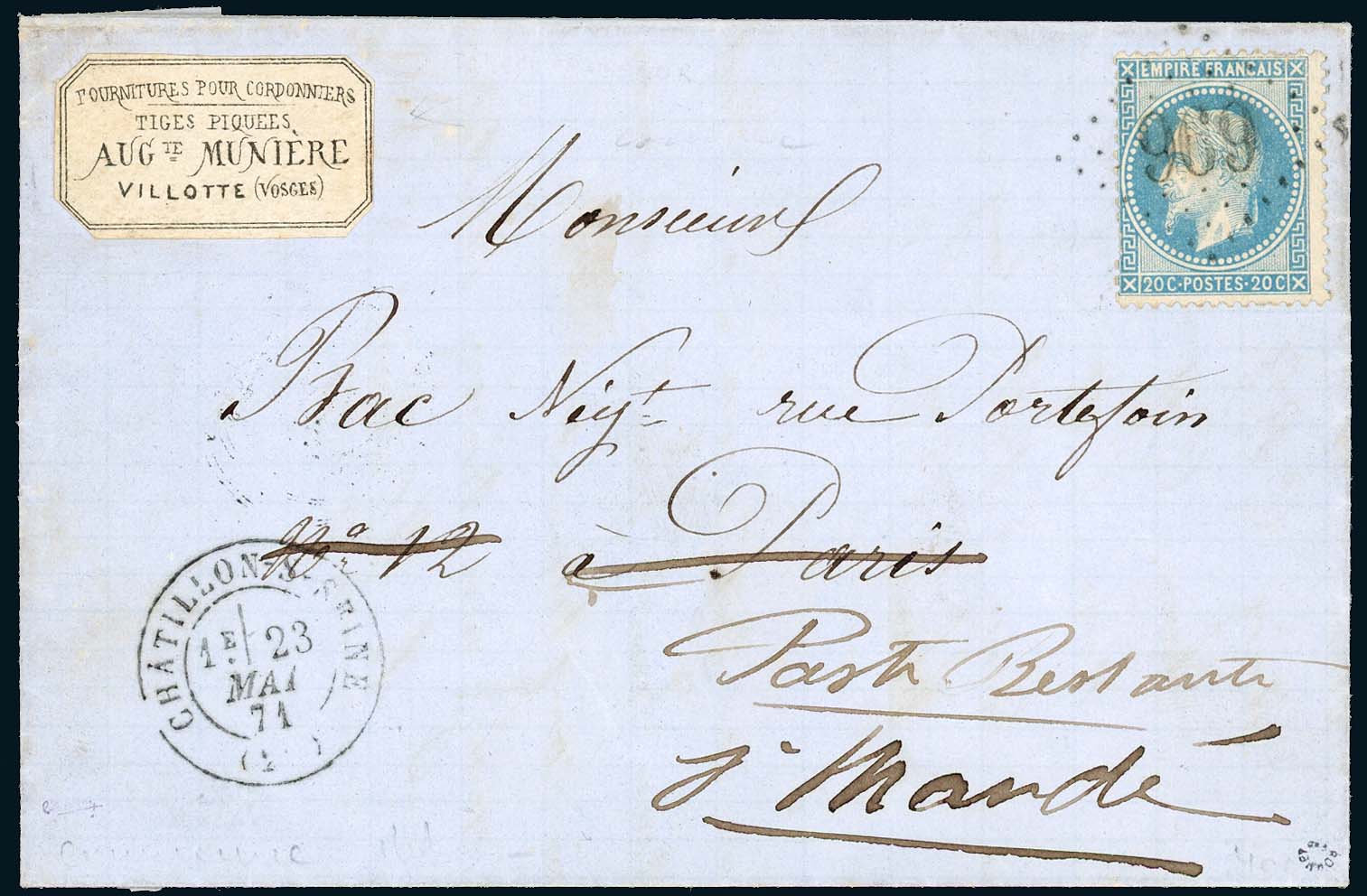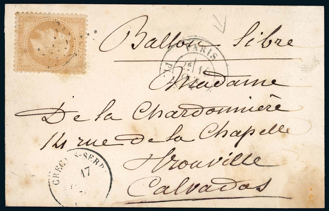 12 | N°1 OB étoile muette sur faire-part de Paris pour Pamiers (Ariège) 8 mars 1852 TB | 150 | 300 | 150 | enchérir | |