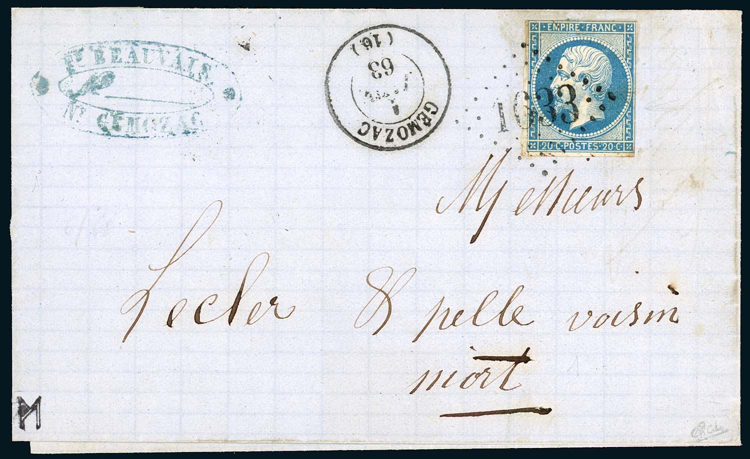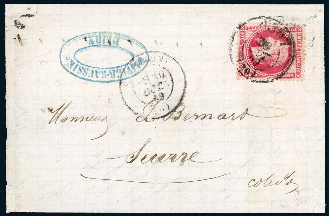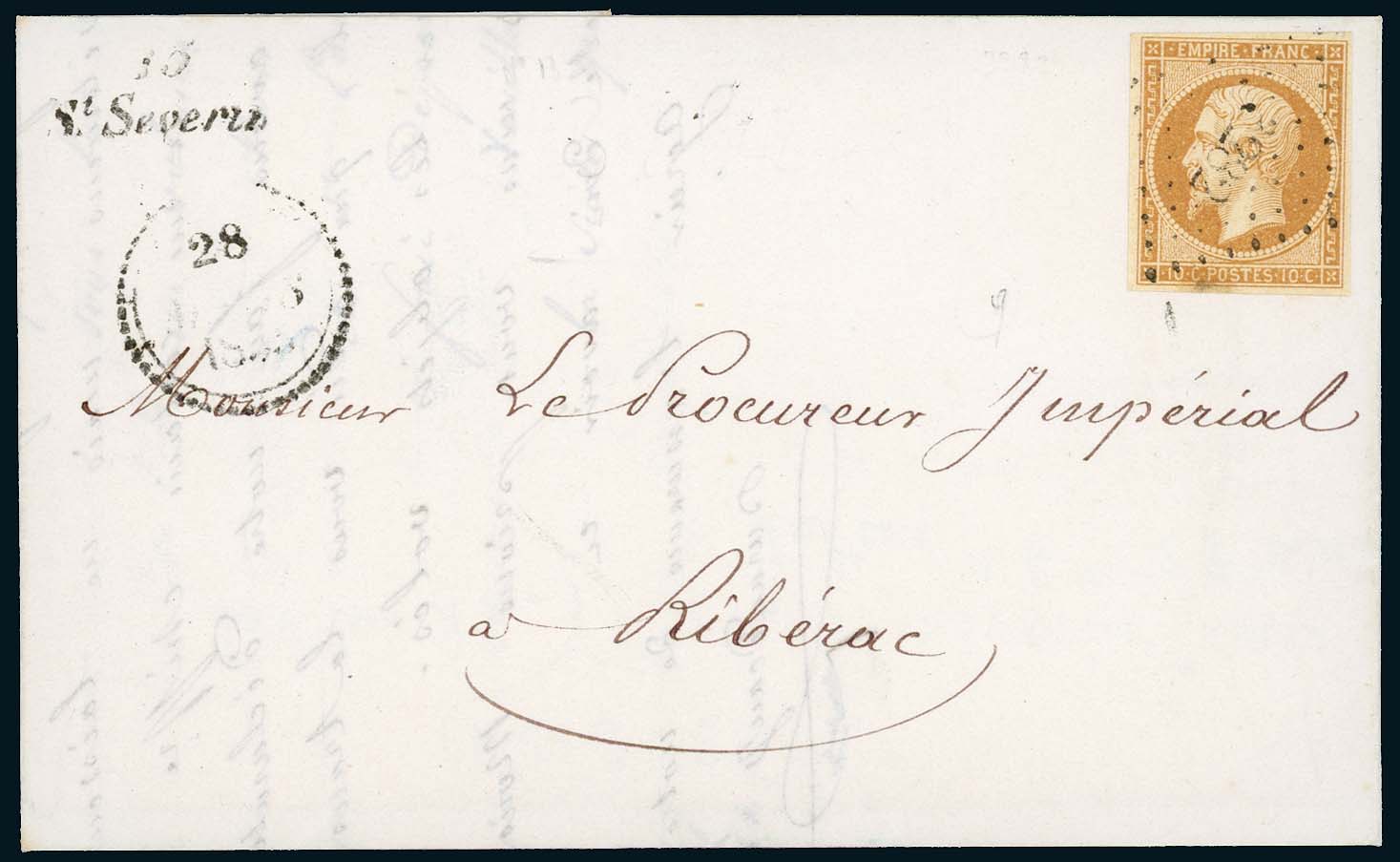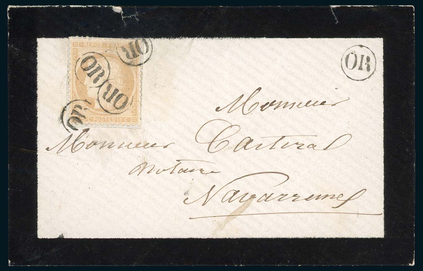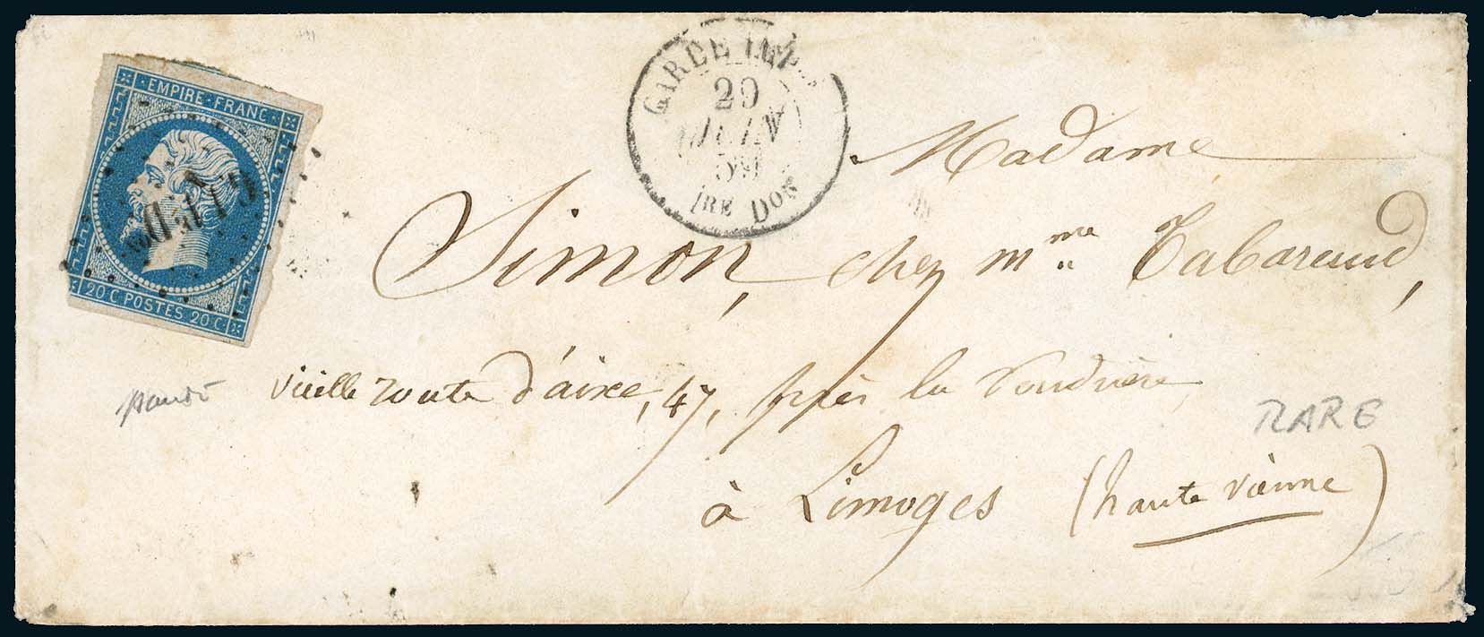 16 | N°1 OB PC 2346 avec cursive 35/Orsennes (Indre) sur lettre locale pour Aigurande 23 mars 1853 TB | 150 | 300 | 150 | enchérir | |