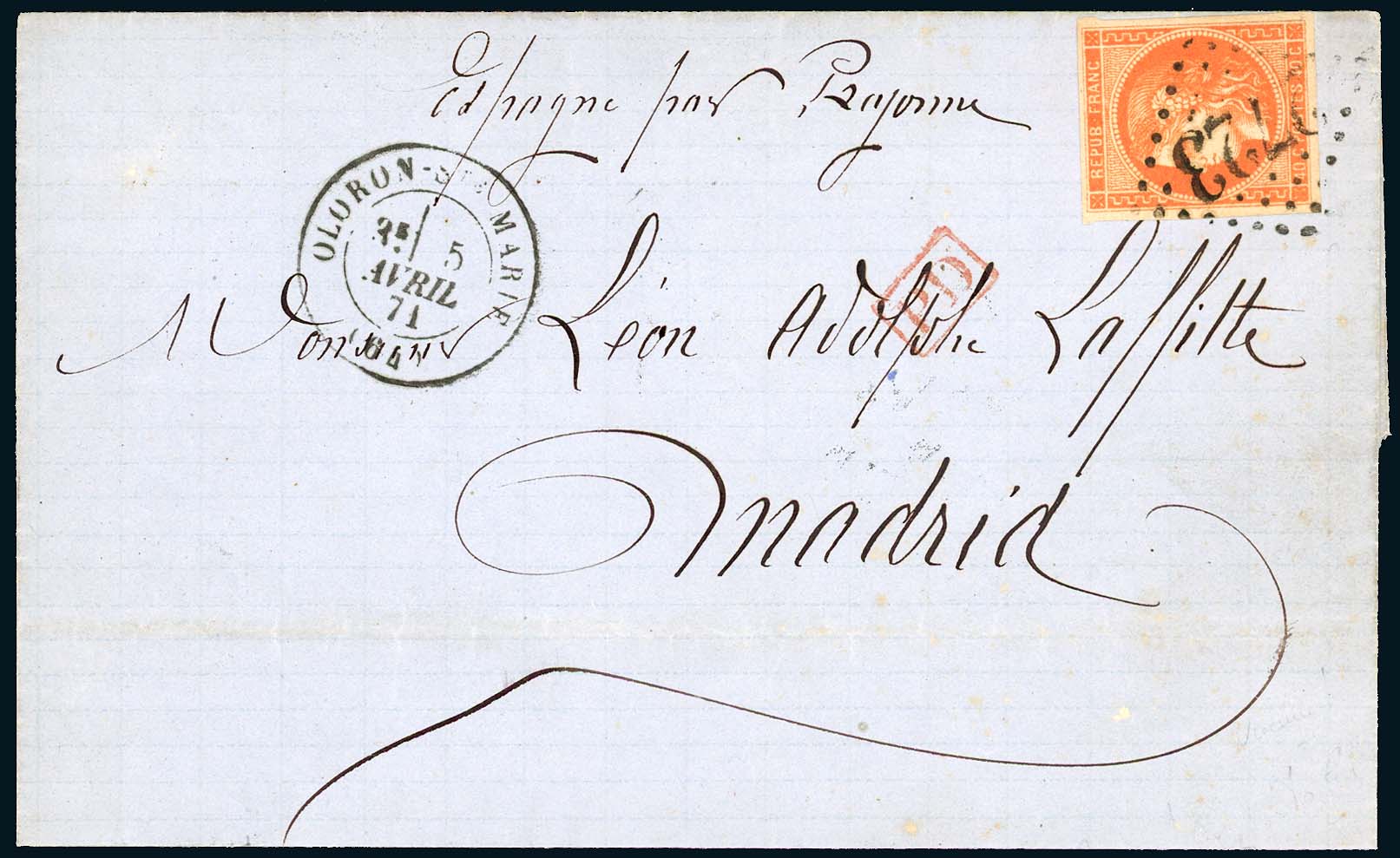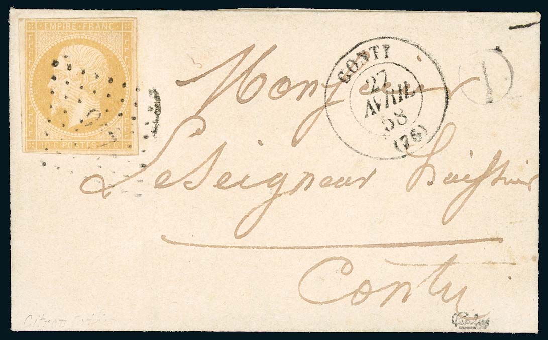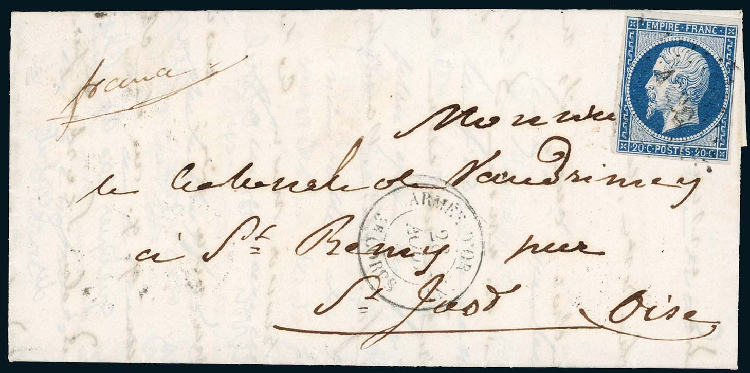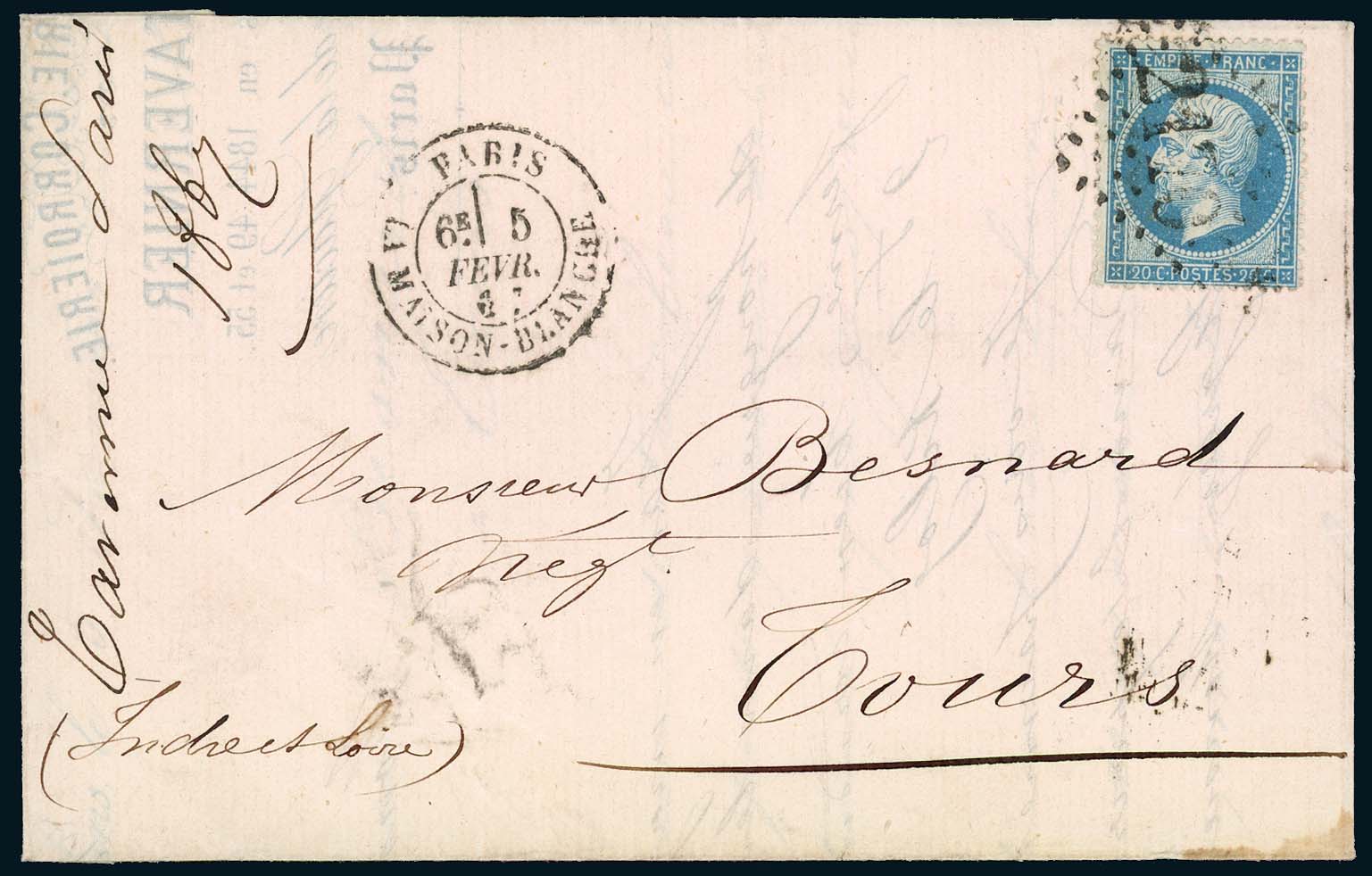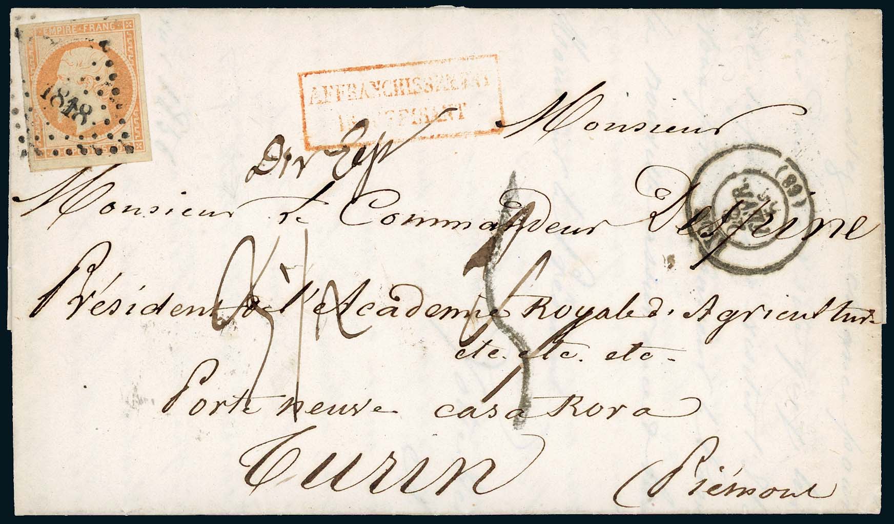 16 | N°1 OB PC 2346 avec cursive 35/Orsennes (Indre) sur lettre locale pour Aigurande 23 mars 1853 TB | 150 | 300 | 150 | enchérir | |
