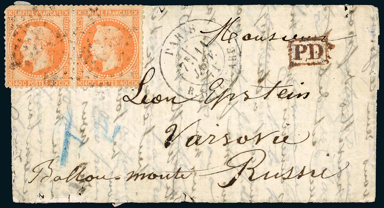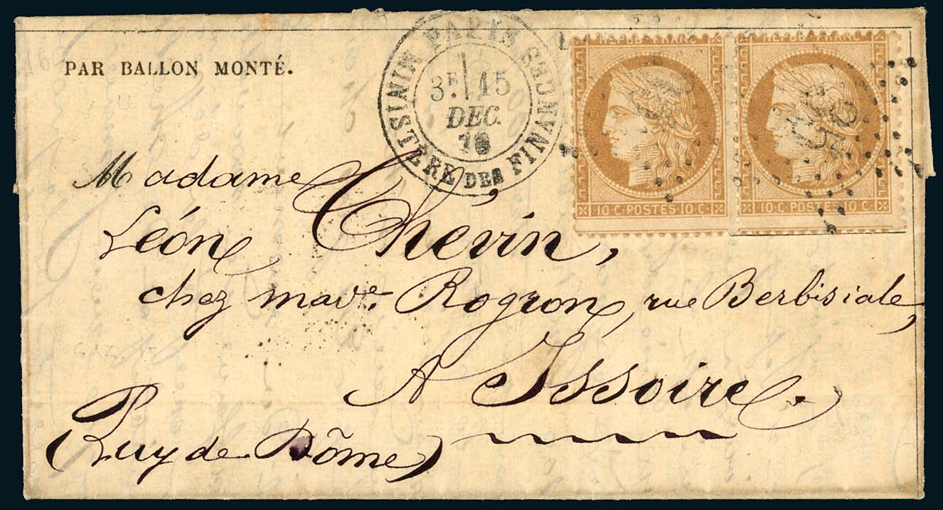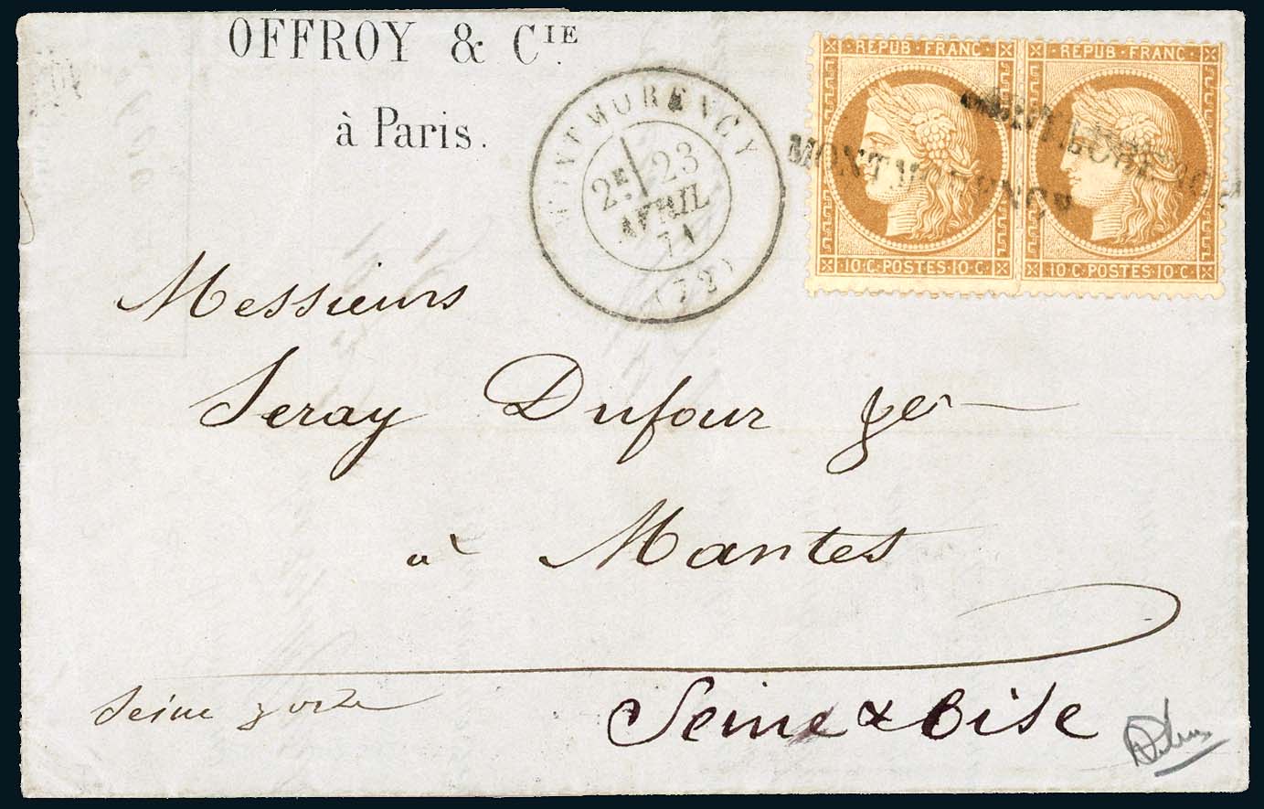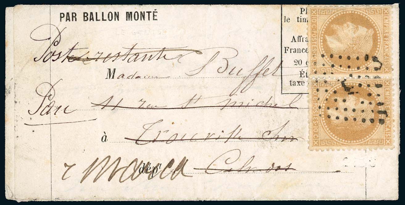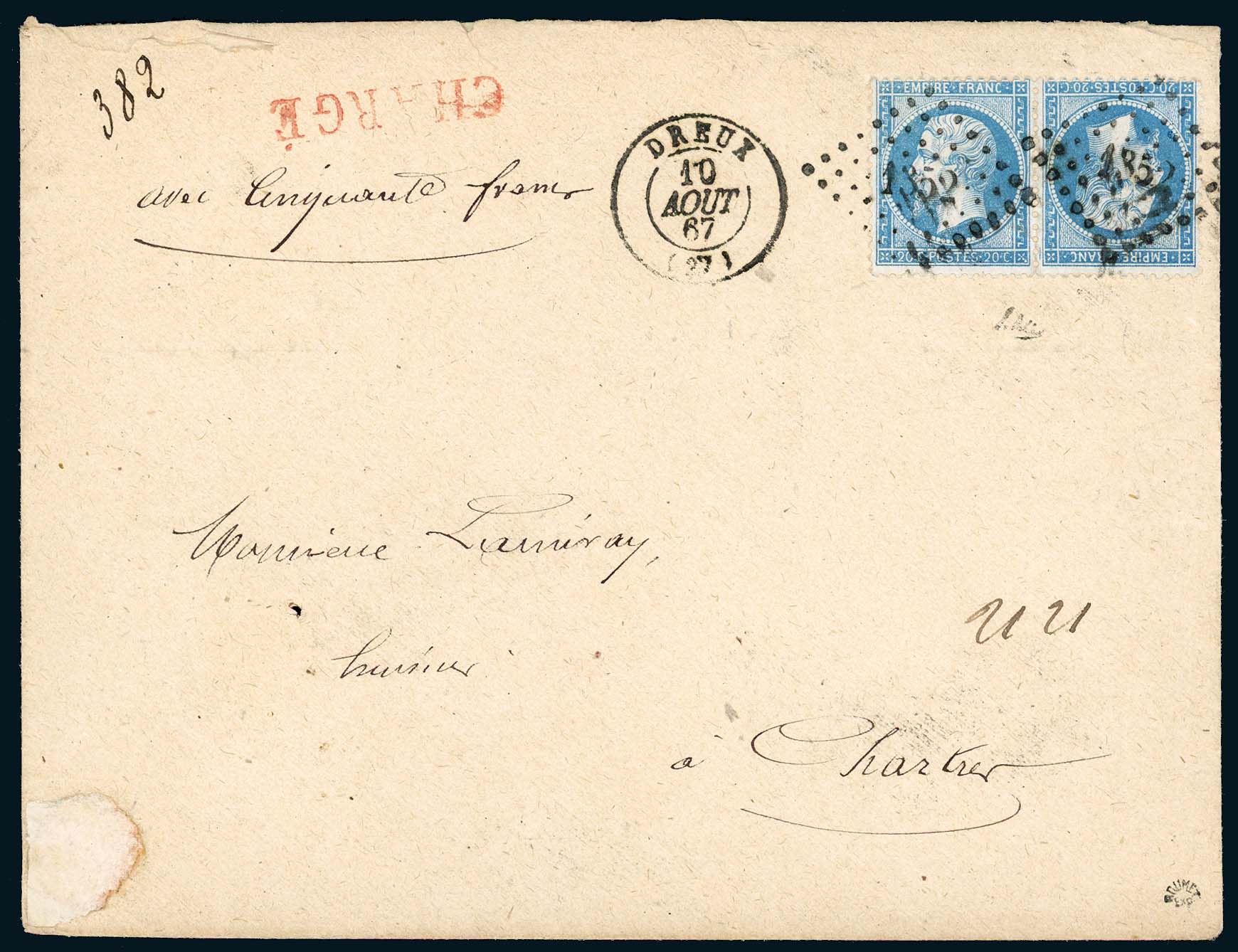 64 | N°3 en paire OB grille, C. BUREAU CENTRAL en noir sur enveloppe au double port port pour Sens 1849 TB | 150 | 300 | 150 | enchérir | |