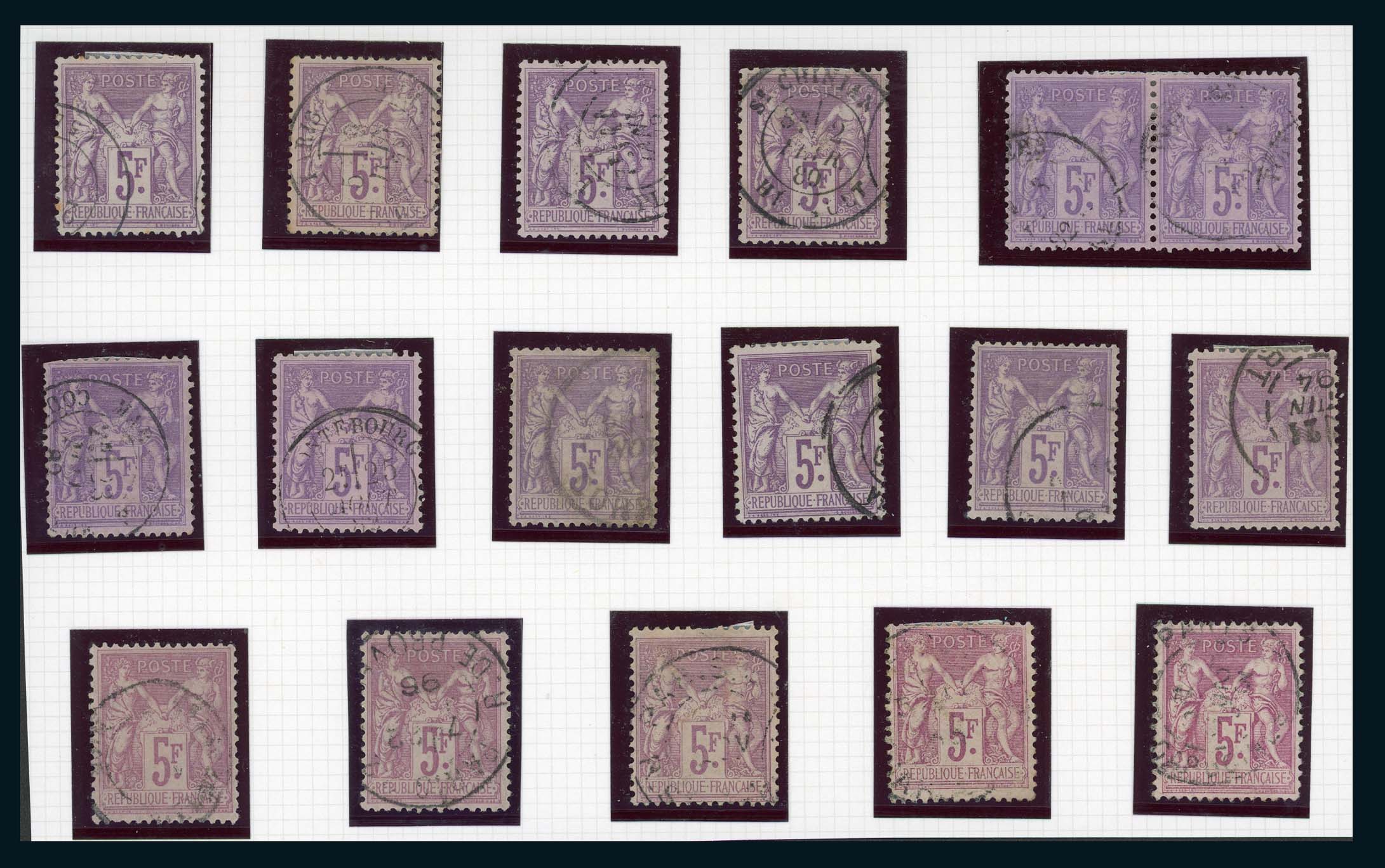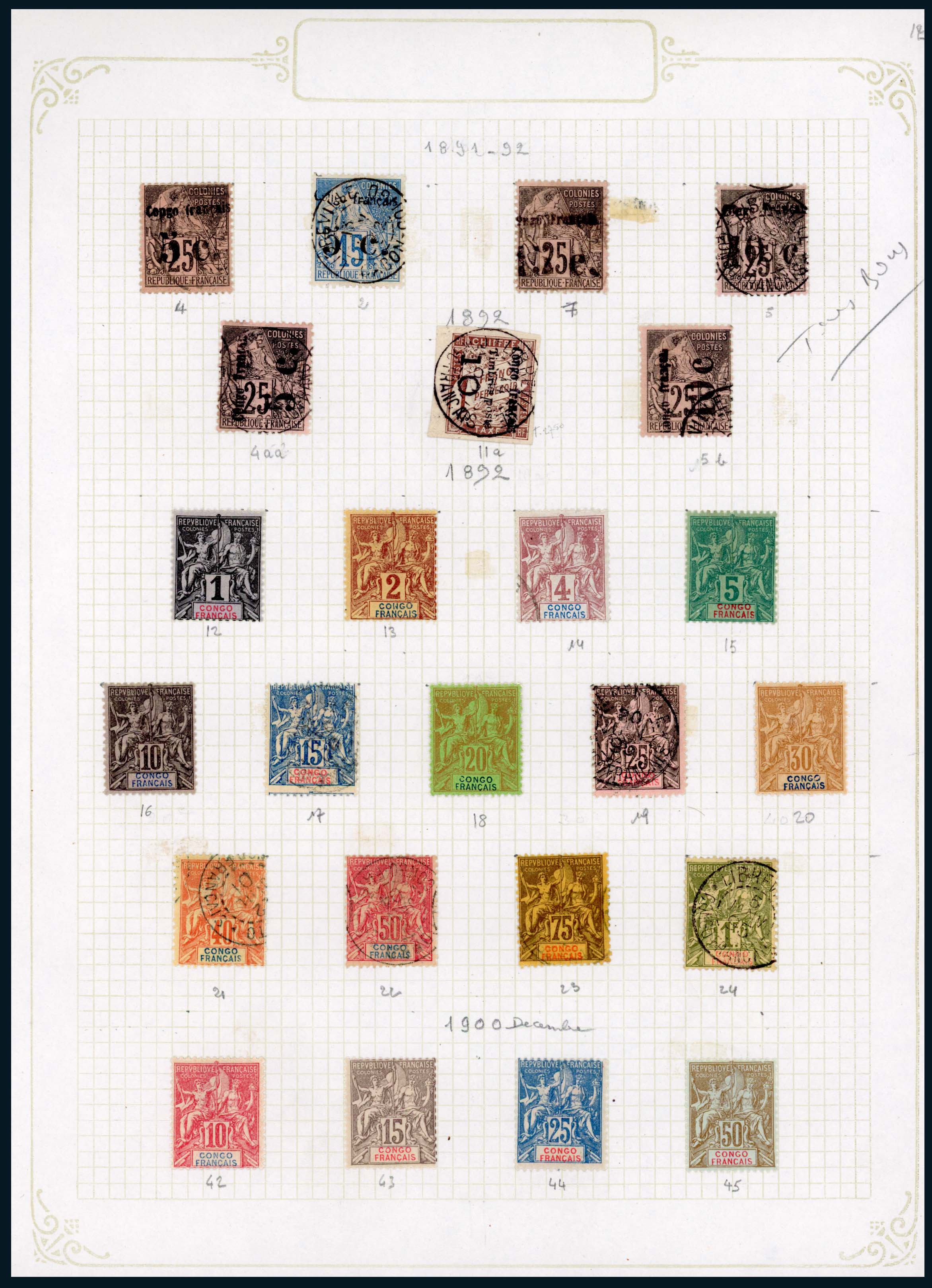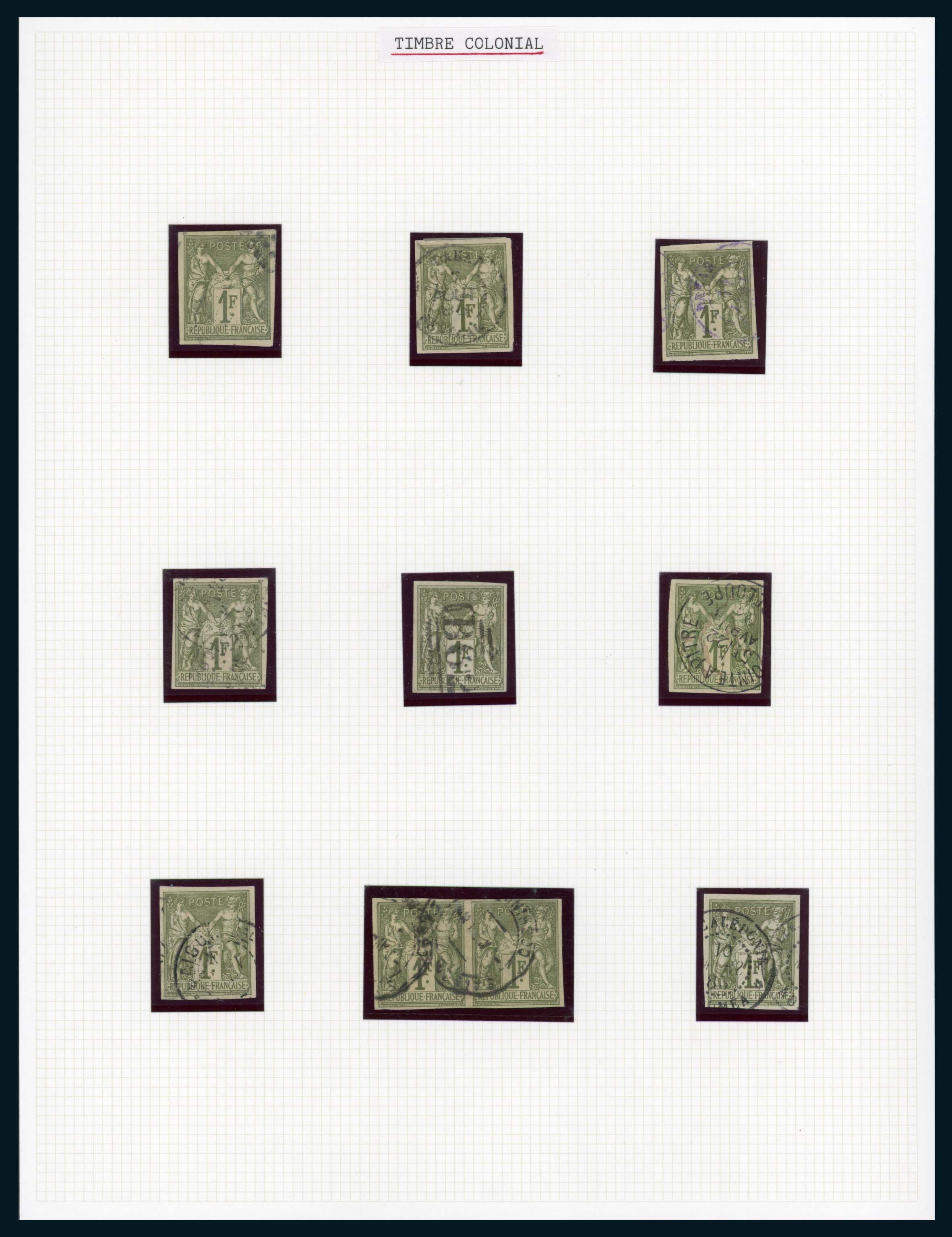 2473 | Colonies générales, Etude d'oblitérations sur type Sage (50 détachés et 1 lettre), très bonne qualité générale | 200 | 400 | 200 | enchérir | |