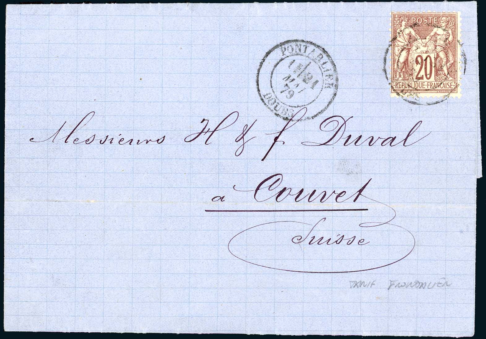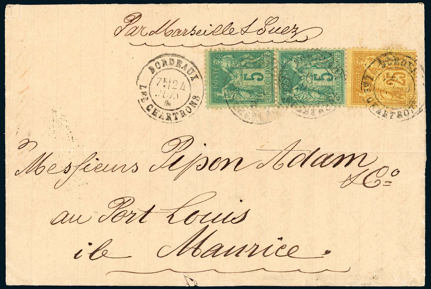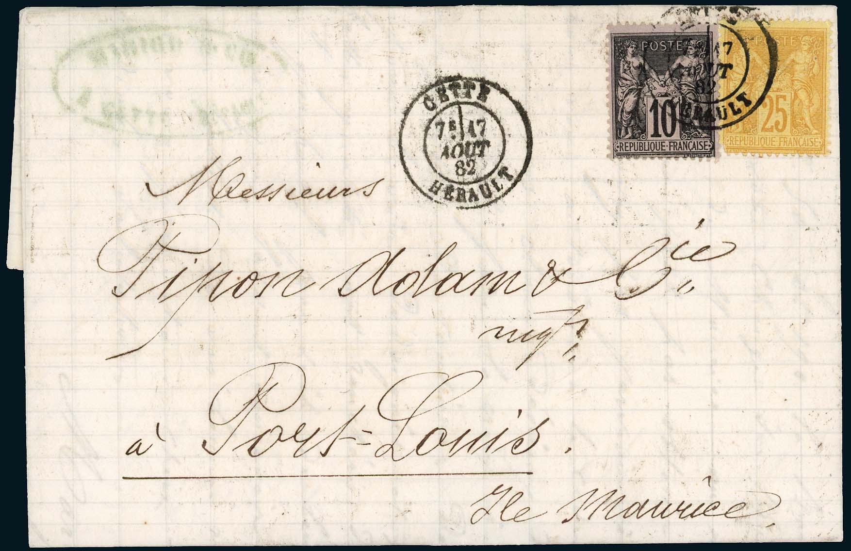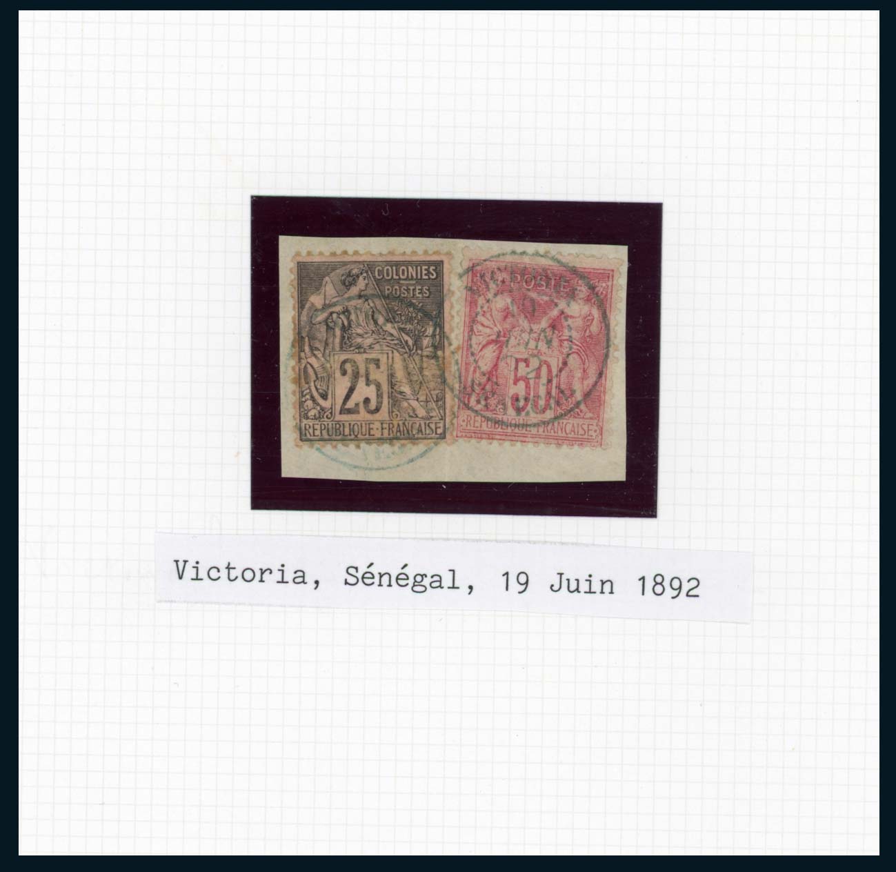 2473 | Colonies générales, Etude d'oblitérations sur type Sage (50 détachés et 1 lettre), très bonne qualité générale | 200 | 400 | 200 | enchérir | |