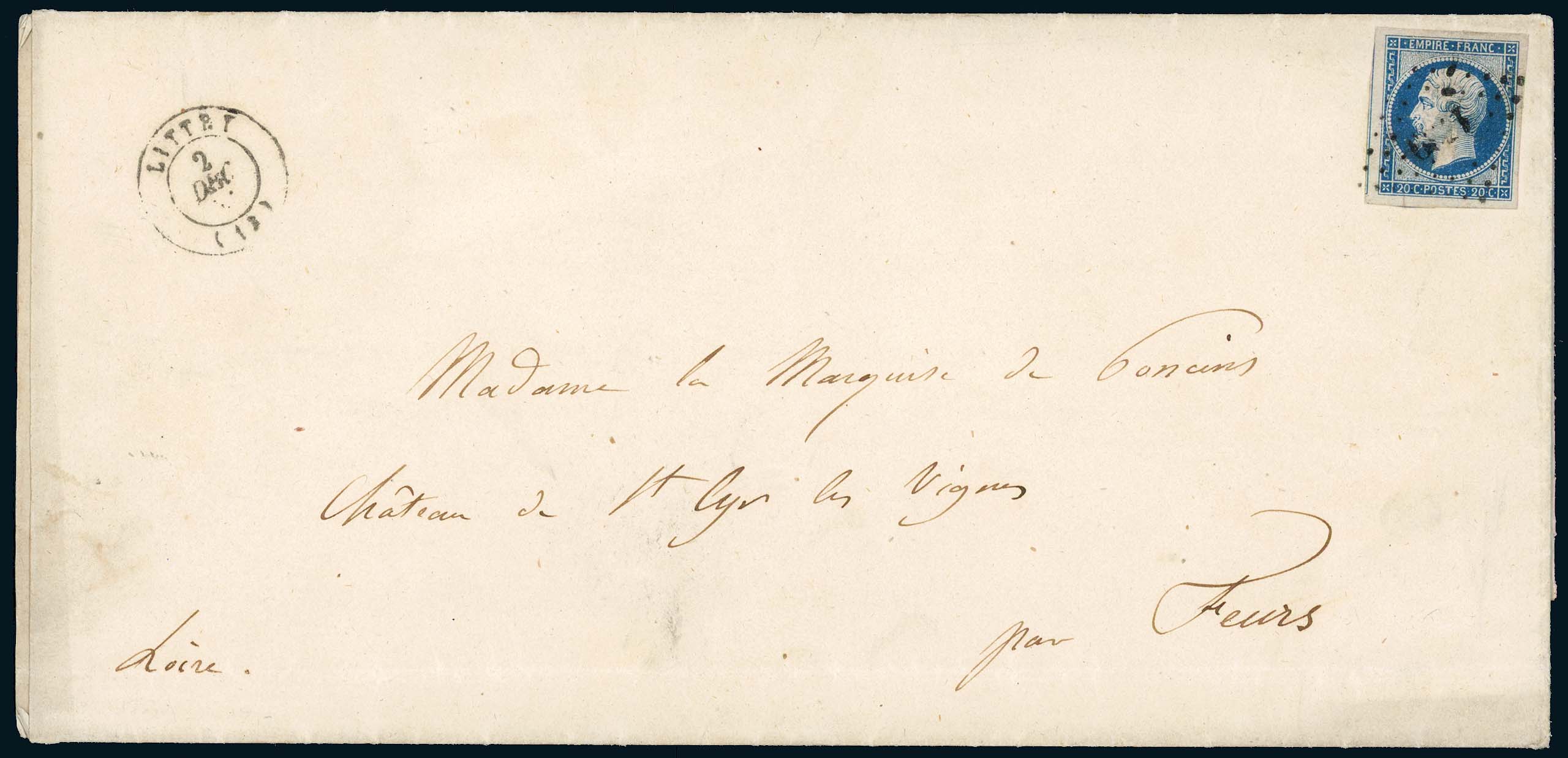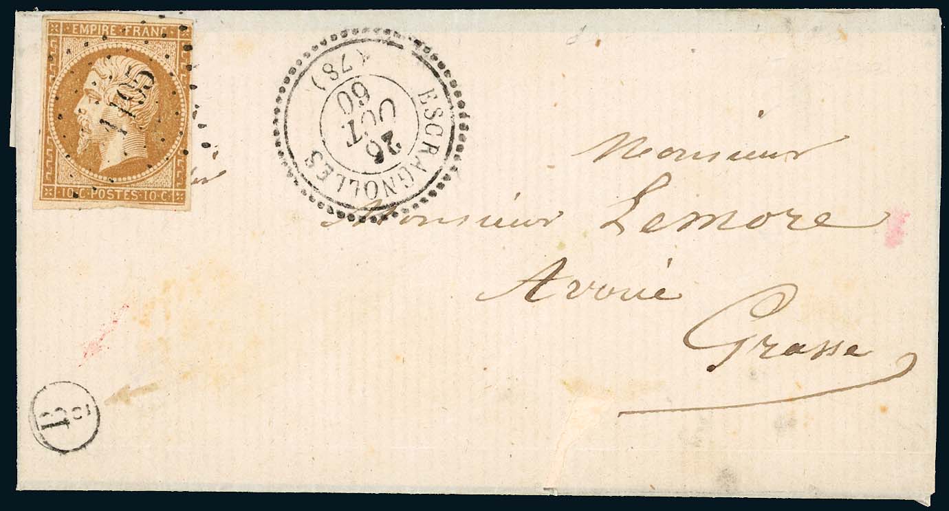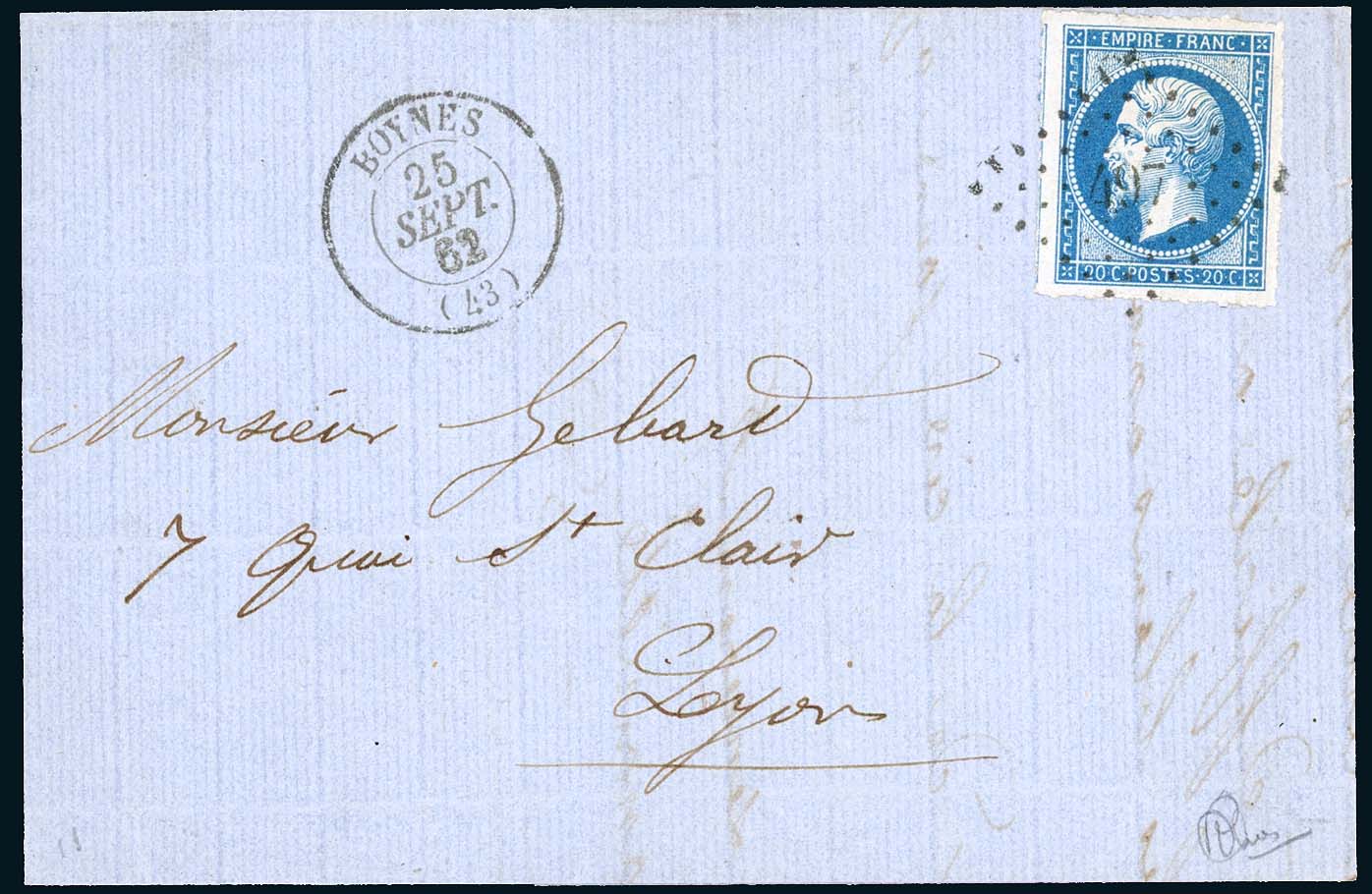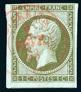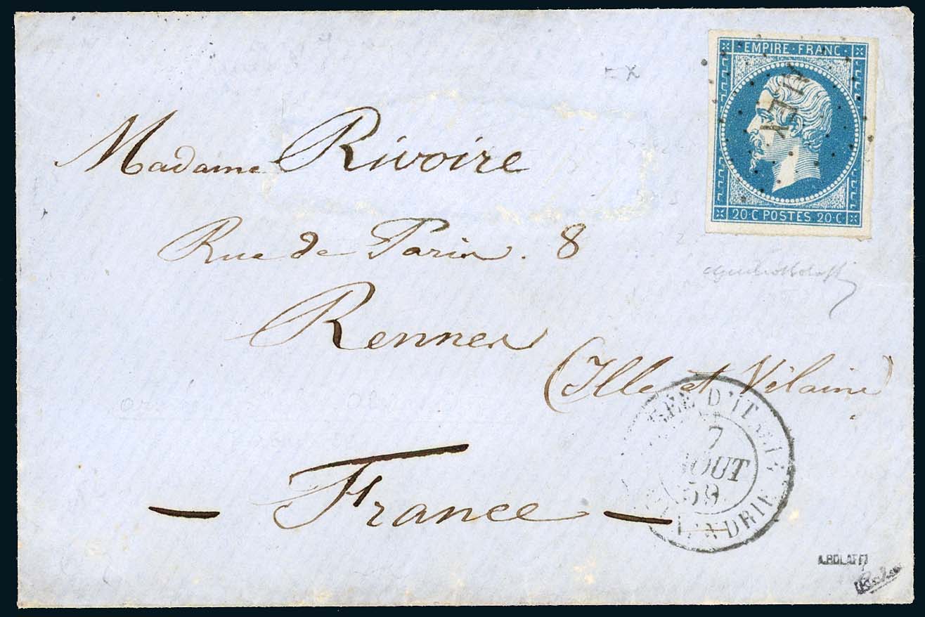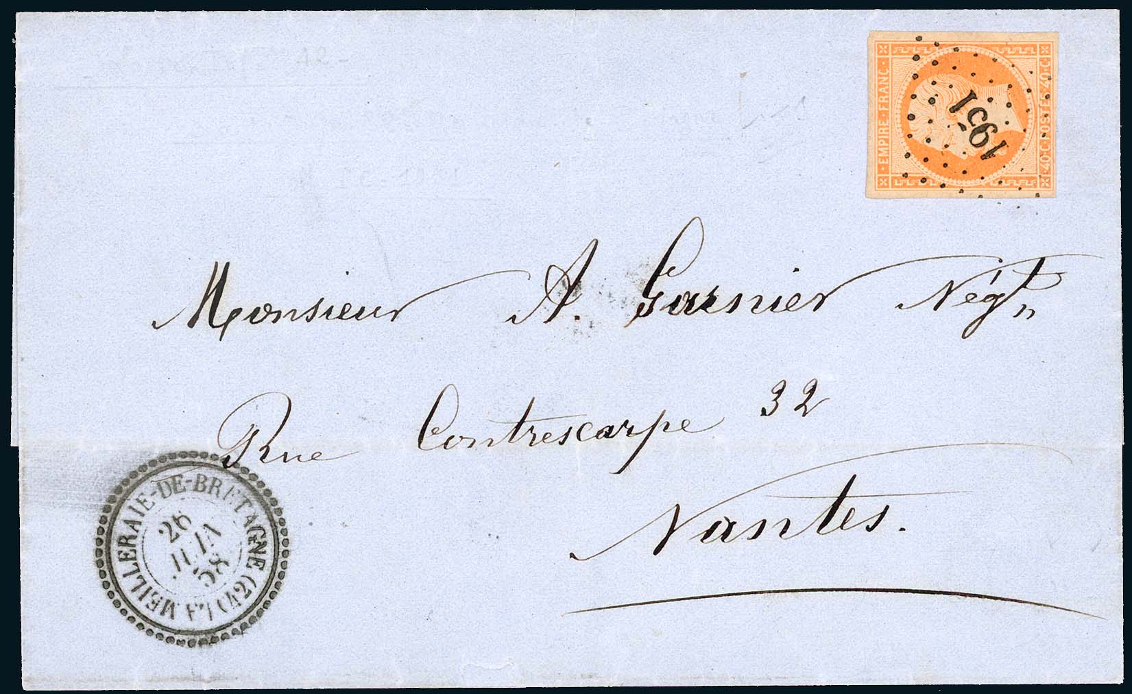 18 | N°1b, bistre-verdâtre oblitéré grille sur lettre locale de La Rochelle du 22 avril 1851, nuance très caractéristique TB/Sup | 250 | 400 | 250 | enchérir | |