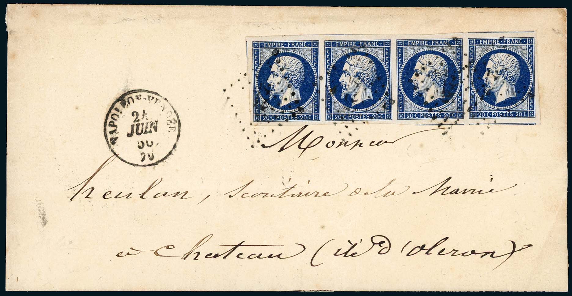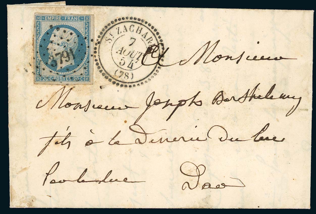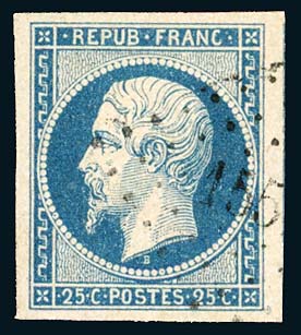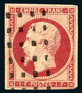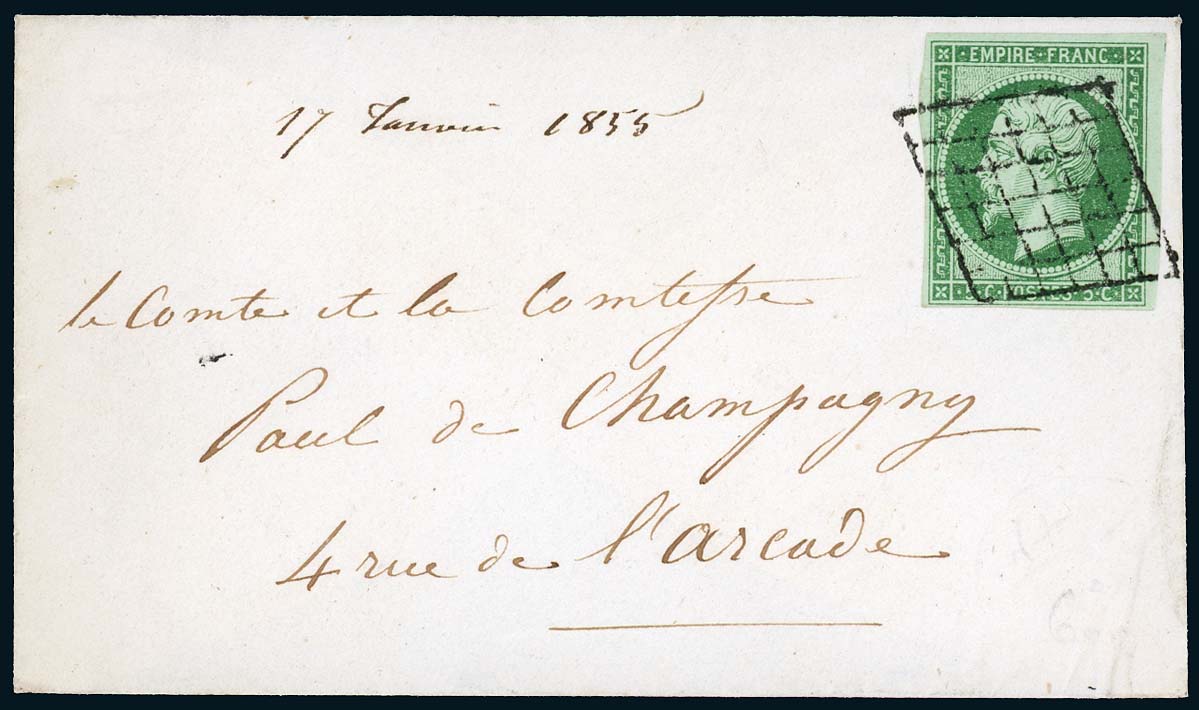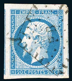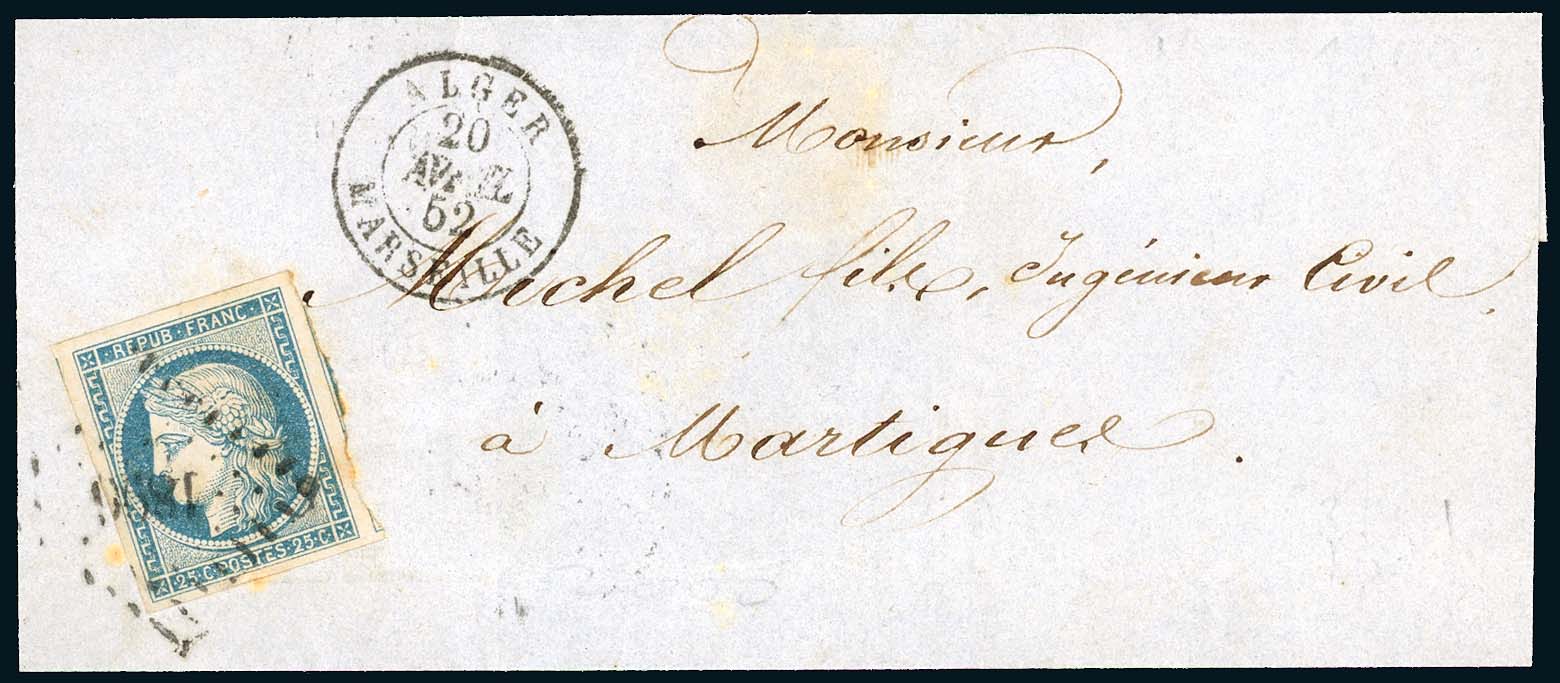 18 | N°1b, bistre-verdâtre oblitéré grille sur lettre locale de La Rochelle du 22 avril 1851, nuance très caractéristique TB/Sup | 250 | 400 | 250 | enchérir | |