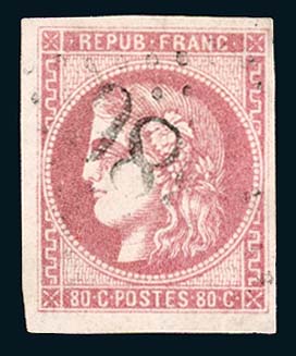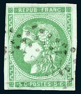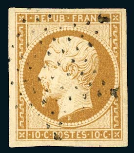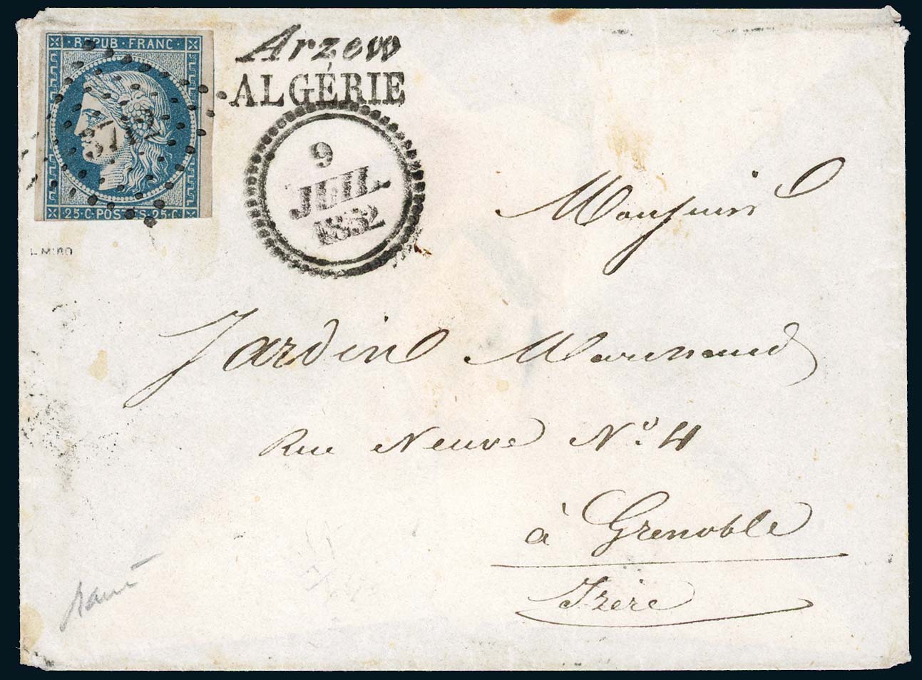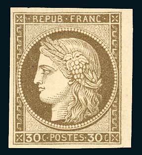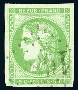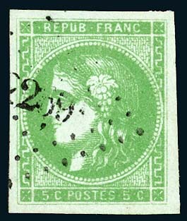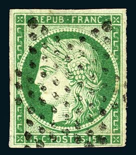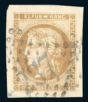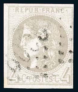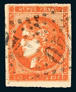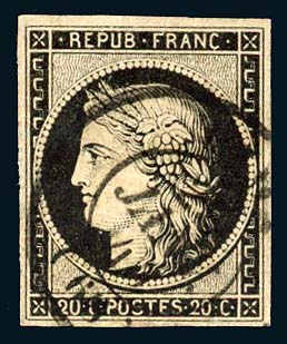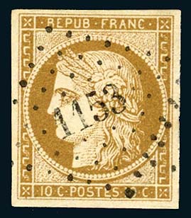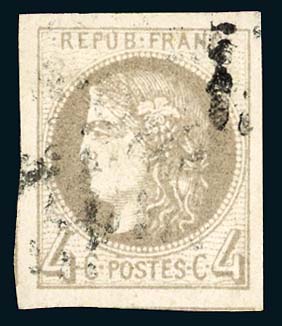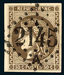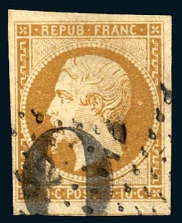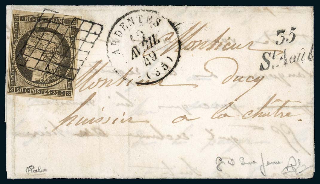 77 | N°3 OB grille, cursive 35/ST Août et C. ARDENTES, très belle nuance annoncée comme gris-sur-jaune, signature et certificat Calves 1849 Superbe | 200 | 300 | 200 | enchérir | |