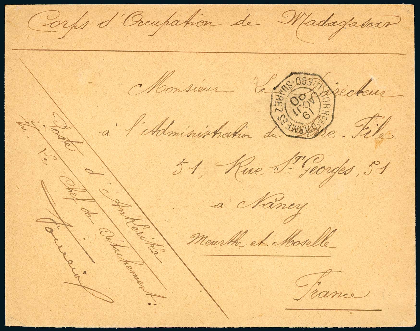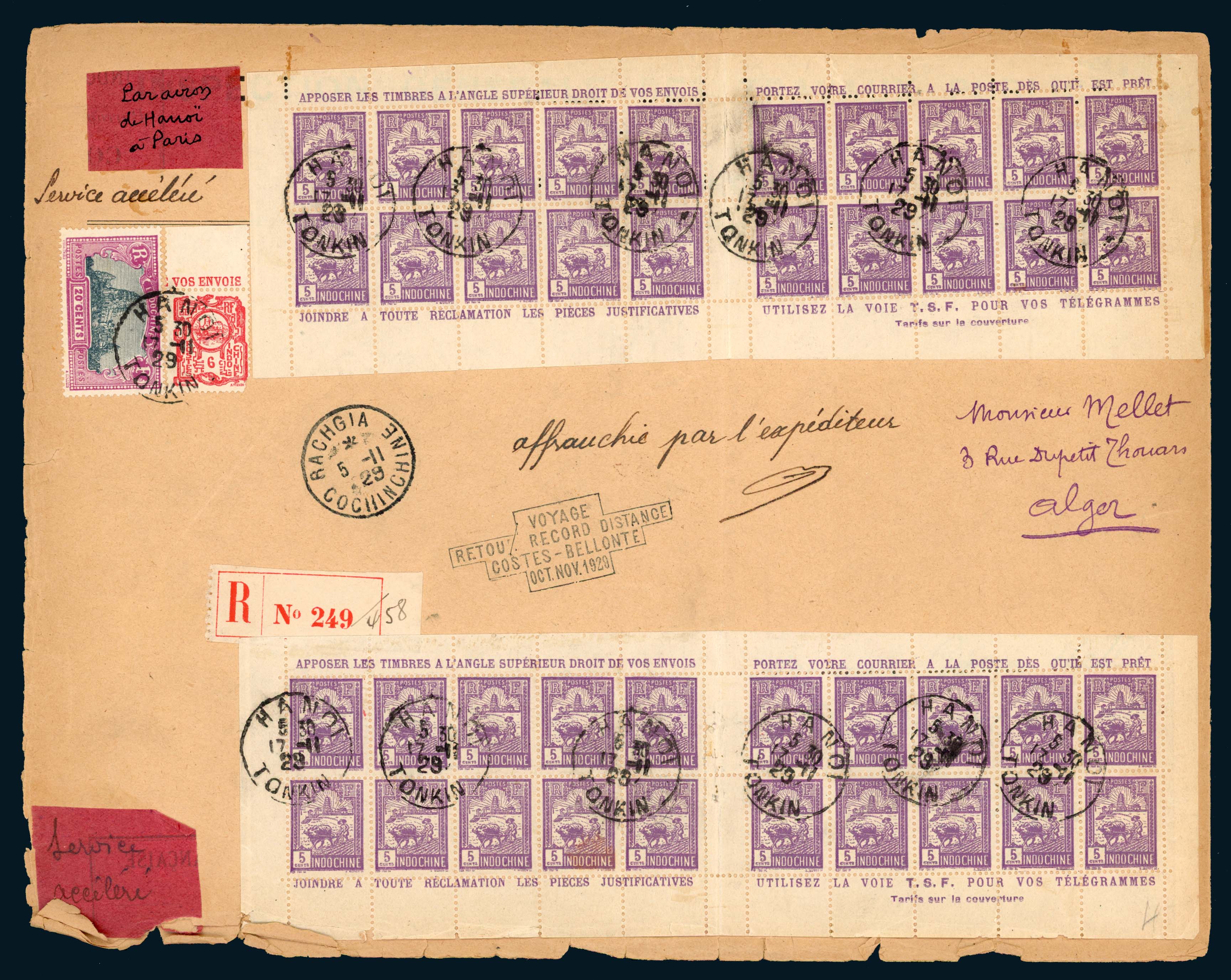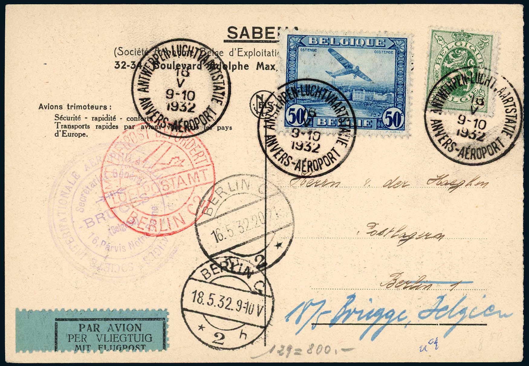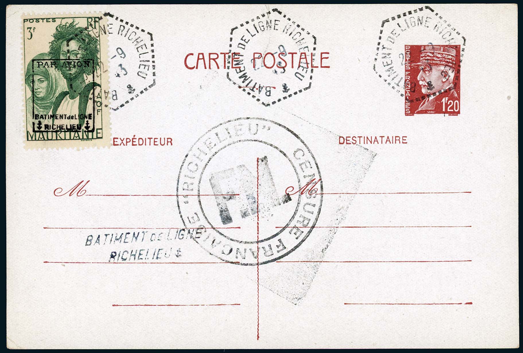 2399 | Raid France-Madagascar (cachet au verso avec celui de Berre/Aviation maritime) au départ de Berre. Carte postale adressée à Tanger, un des 12 plis transportés 11 octobre 1926 Rareté Superbe | 500 | 800 | 500 | enchérir | |