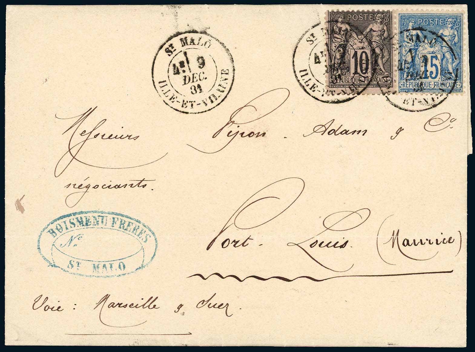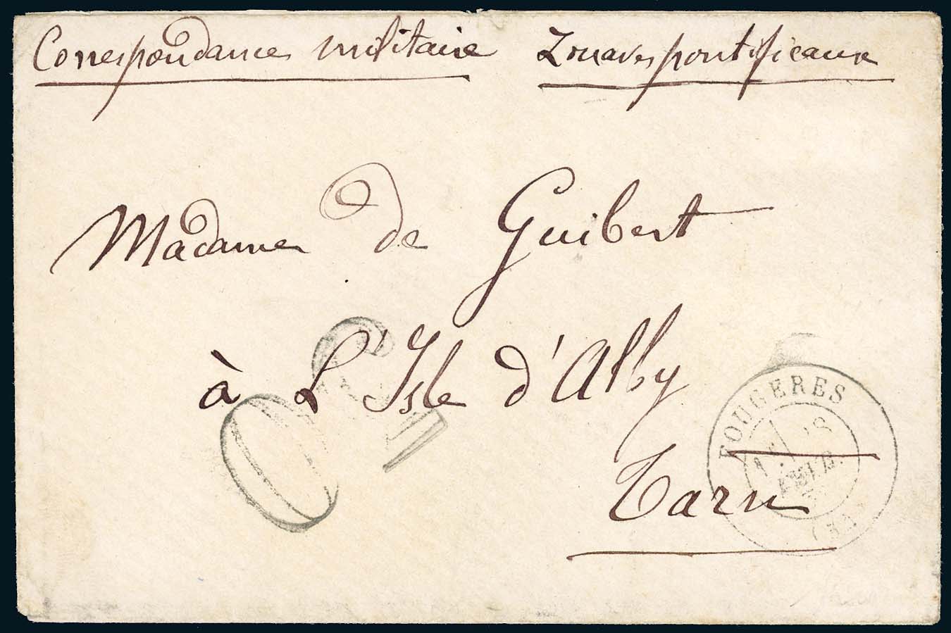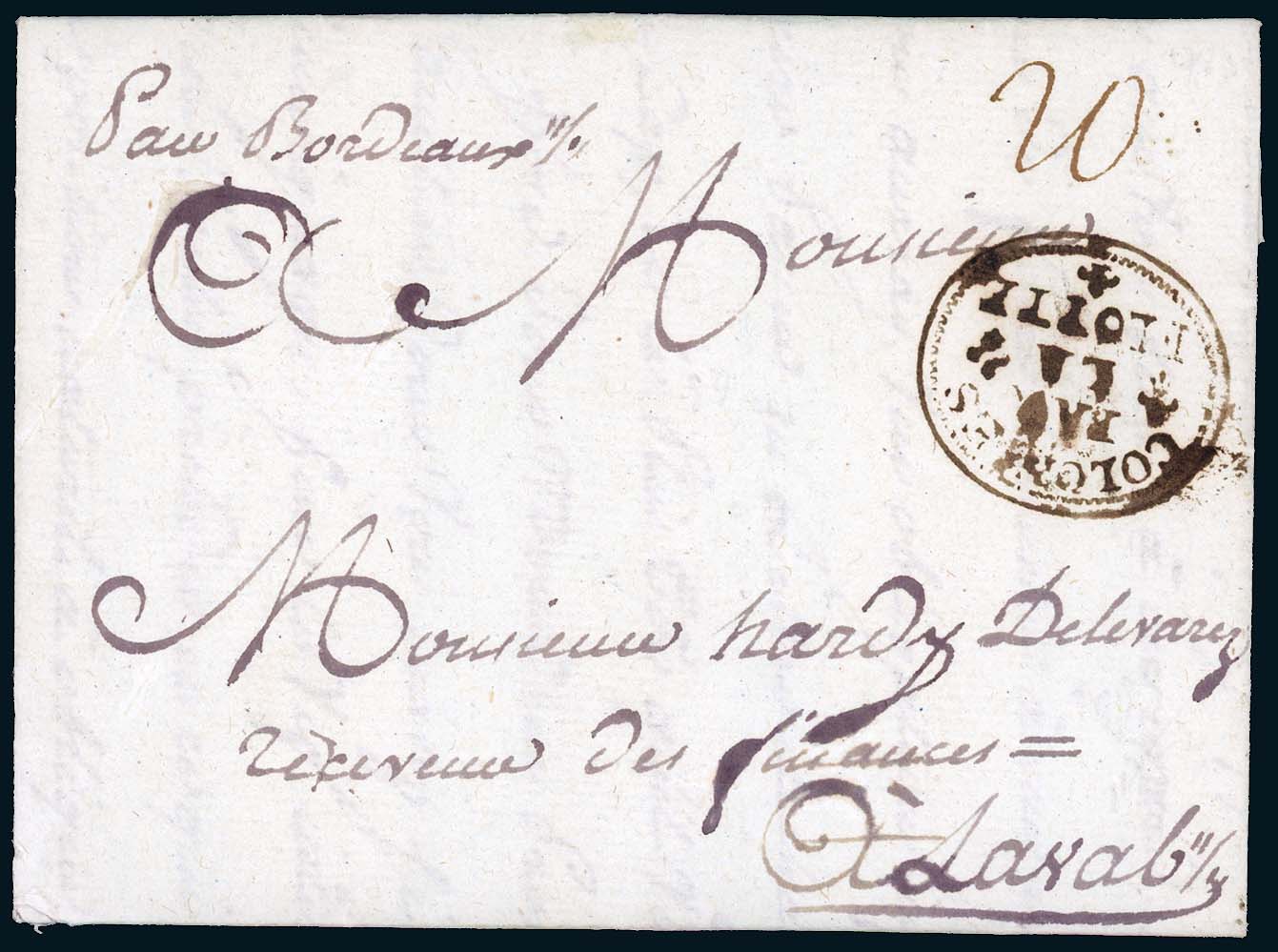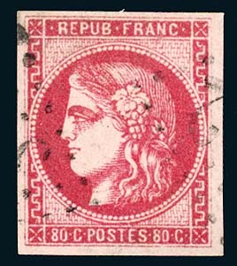 81 | N°3 OB grille C. LAVARDAC et cursive 45/Pont-de/Bordes en rouge sur lettre pour Saint-Malo avec C. ST MALO eu verso 1849 Rare TB | 150 | 250 | 150 | enchérir | |