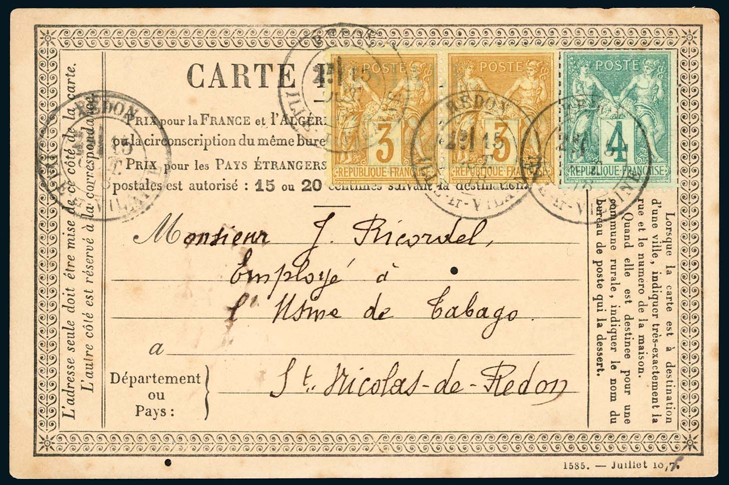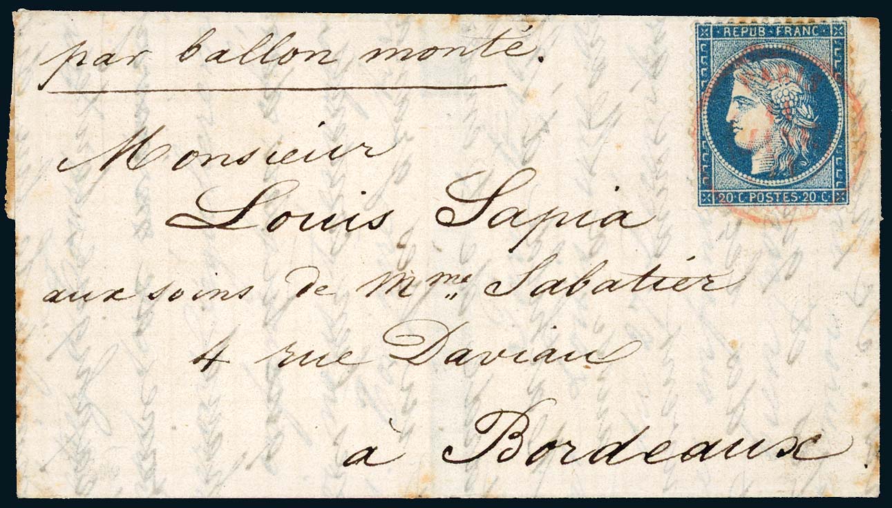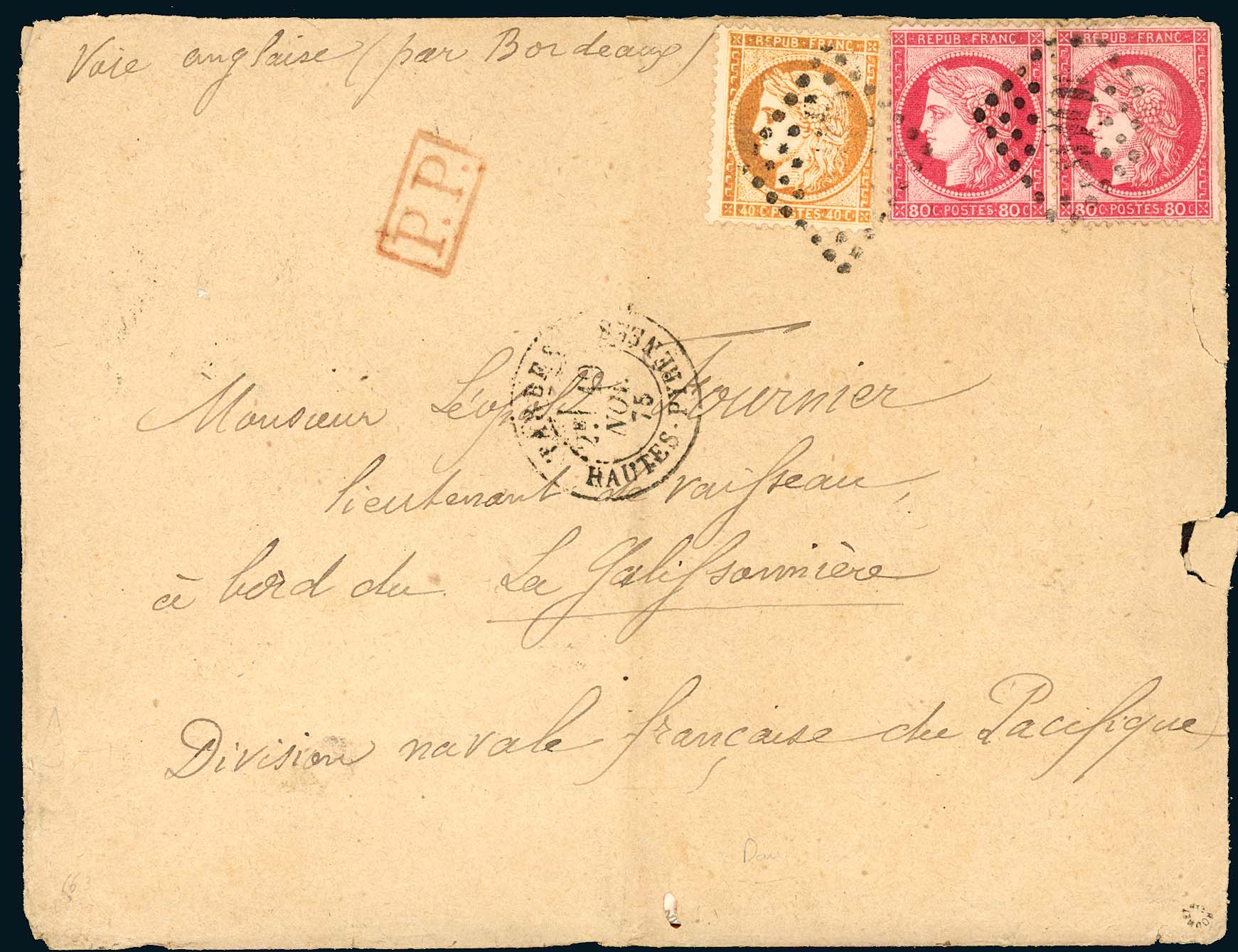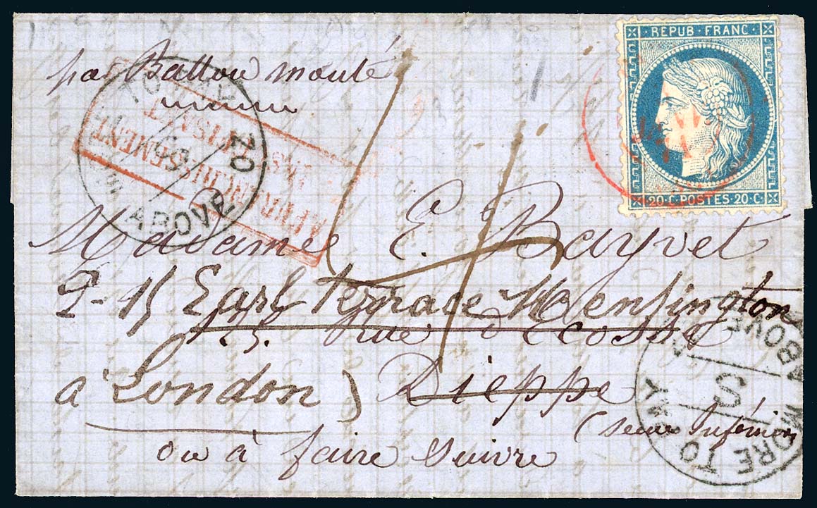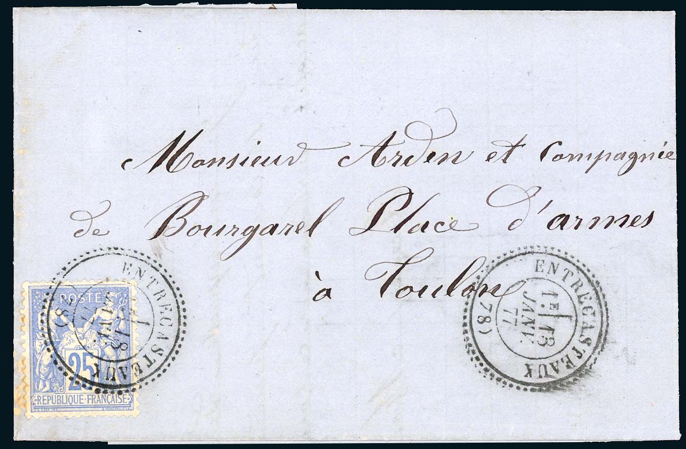 81 | N°3 OB grille C. LAVARDAC et cursive 45/Pont-de/Bordes en rouge sur lettre pour Saint-Malo avec C. ST MALO eu verso 1849 Rare TB | 150 | 250 | 150 | enchérir | |