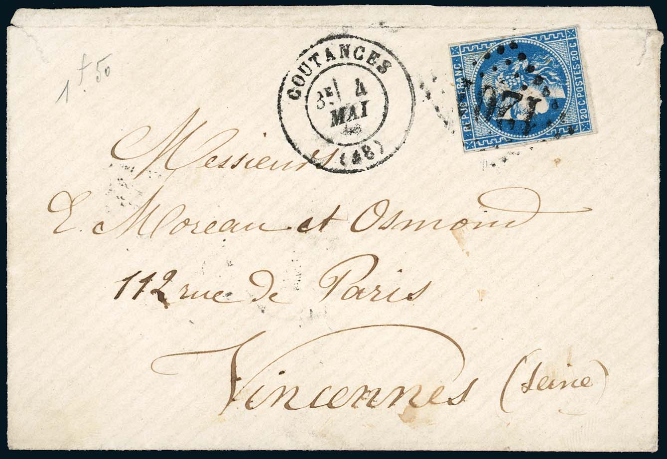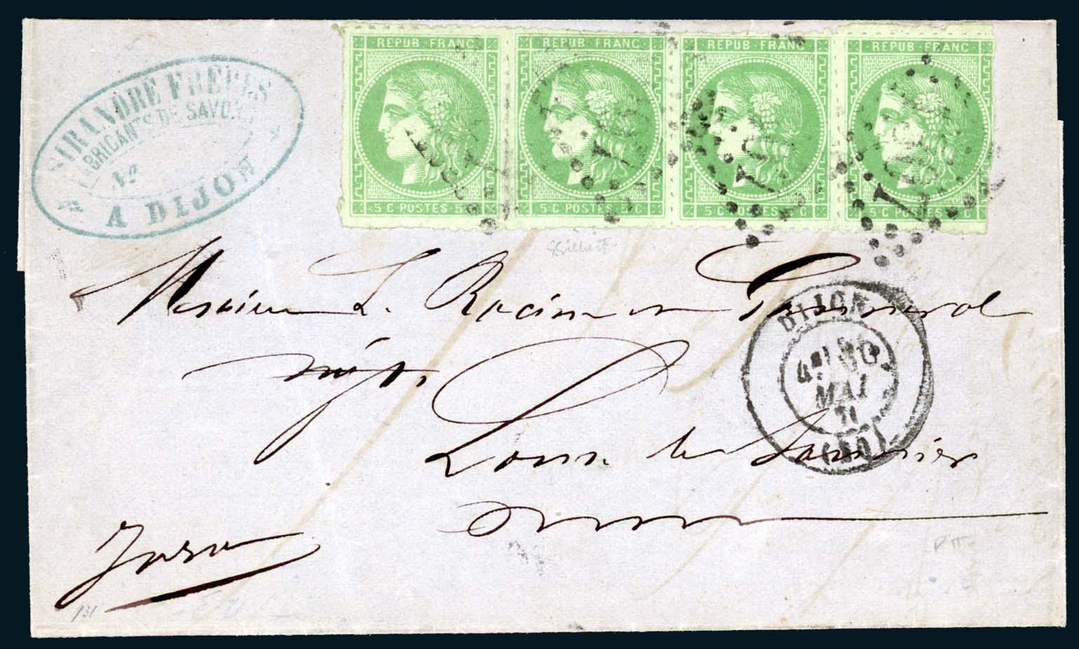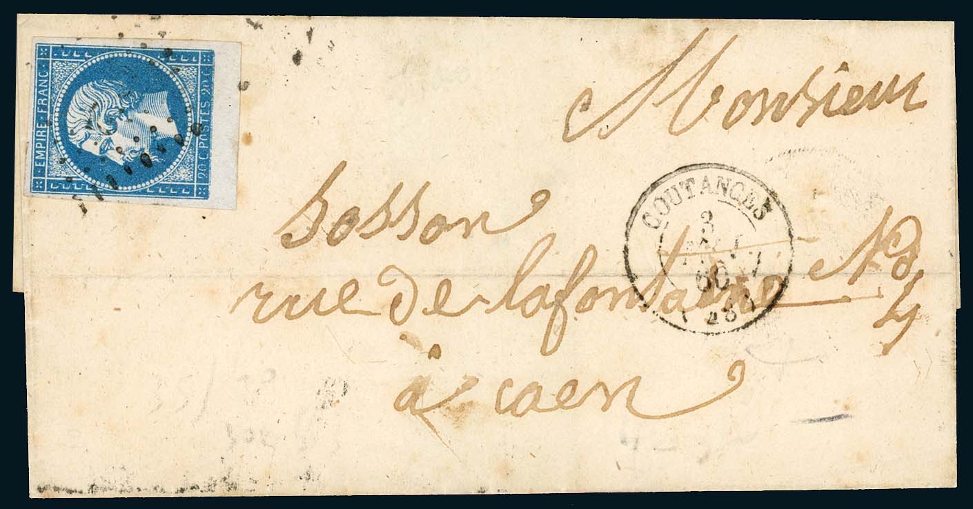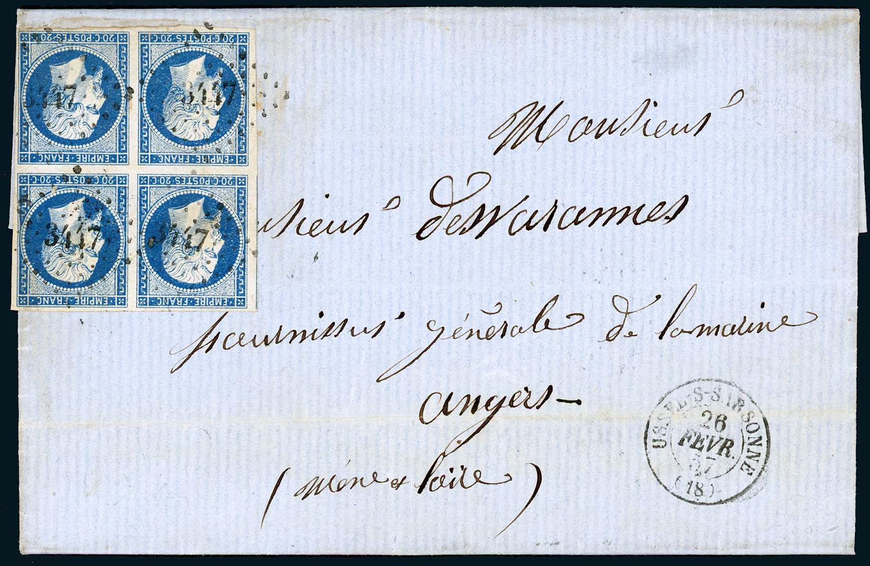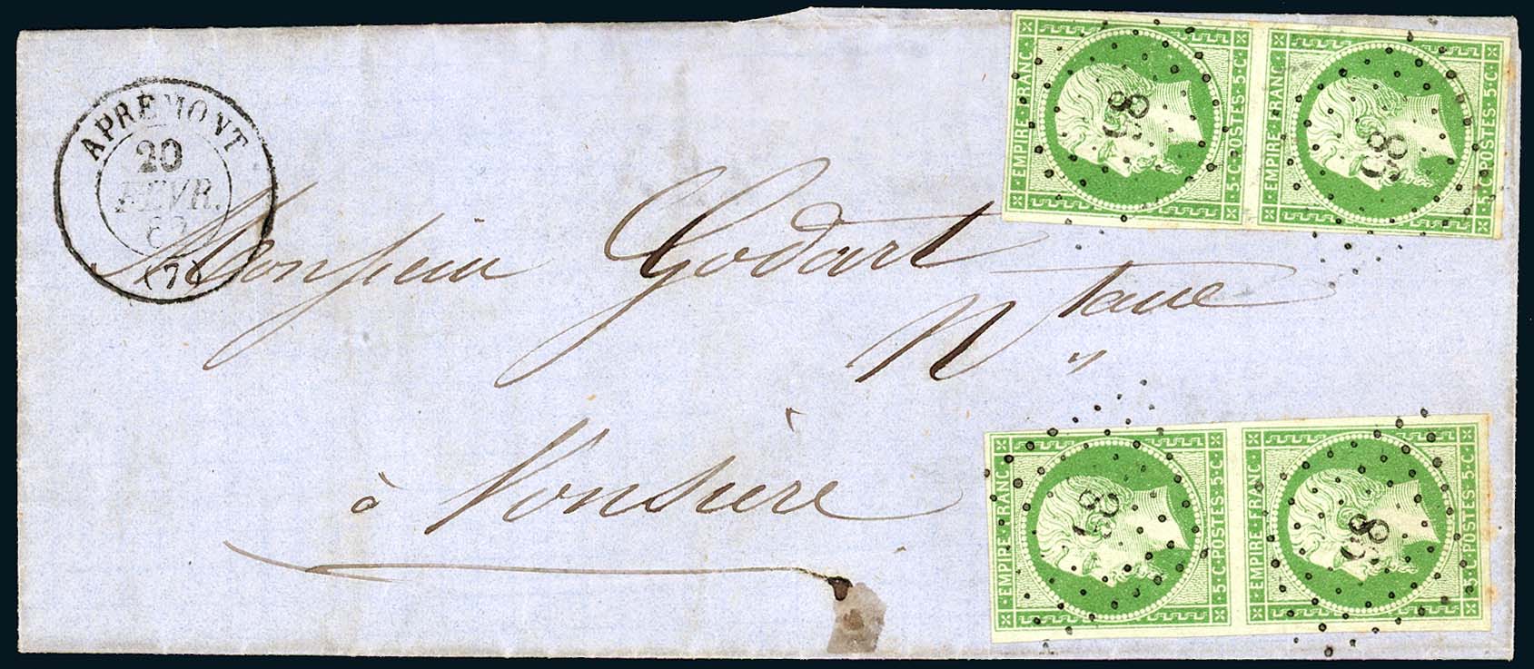 95 | N°4 OB grille, C. LAIGNES (tpe 13) sur lettre pour Chatillon 1851 TB | 25 | 50 | 25 | enchérir | |
