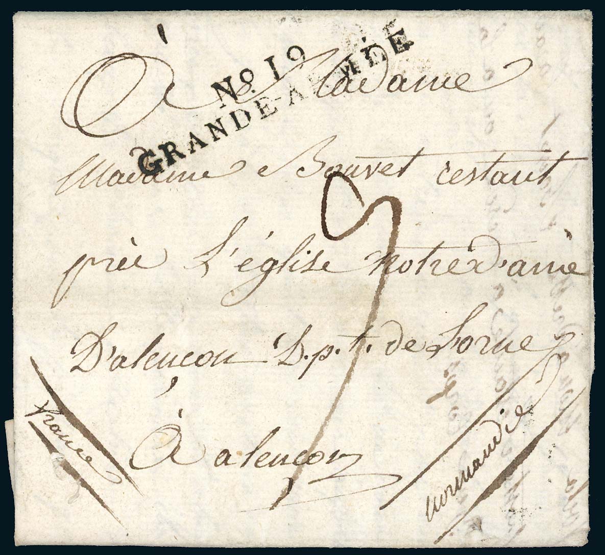 89 | N°3 OB grille, C. CONDE-S-NOIREAU sur lettre taxée par erreur 2 la plume et annulée 1850 TB | 50 | 100 | 50 | enchérir | |