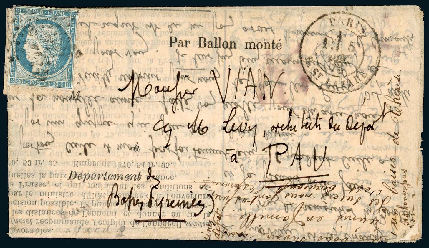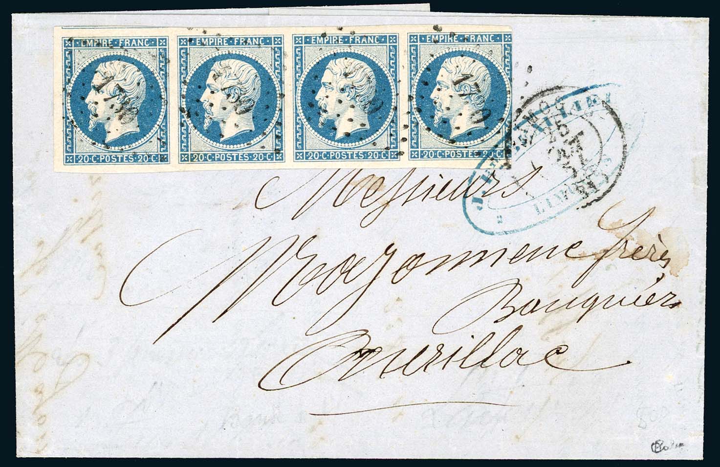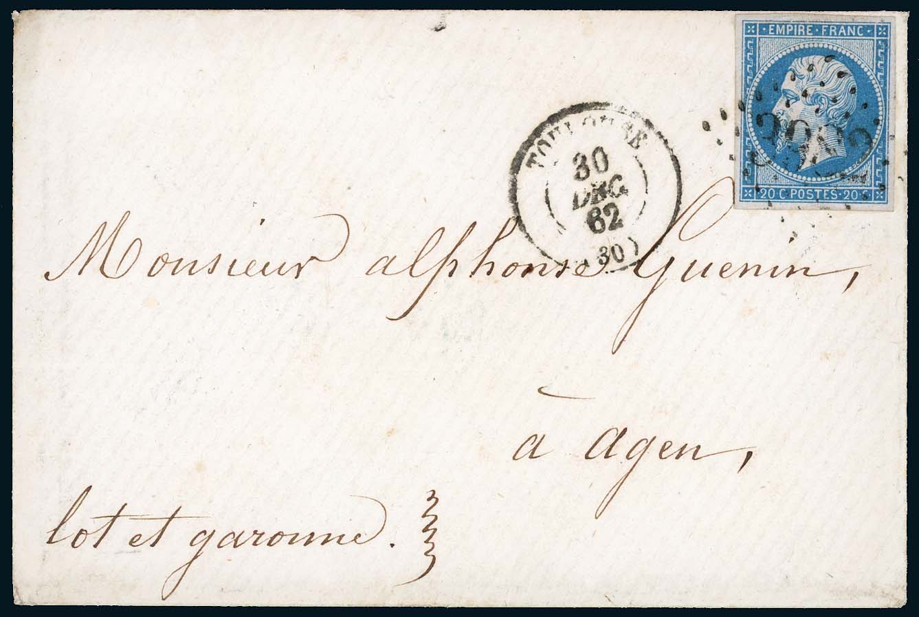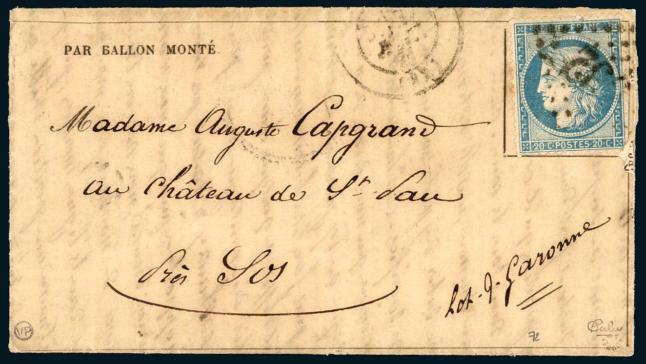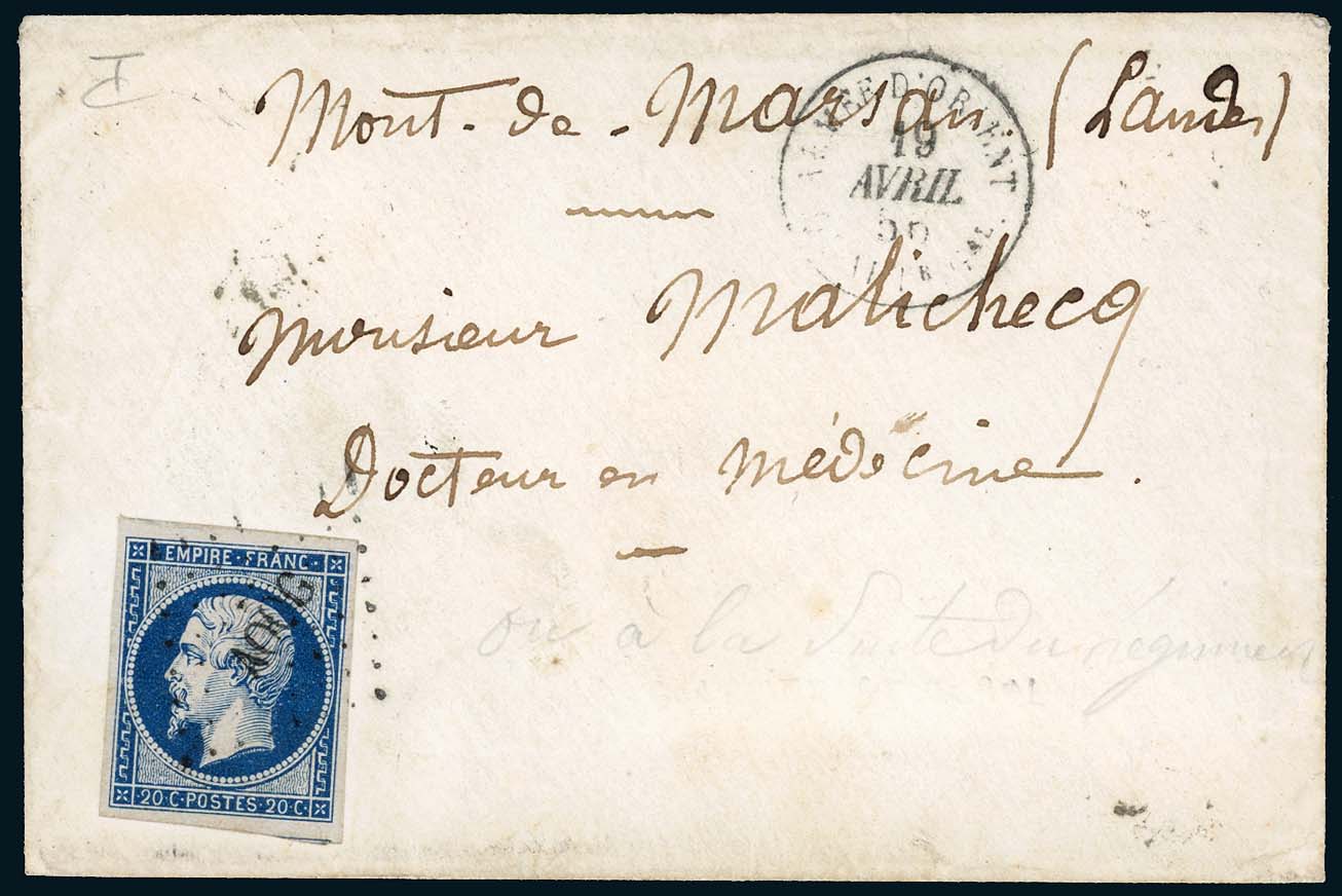 20 | N°1b (bistre verdâtre, filet effleuré) OB grille, cursive 85/Bourg-de-Visa et C. MOISSAC en arrivée au recto, rare, signatures dont Brun 1851 Superbe | 100 | 200 | 100 | enchérir | |