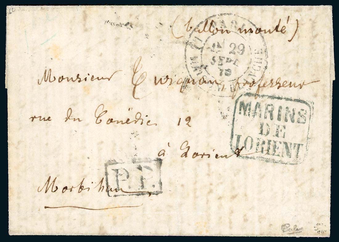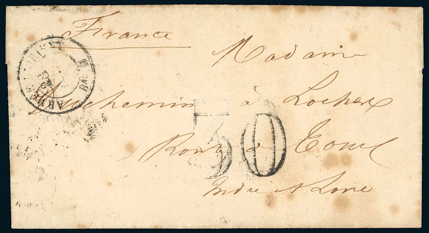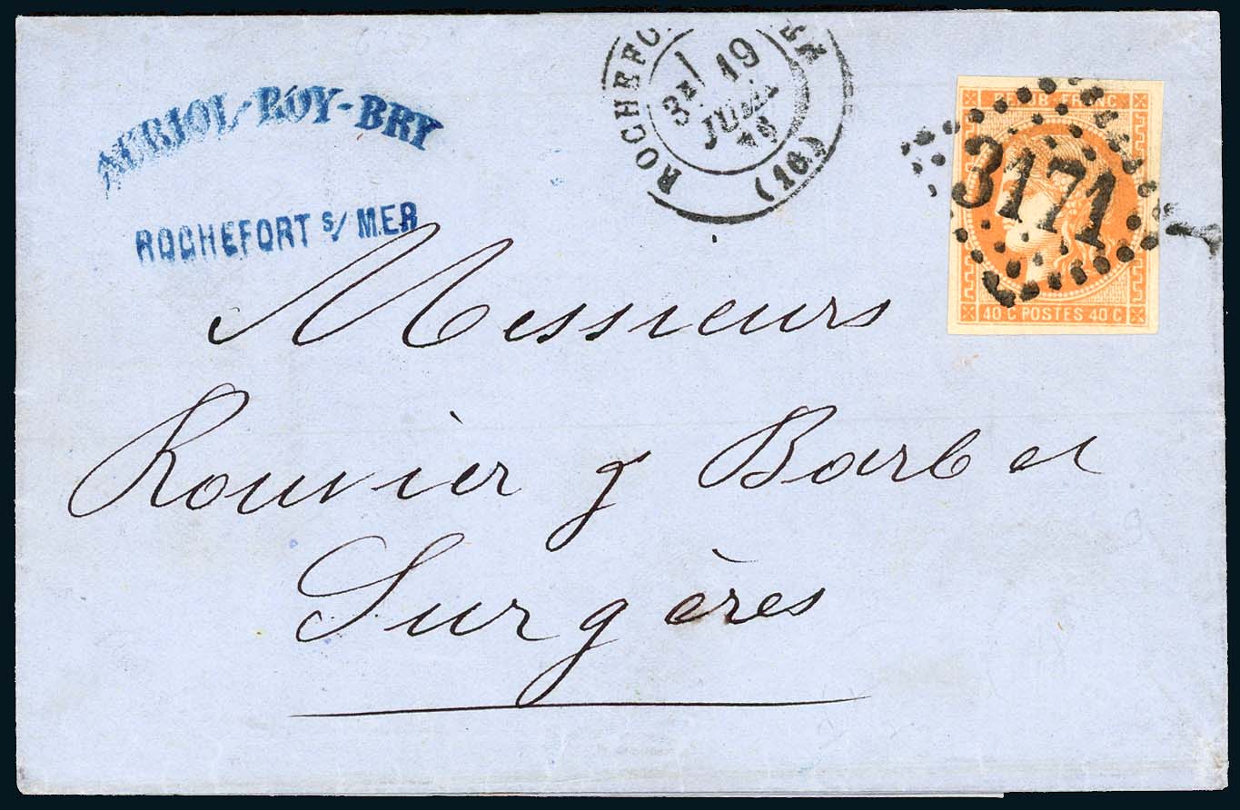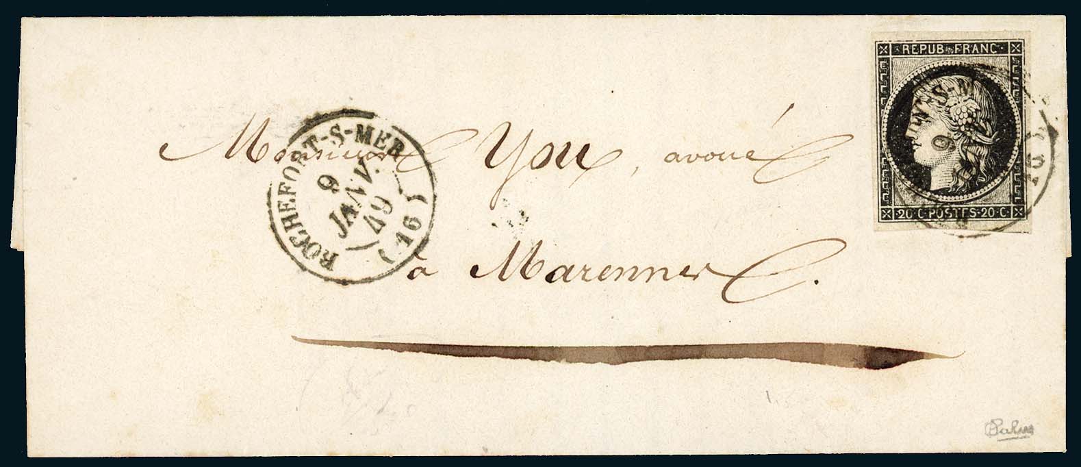 49 | N°3 OB C.15 ROCHEFORT-S-MER sur lettre du 9 janvier 1849 pour Marennes TB/Sup | 500 | 900 | 500 | enchérir | |