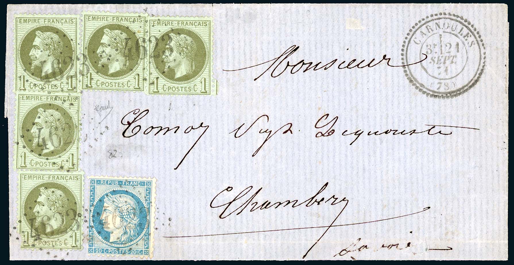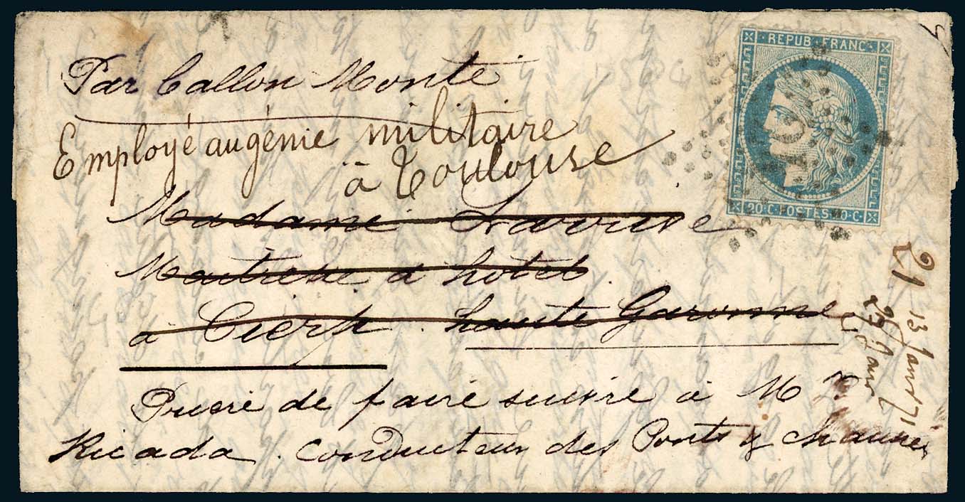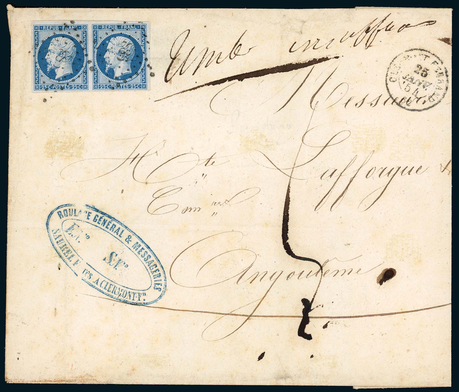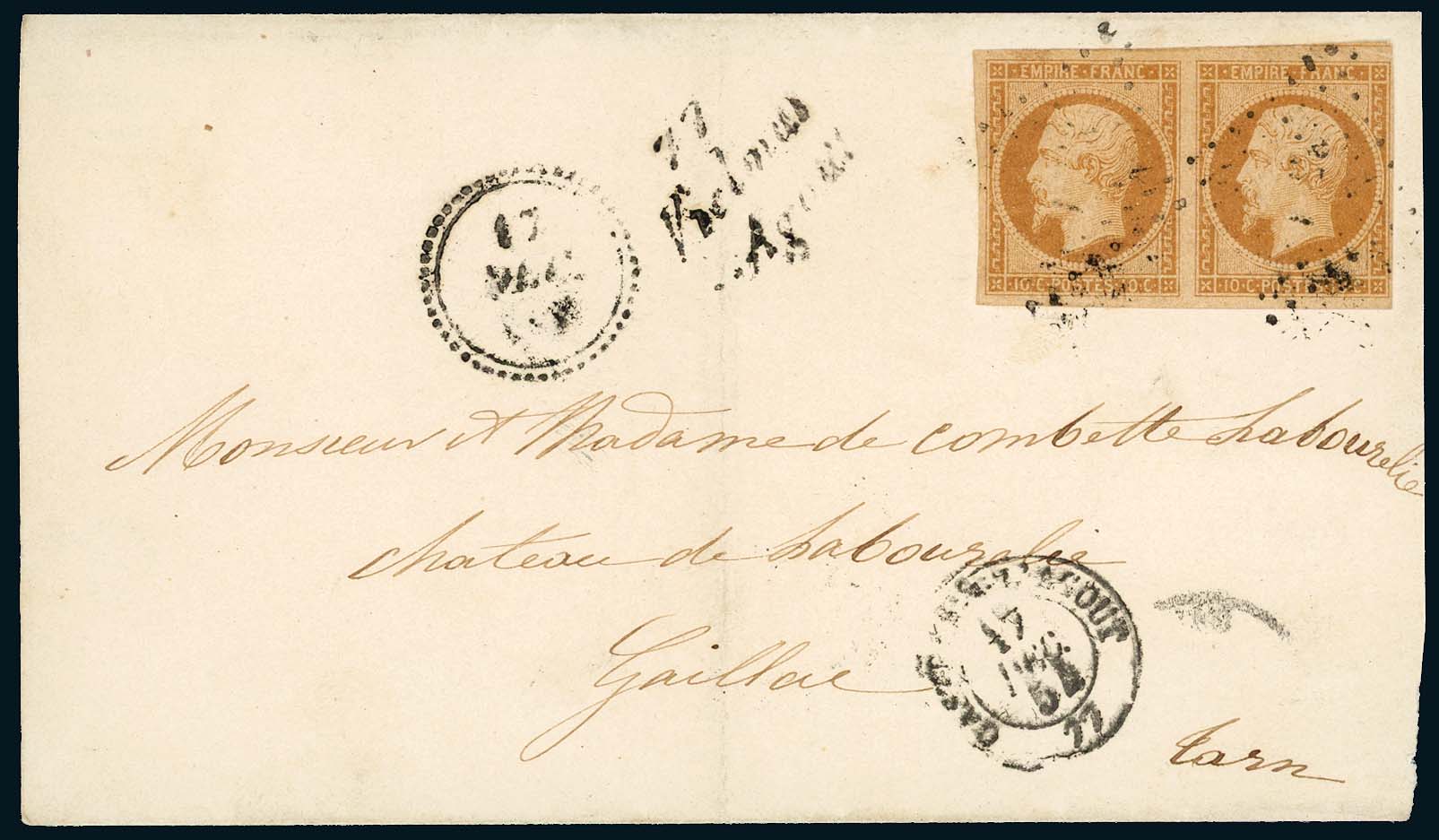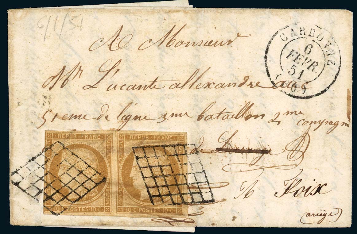 14 | N°1 en paire OB grille, C. CARBONE sur lettre pour Foix avec C. de passage et arrivée au verso 1851 B/TB | 80 | 150 | 80 | enchérir | |