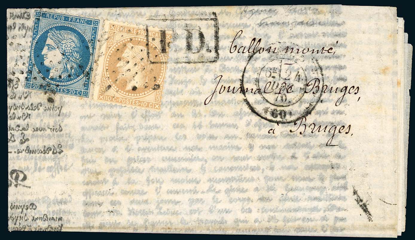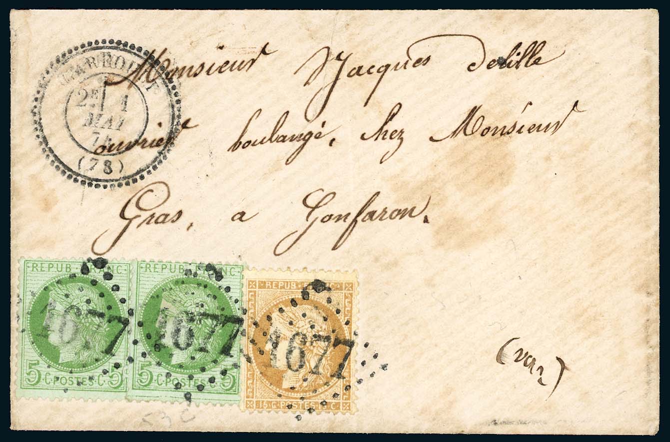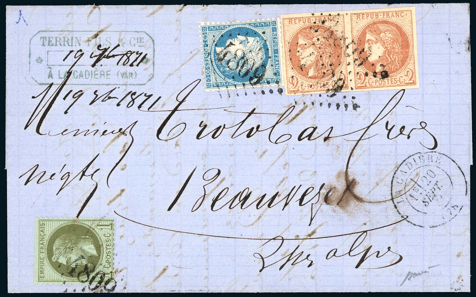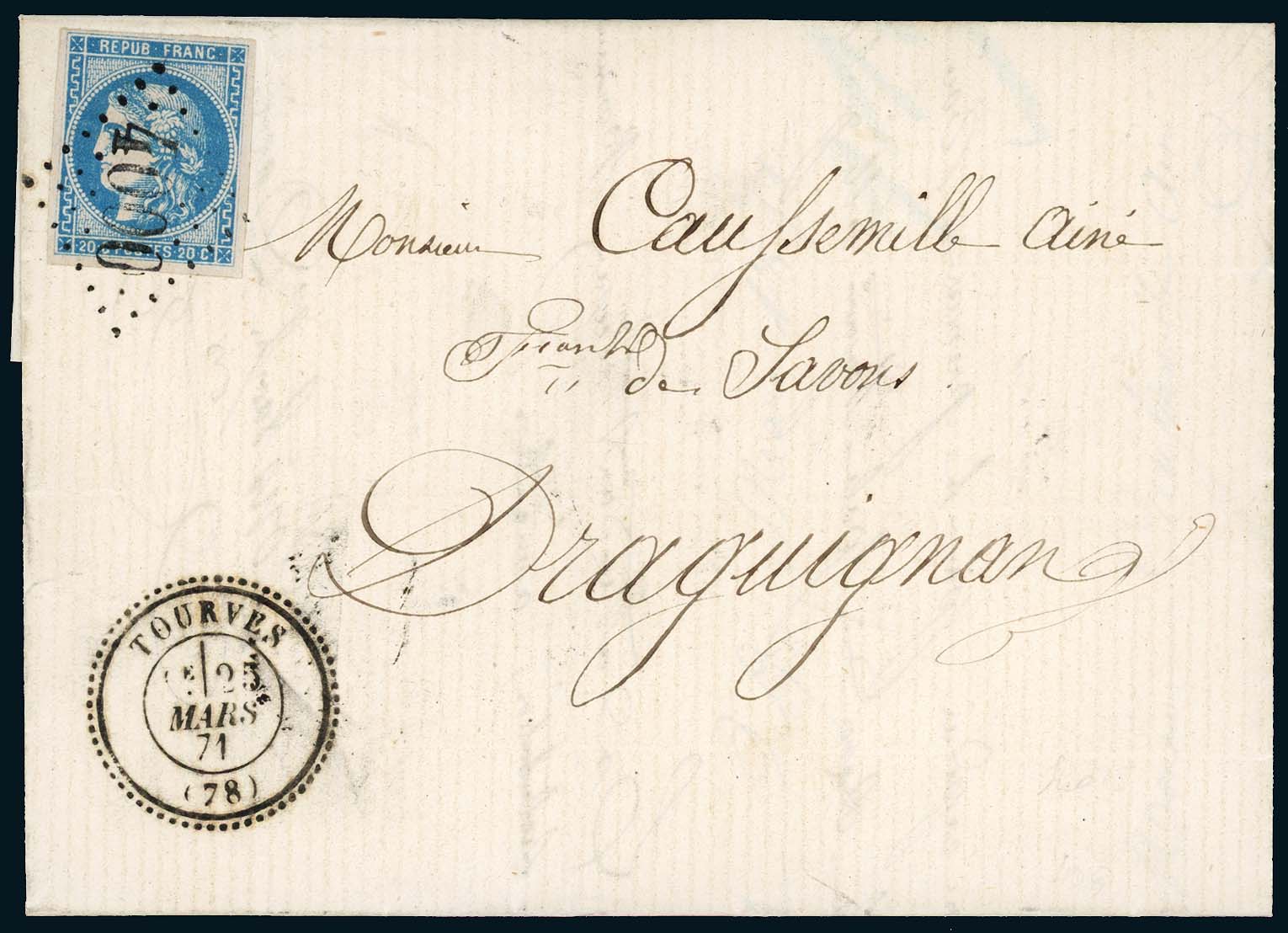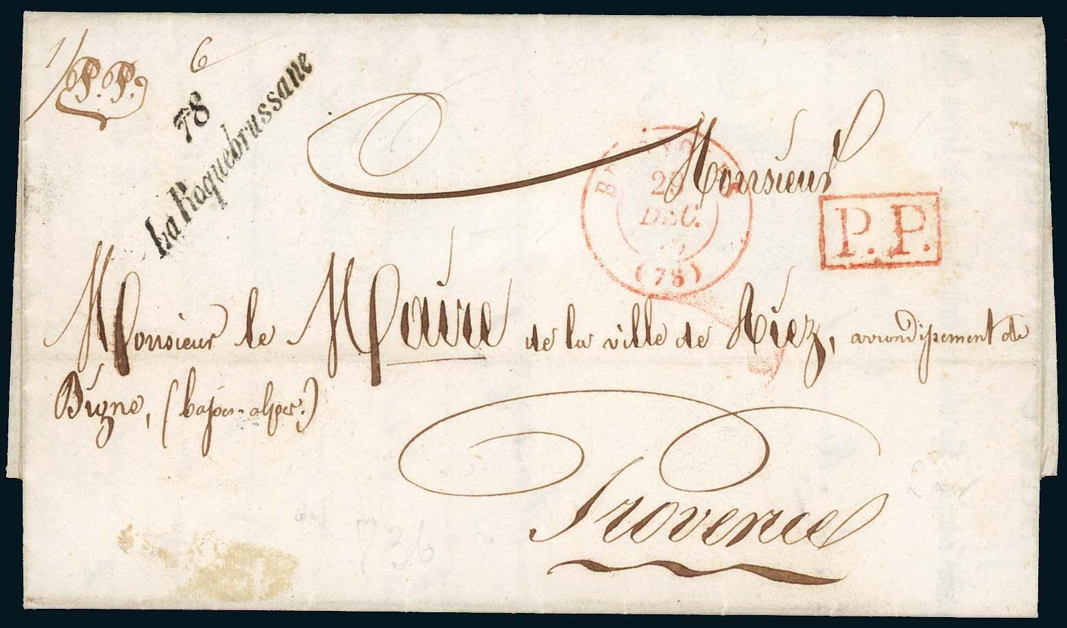 71 | N°3 (défectueux) OB grille, C. FORCALQUIER (type 12) et cursive 5/St Etienne/les-Orgues sur lettre pour Marseille avec C. MARSEILLE en arrivée 1849 Combinaison rare B/TB | 50 | 100 | 50 | enchérir | |