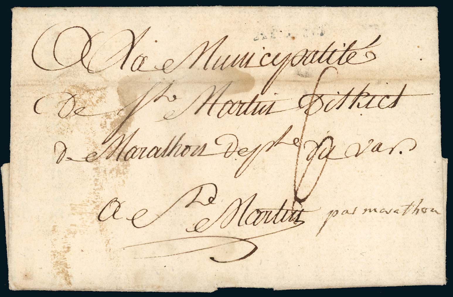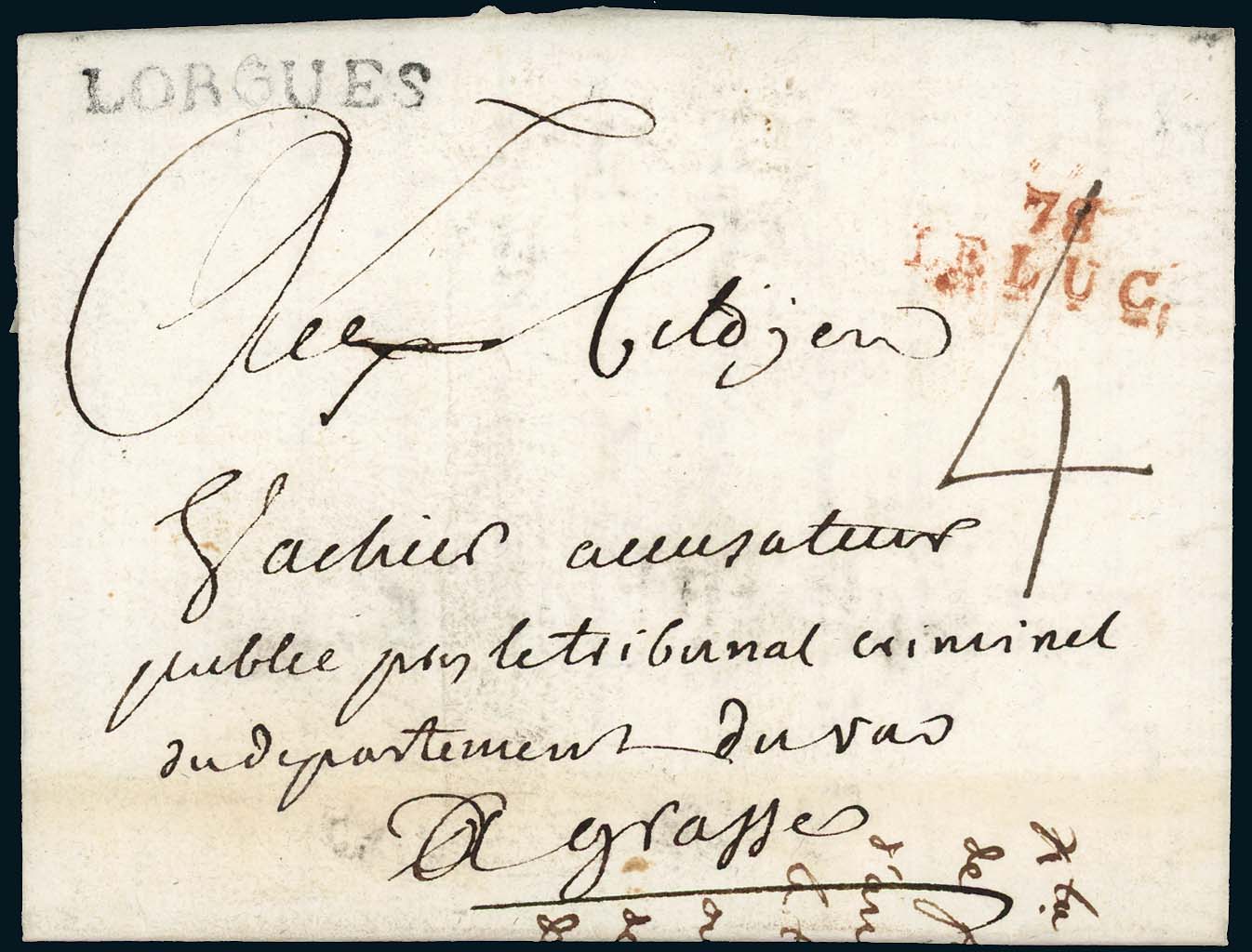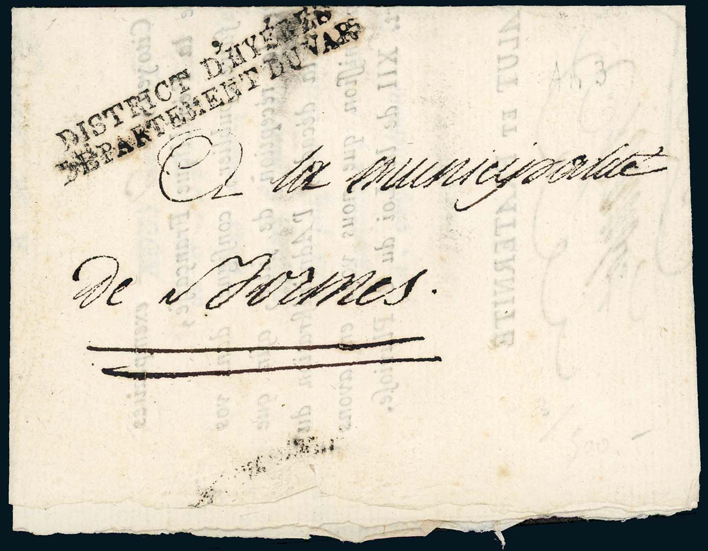 2463 | Lettres du Var et étrangères avec marques d'entrées, quelques cartes postales, le tout en 1 classeur TB dans l'ensemble | 50 | 100 | 50 | enchérir | |