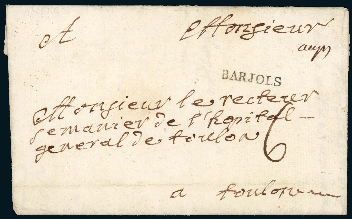 2445 | Petit lot d'environ 35 marques postales dont quelques déboursés manuscrits ou au tampon (Valence, Poitiers, Orange, Gap, Montélimart, Pezenas, Avignon), à trier | 150 | 300 | 150 | enchérir | |