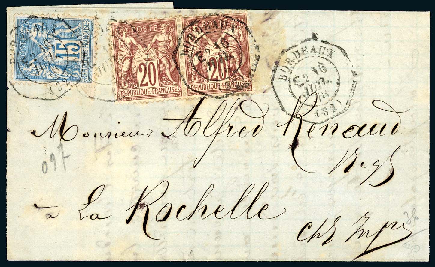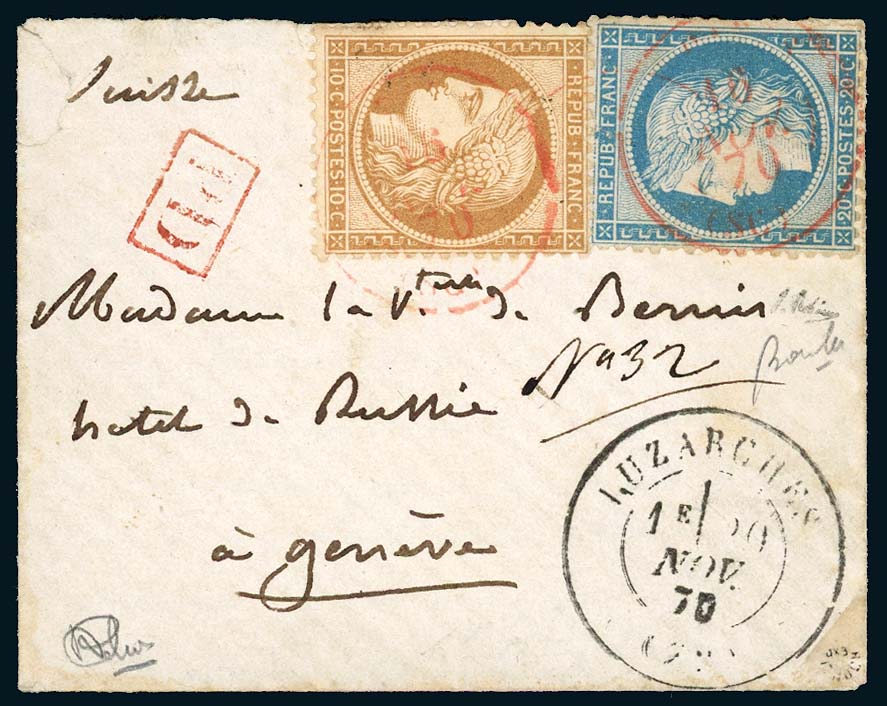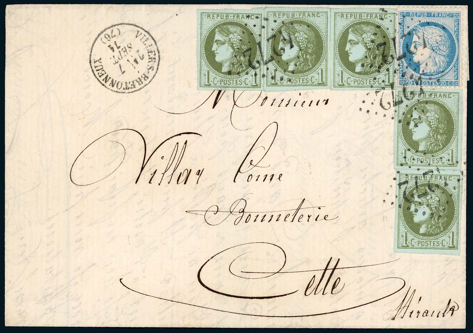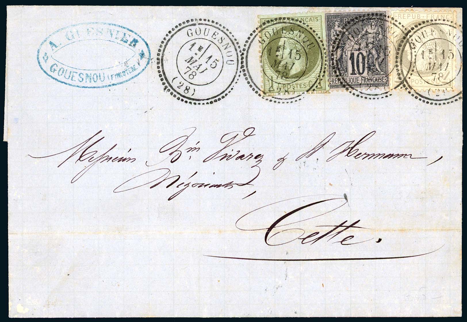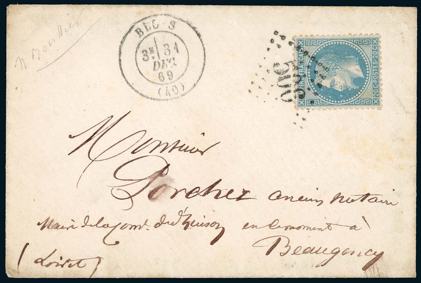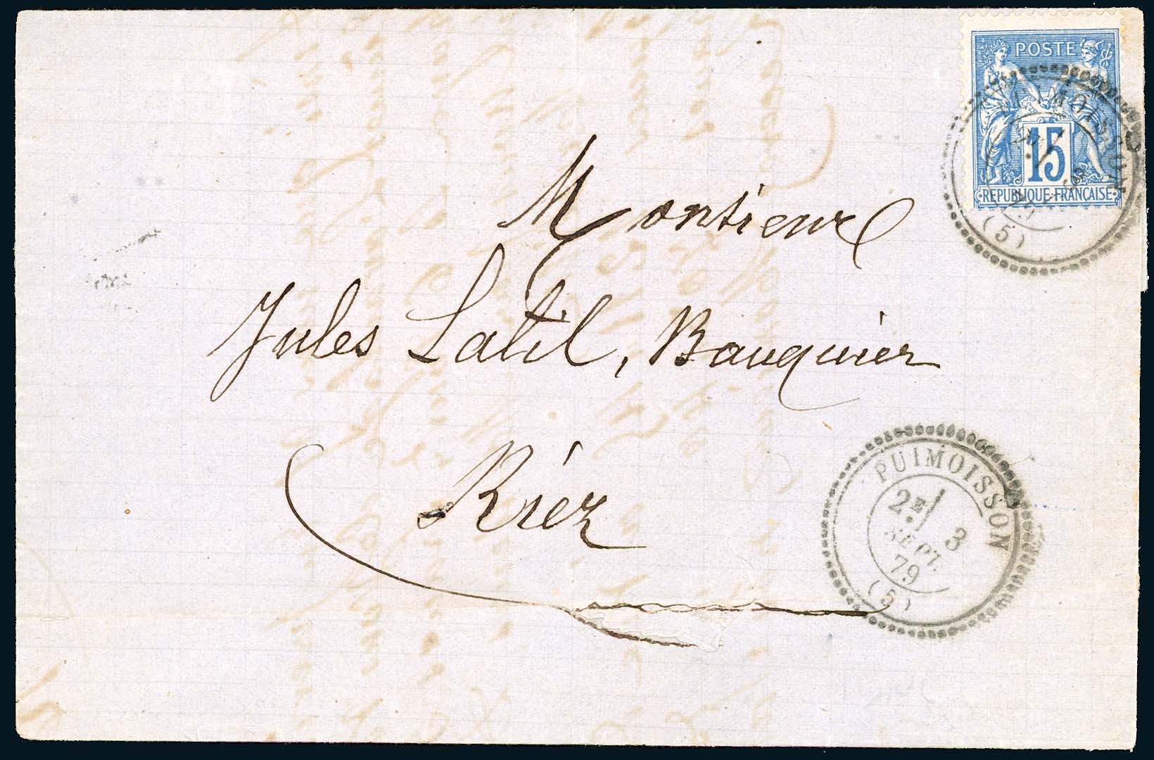 79 | N°3 OB grille, C. MEILHAN, cursive 45/Cocumont et boite rurale A sur enveloppe pour Aillas avec cursive 32/Aillas en arrivée au verso 1849 Combinaison rare TB | 100 | 200 | 100 | enchérir | |