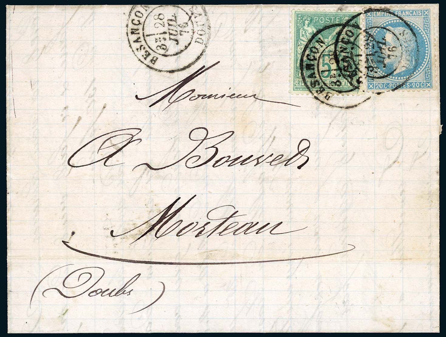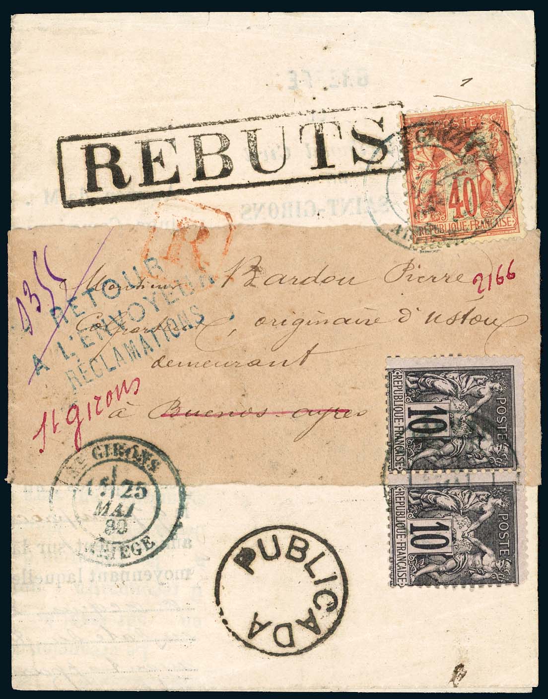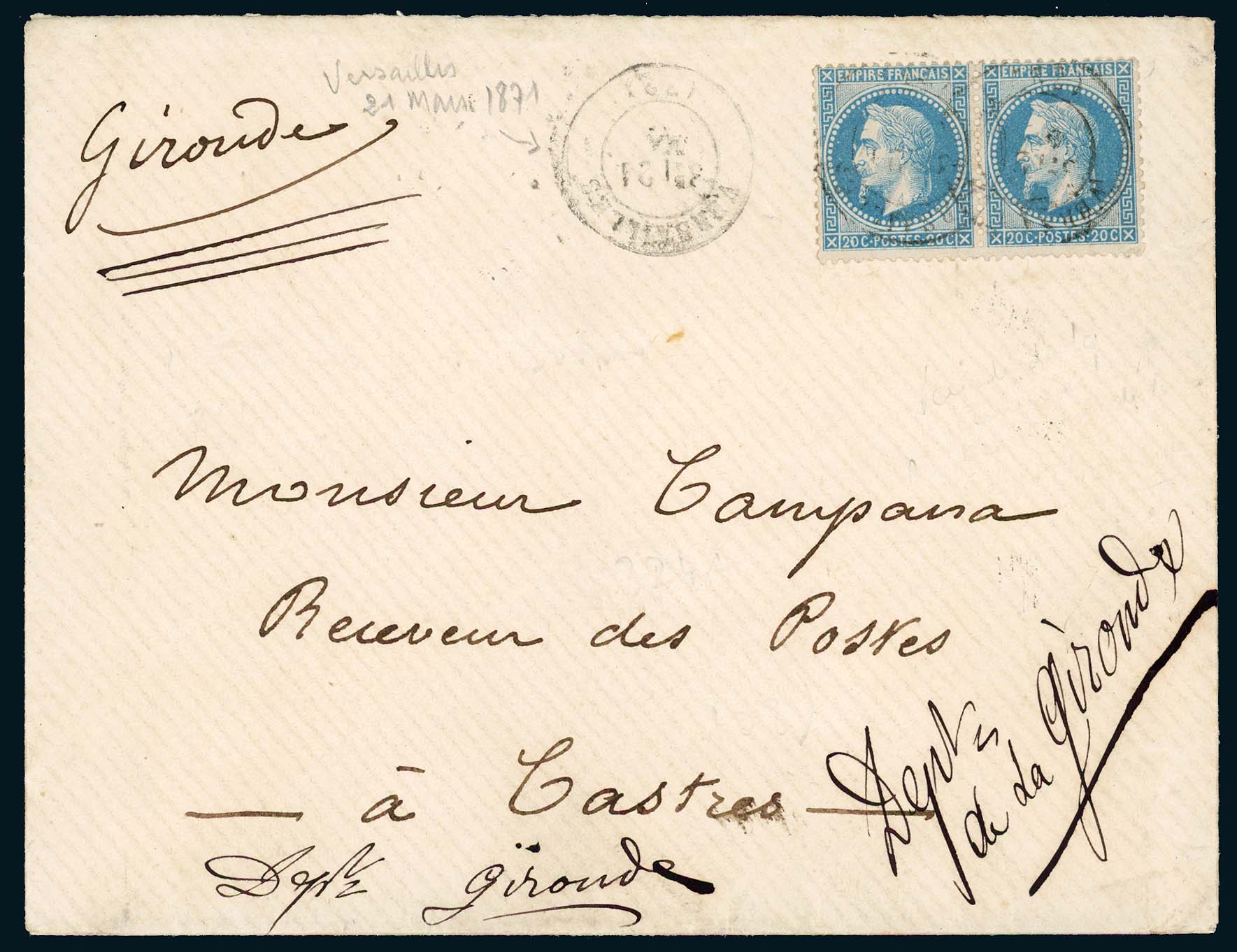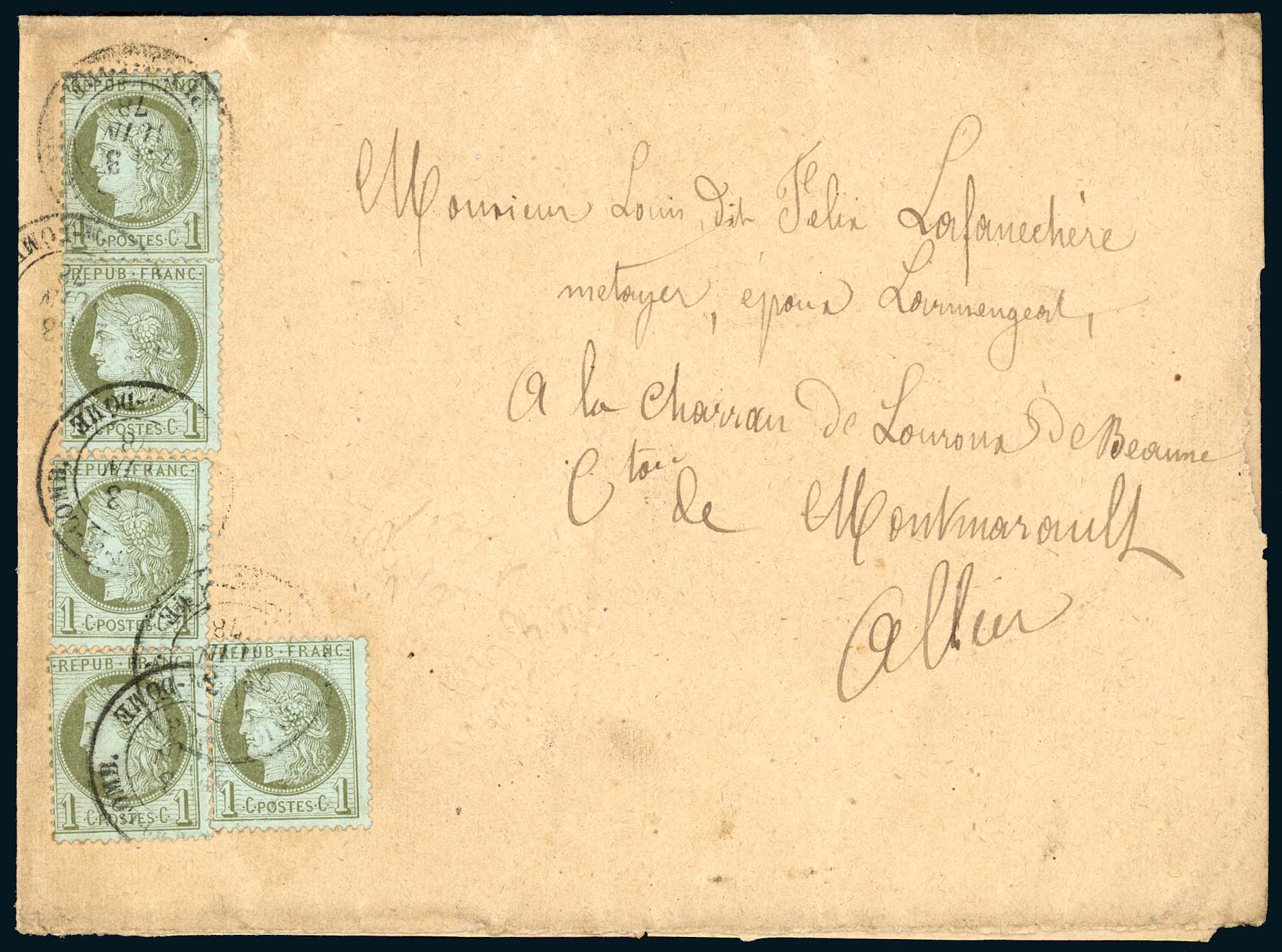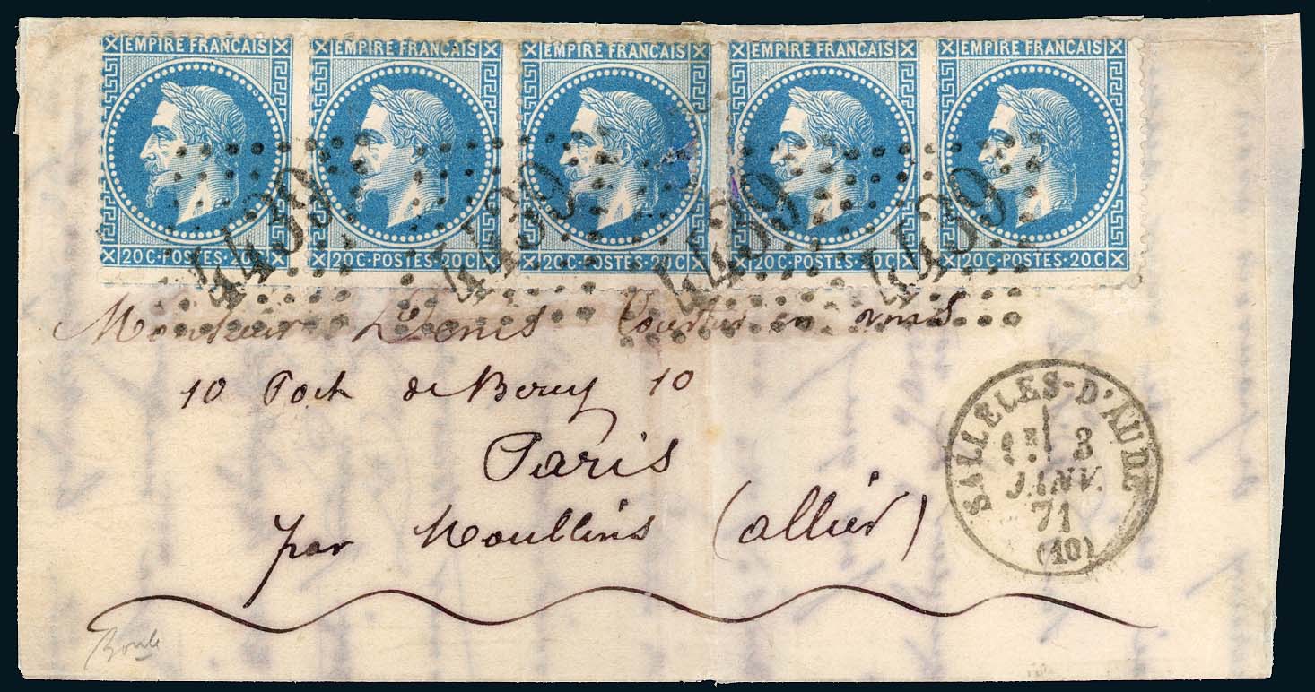 79 | N°3 OB grille, C. MEILHAN, cursive 45/Cocumont et boite rurale A sur enveloppe pour Aillas avec cursive 32/Aillas en arrivée au verso 1849 Combinaison rare TB | 100 | 200 | 100 | enchérir | |