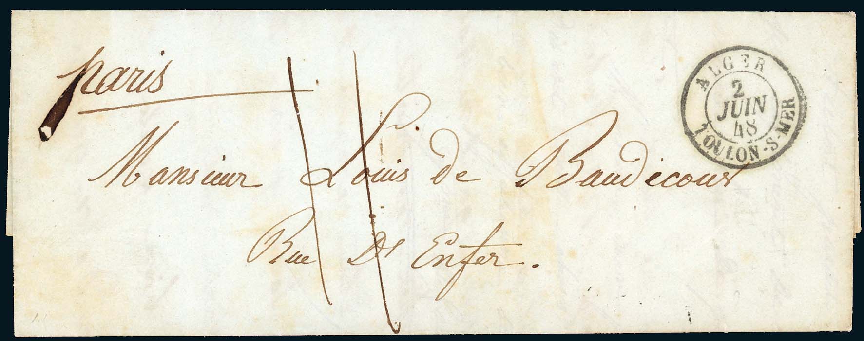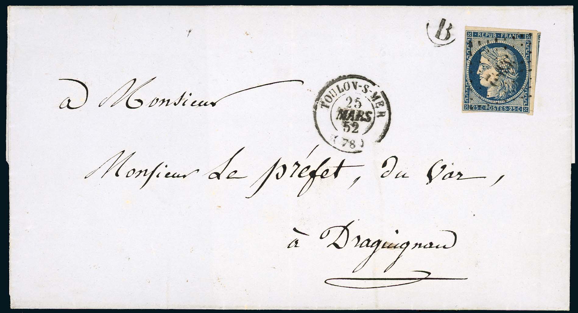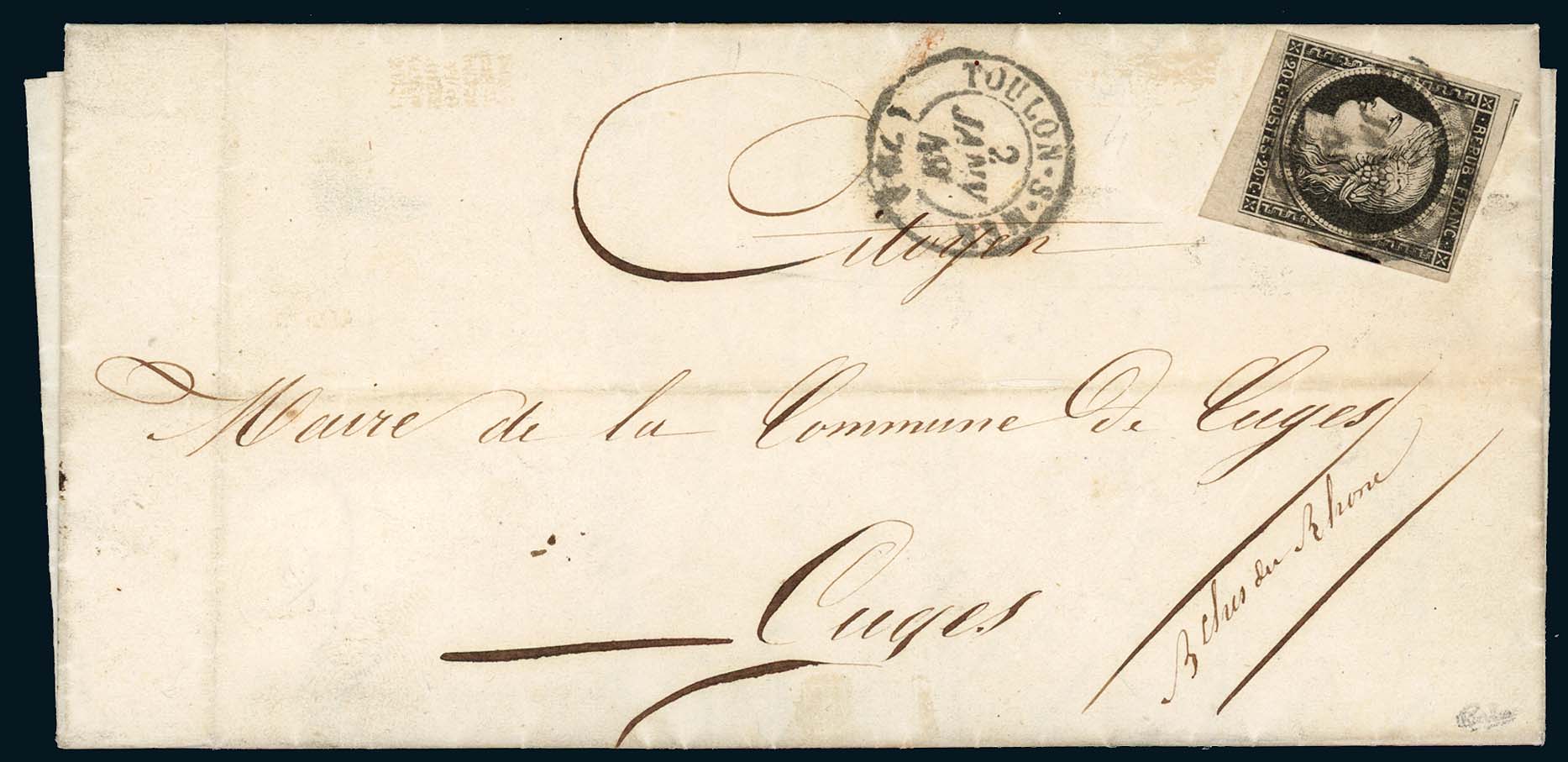 46 | N°3 OB C. TOULON-S-MER du 2 janvier 1849 Rare TB/Sup | 2000 | 3000 | 2000 | enchérir | |