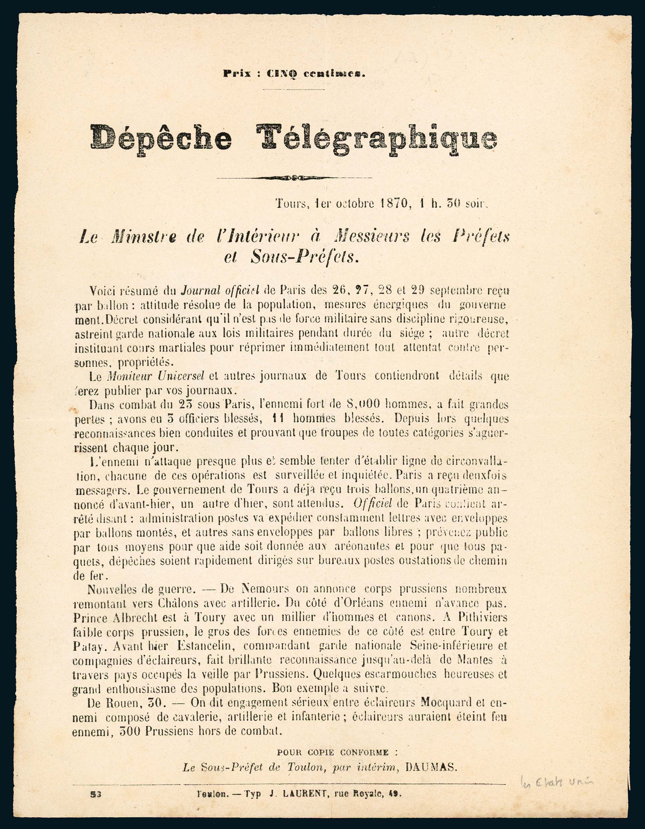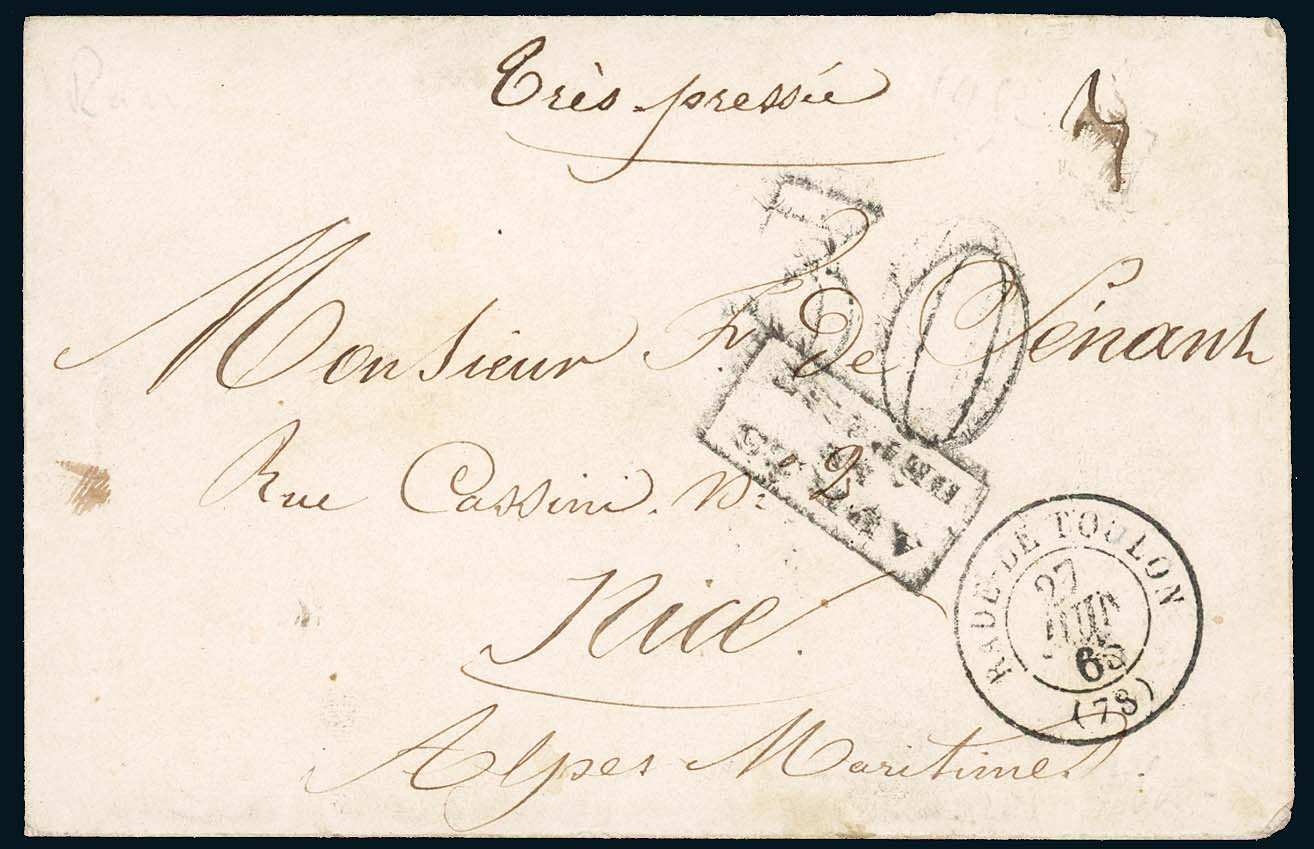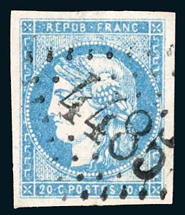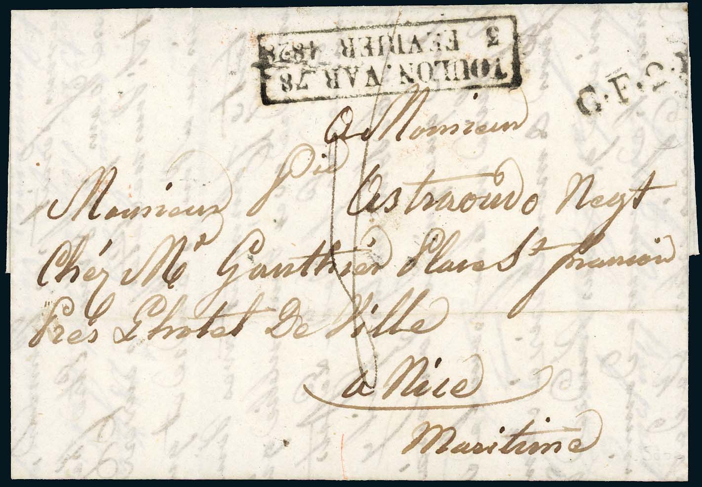46 | N°3 OB C. TOULON-S-MER du 2 janvier 1849 Rare TB/Sup | 2000 | 3000 | 2000 | enchérir | |