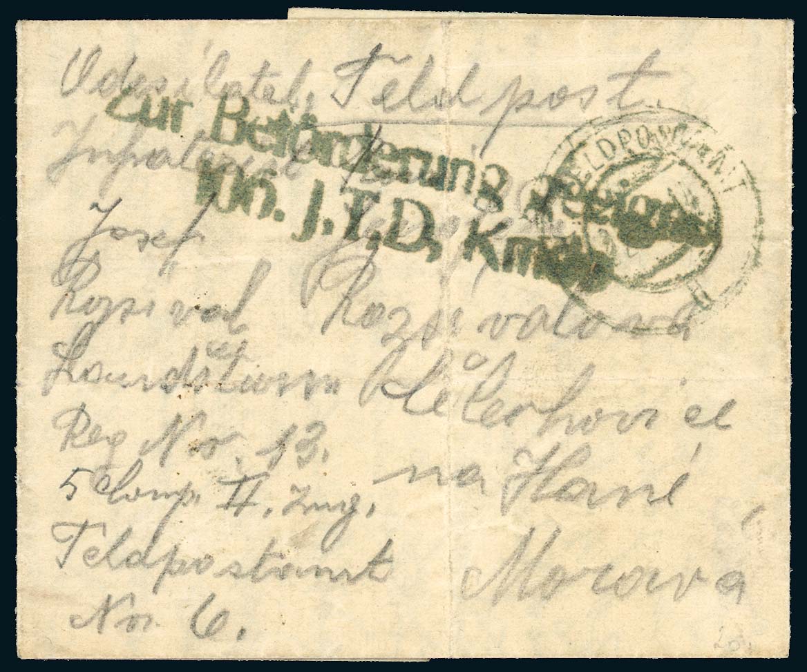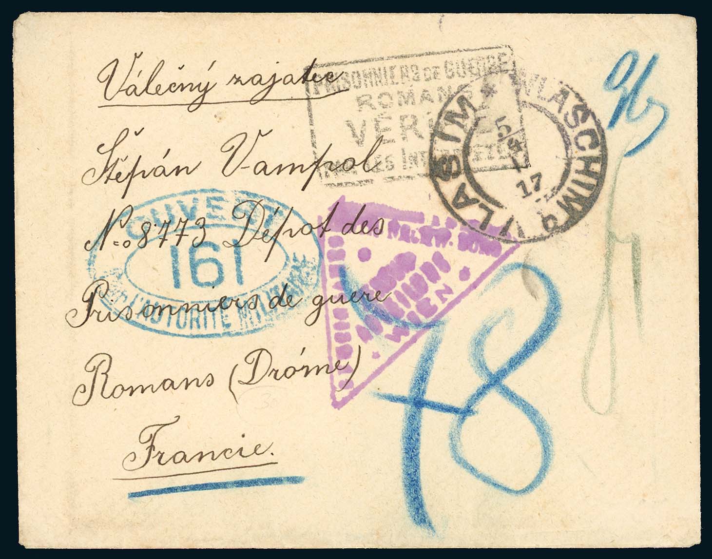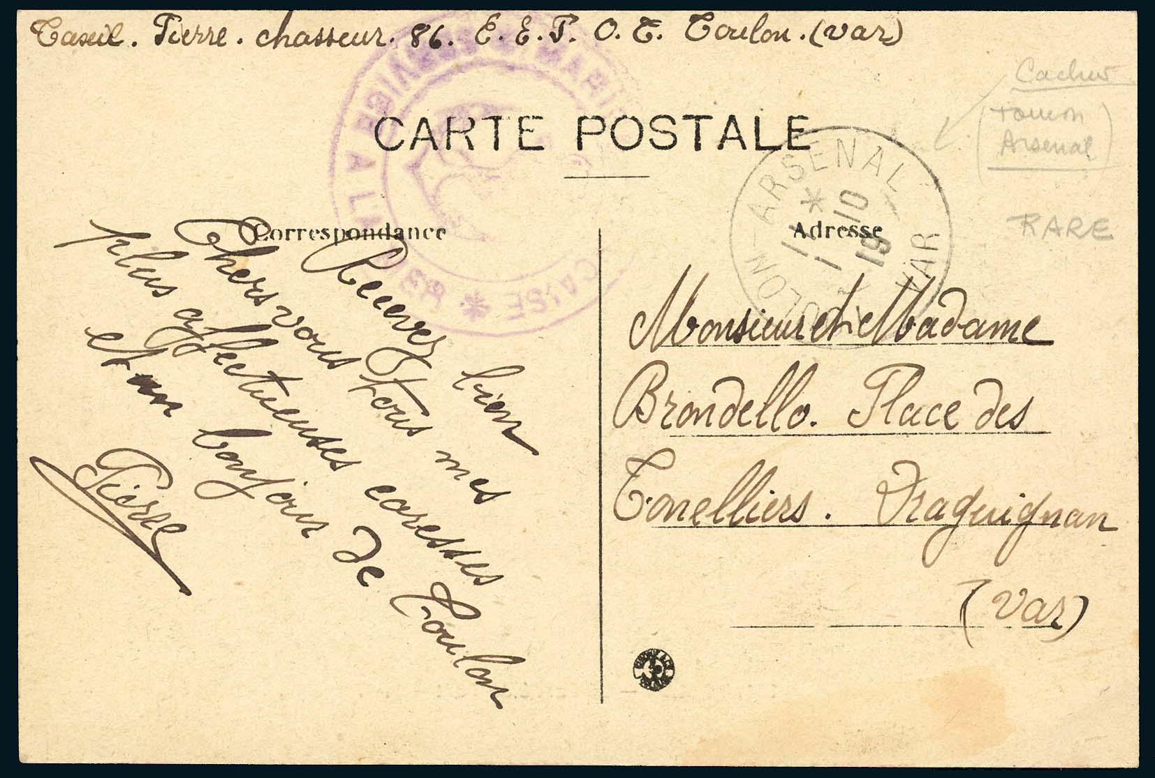 2457 | Guerre de 1914-1918, Lot de 4 enveloppes avec textes de Yves Clément (interprète franco-allemand) pour sa fiancée à Marmande du Camp de Carpiagne et du Frioul (1915) et une carte-postale avec C. PURIFIE FRIOUL en bleu (1906) TB dans l'ensemble | 150 | 300 | 150 | enchérir | |