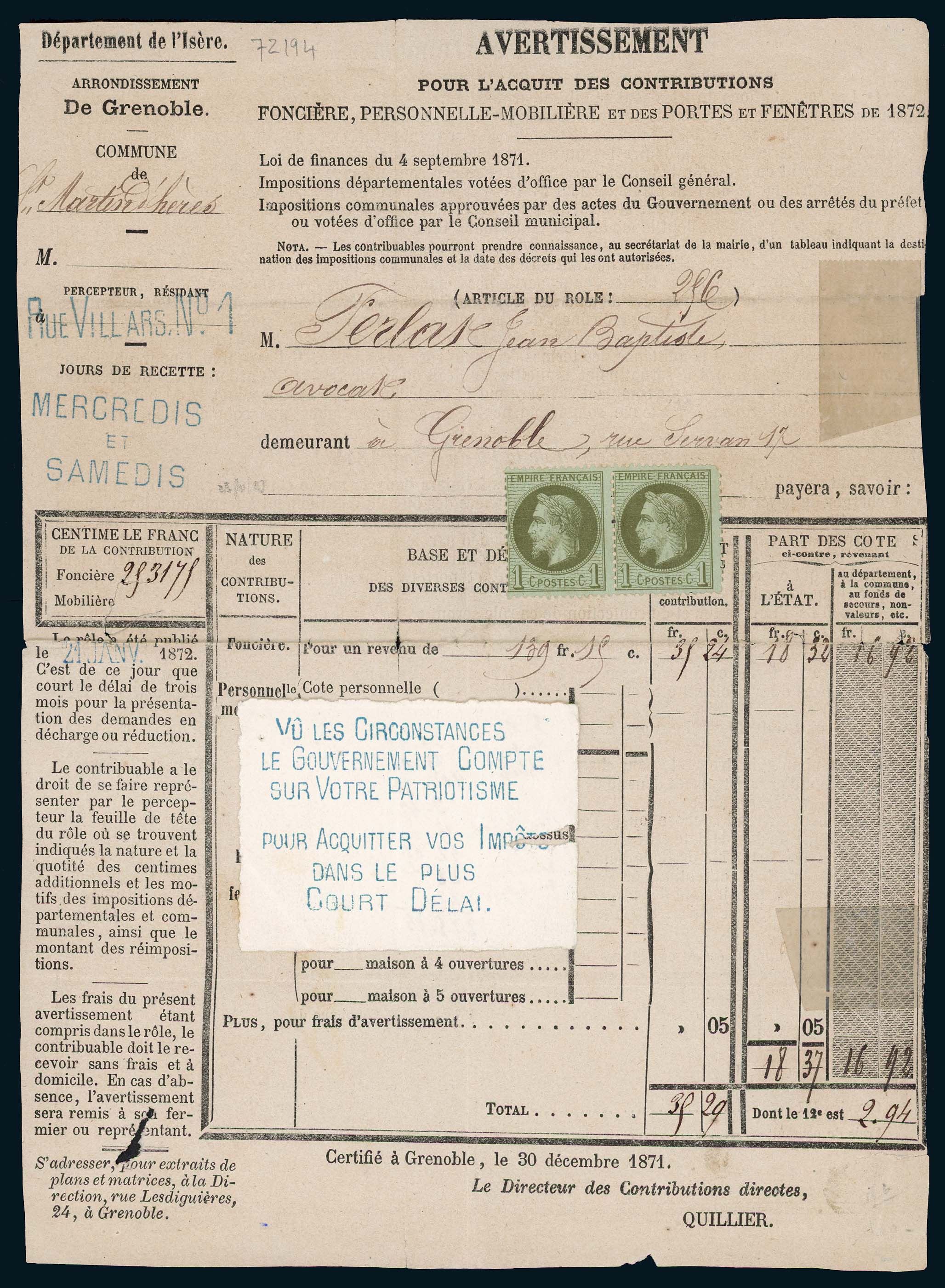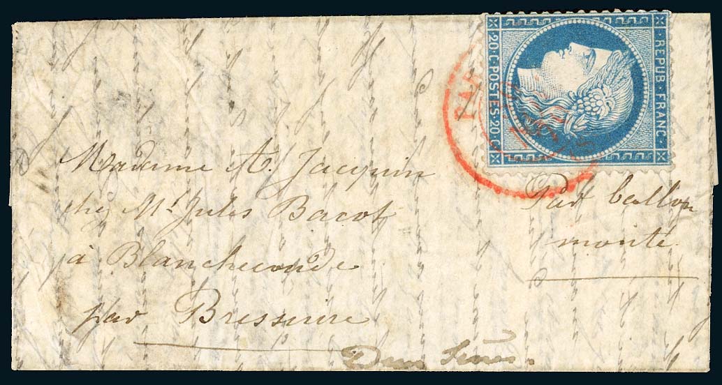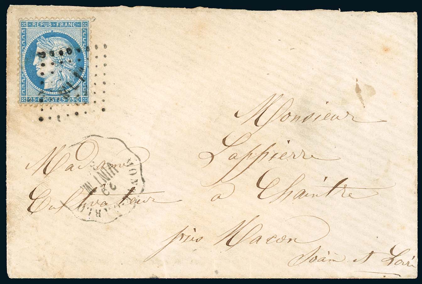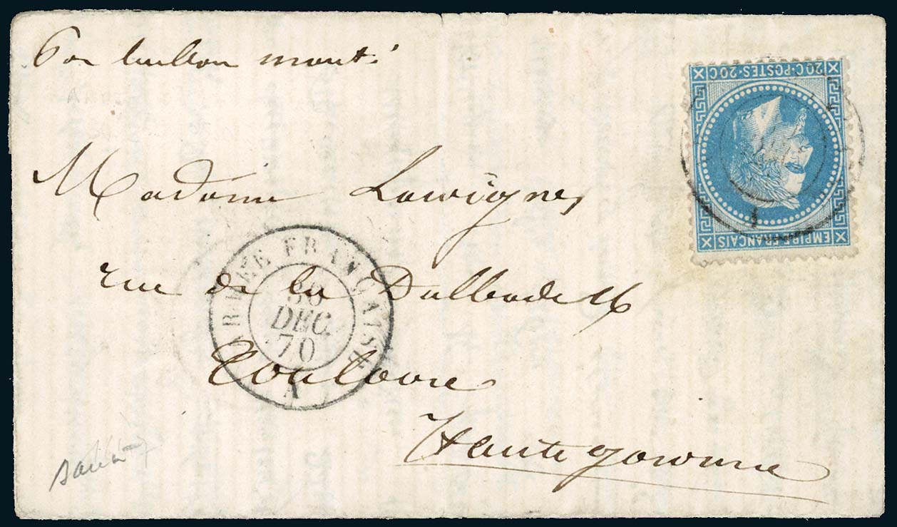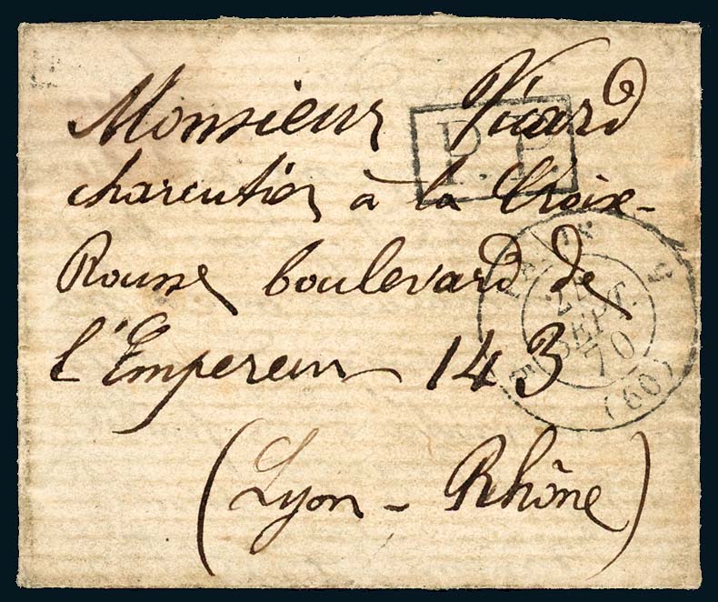 11 | N°1 OB grille sur faire-part de Belleville-sur-Saône (Rhône) 30 décembre 1851 TB | 200 | 400 | 200 | enchérir | |