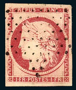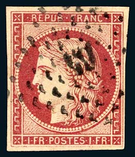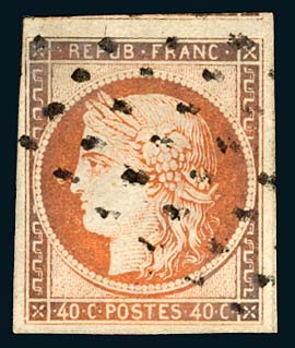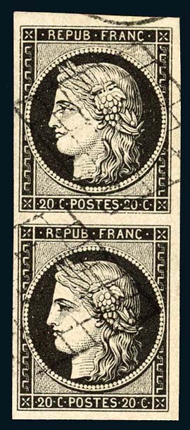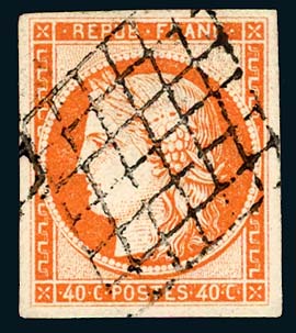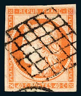 41 | N°3b, noir sur chamois, OB grille TB | 35 | 70 | 35 | enchérir | |
