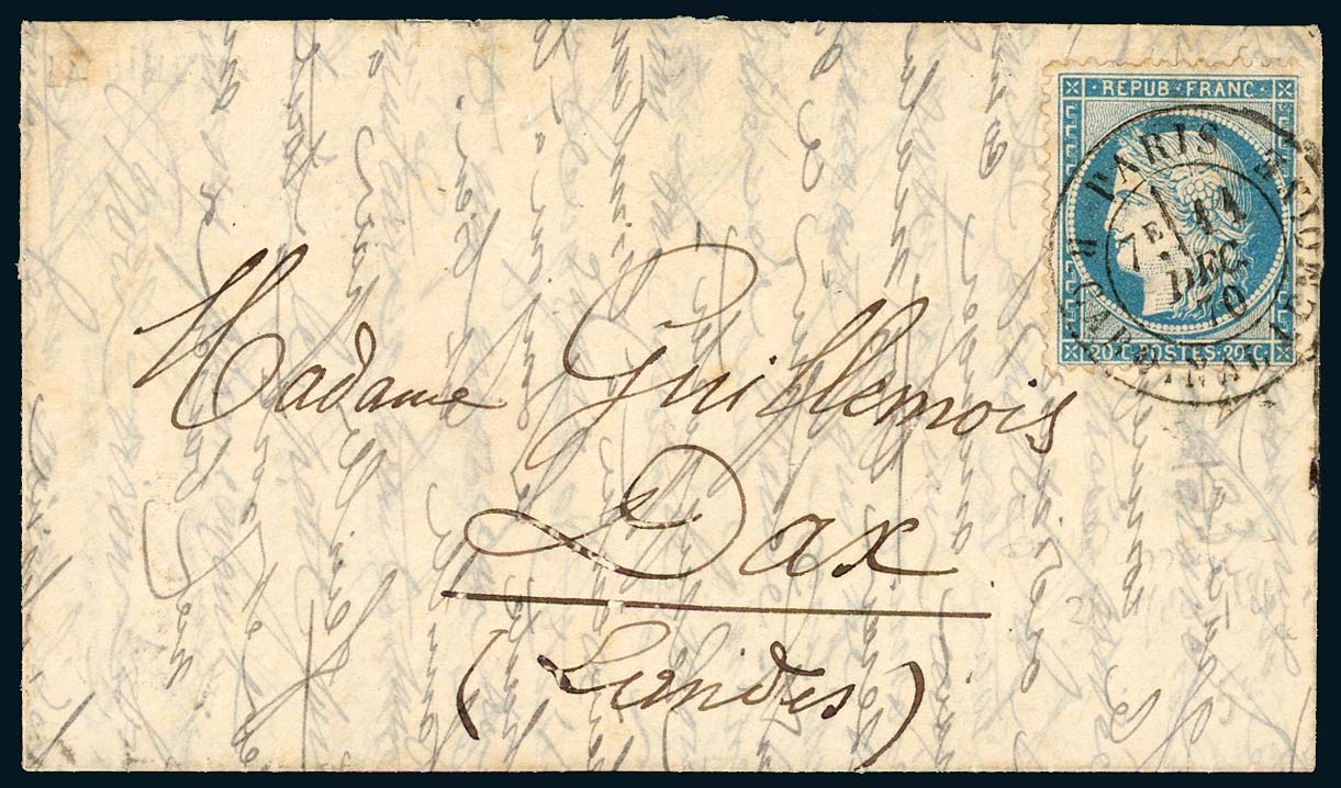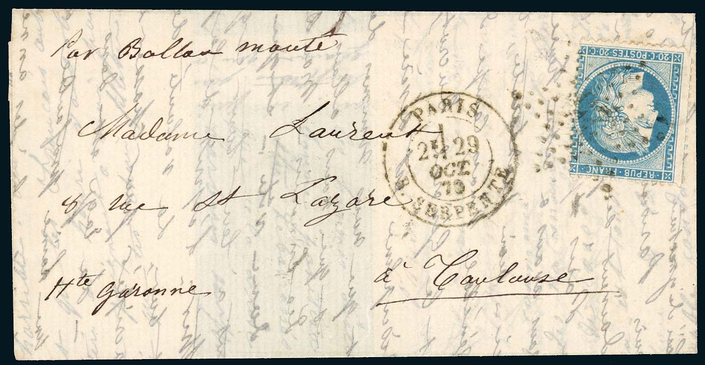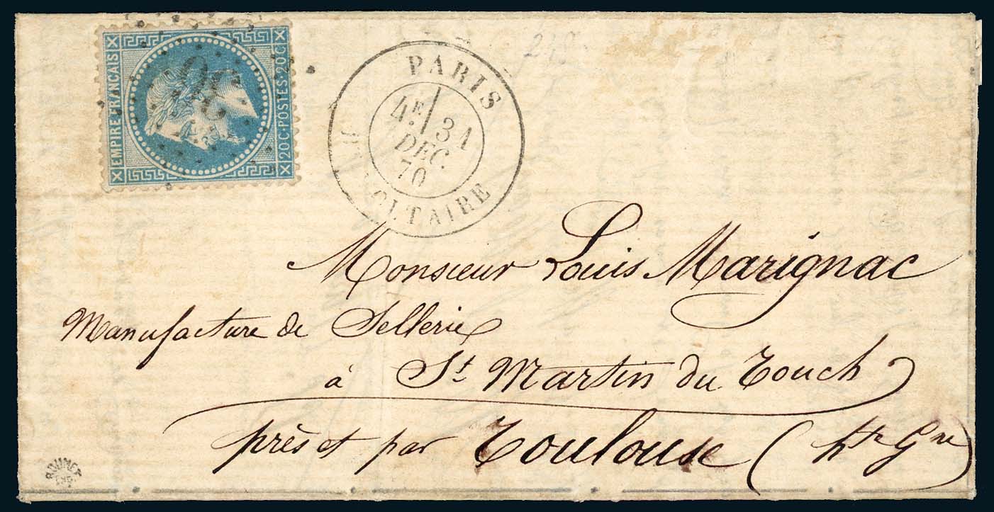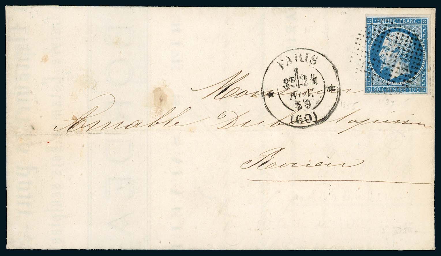 29 | N°2 OB étoile sur lettre locale de Paris avec C. PARIS au verso 1853 TB | 125 | 200 | 125 | enchérir | |
