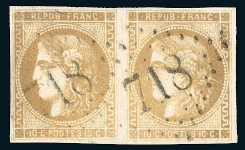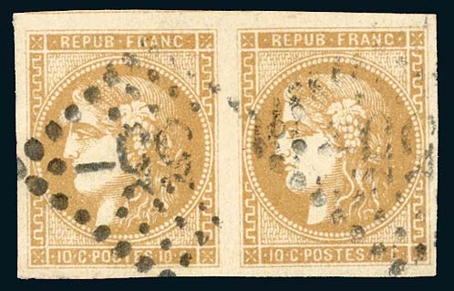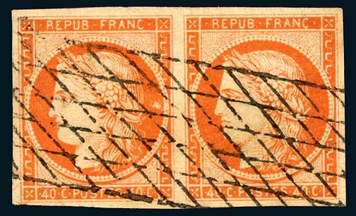 43 | N°3e, paire tête OB grille, SPERATI TB | 200 | 400 | 200 | enchérir | |