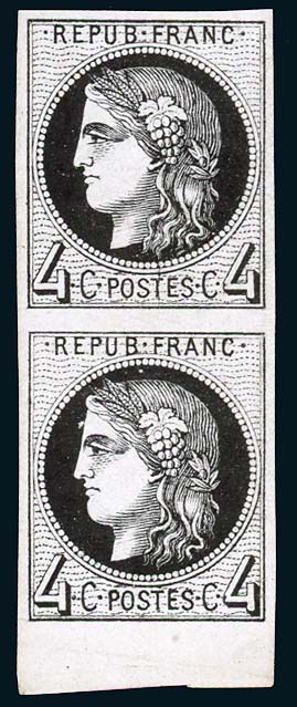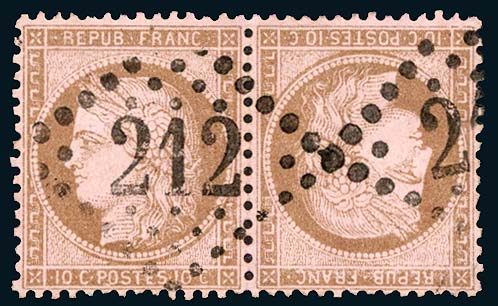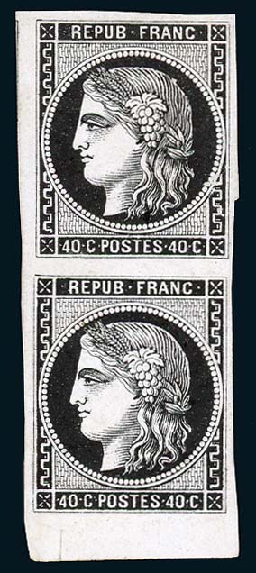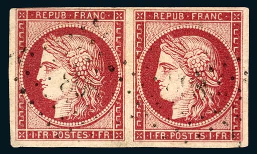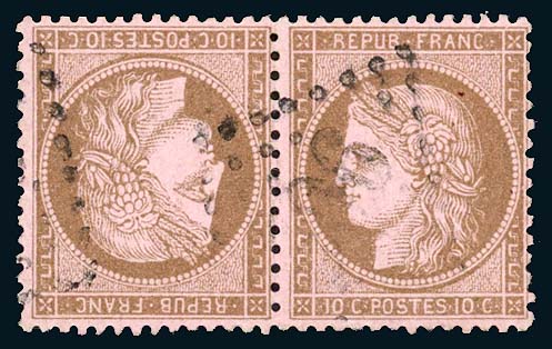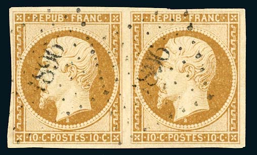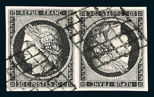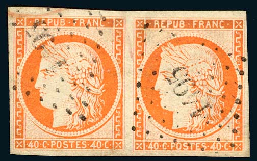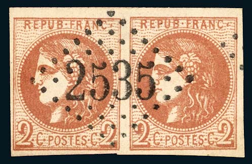 42 | N°3d, paire tête-bêche, OB étoile, signé Calves Rare TB | 1500 | 2500 | 1500 | enchérir | |
