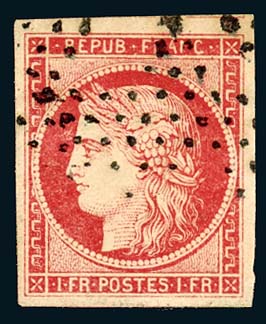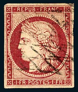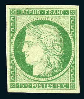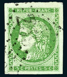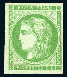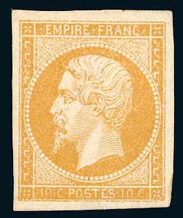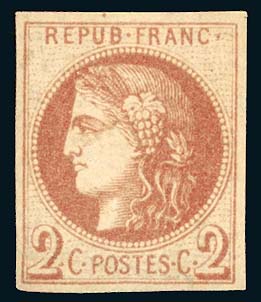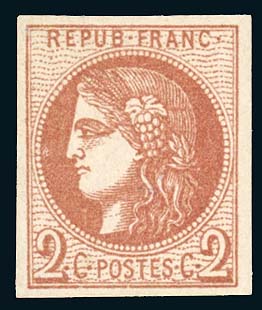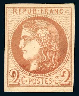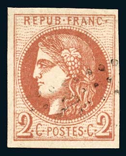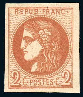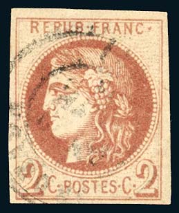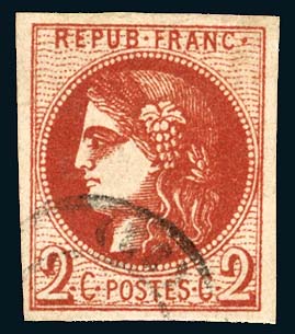 21 | N°2*, très belle gomme avec infime manque, grandes marges, exemplaire exceptionnel Rare, signé TB | 5000 | 8000 | 5000 | enchérir | |