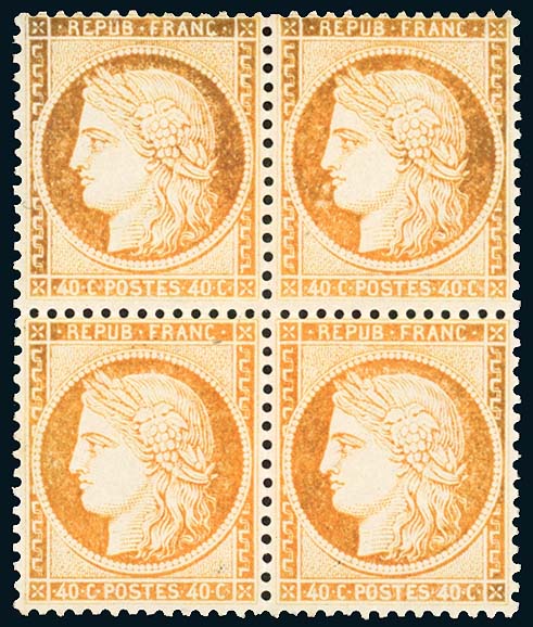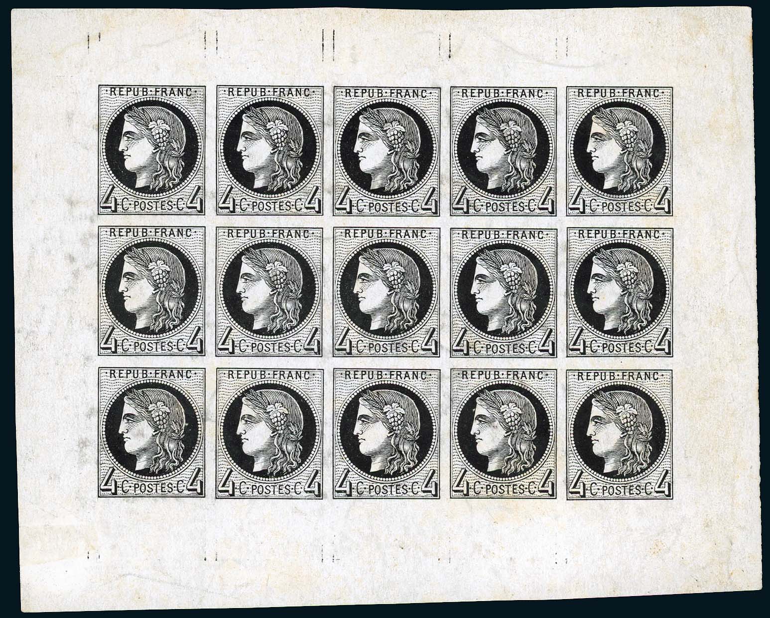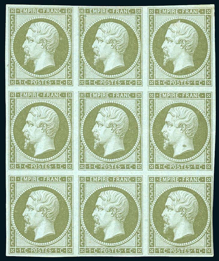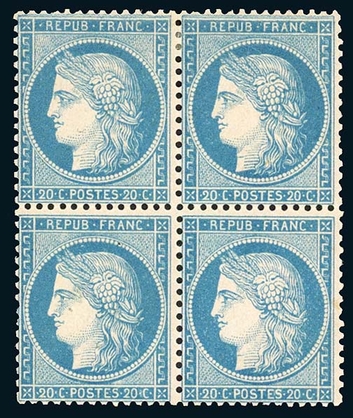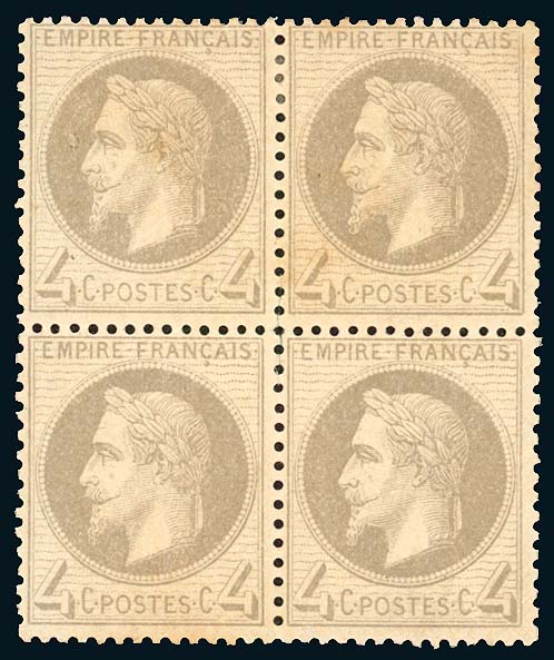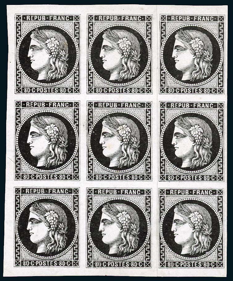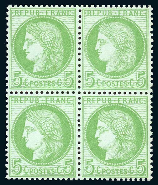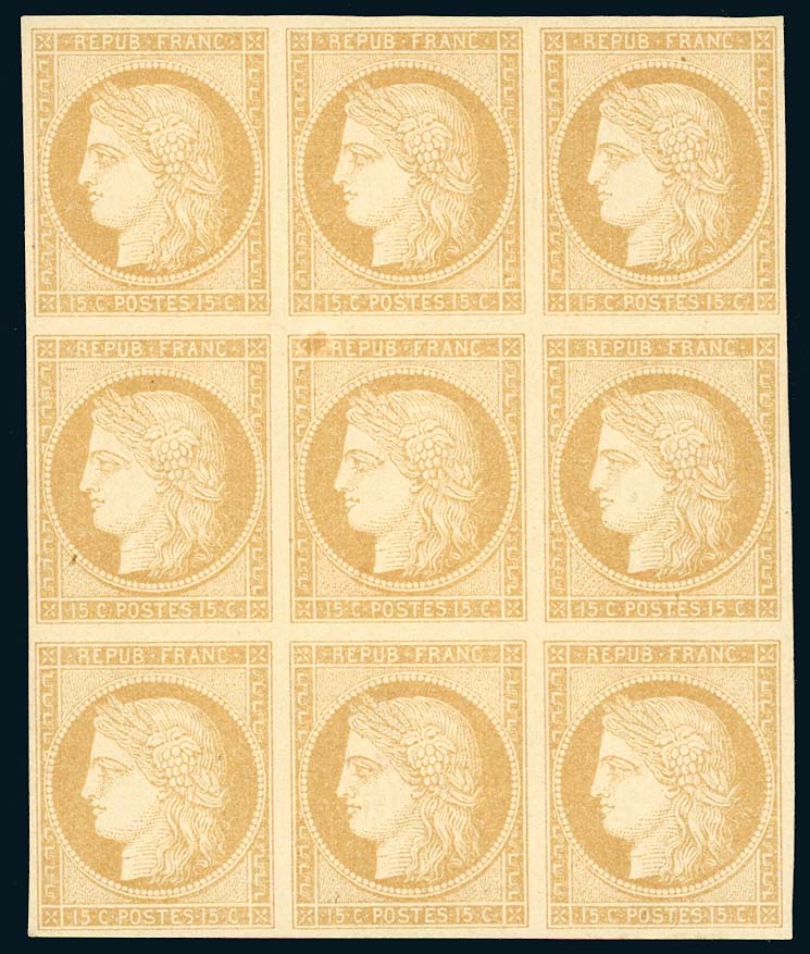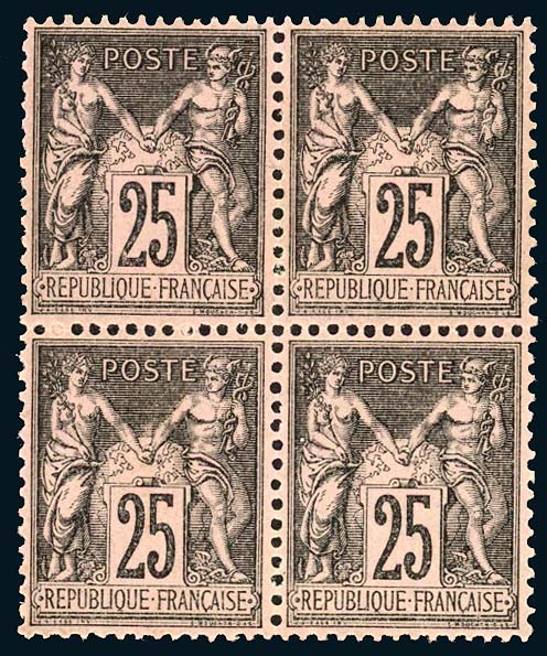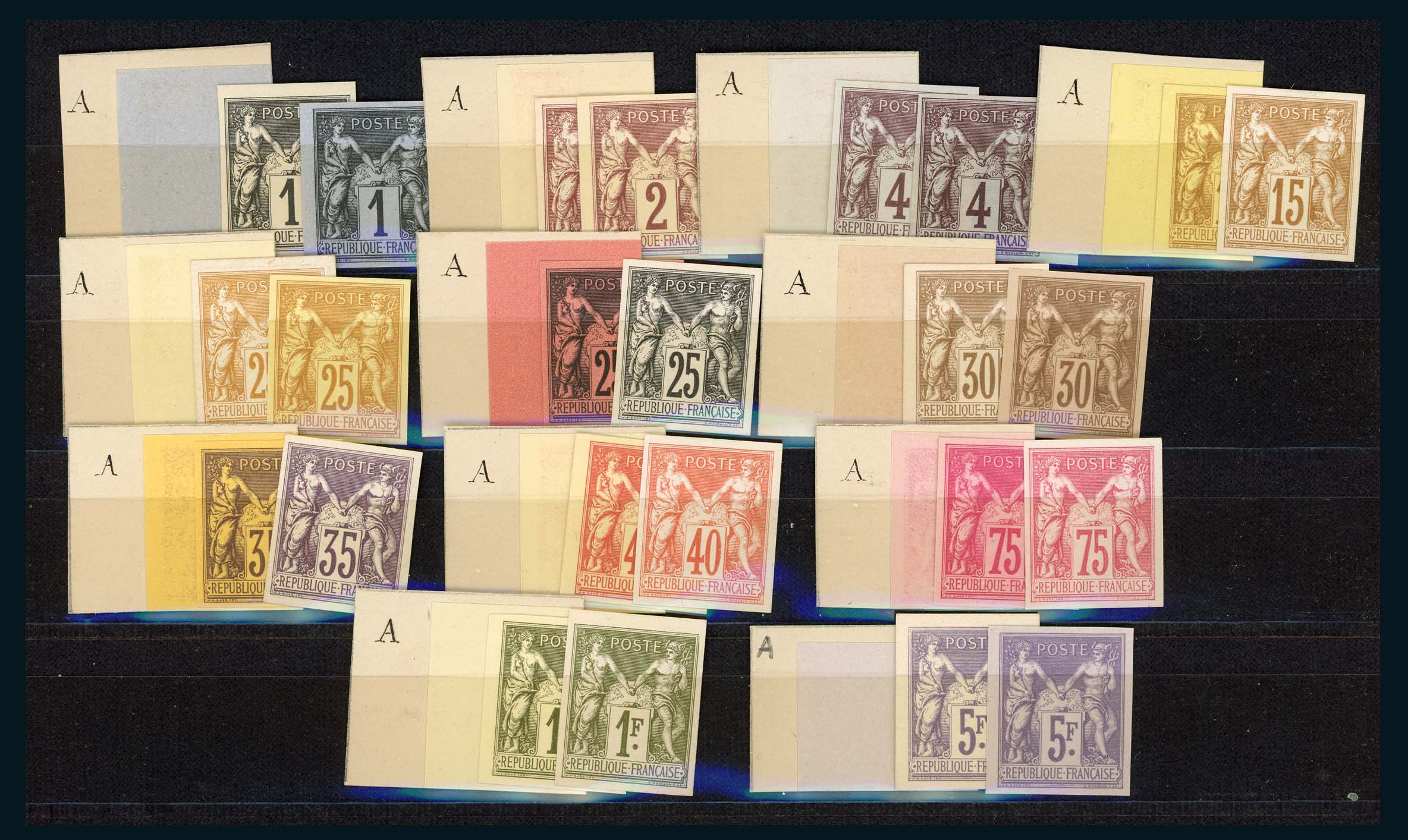 2410 | France, Collection de neufs et OB des origines aux années 30, composée de plusieurs timbres au même type, souvent avec des oblitérations différentes ou pour les neufs des variétés, bandes, blocs, millésimes (...), classiques très bien représentés (N°1 - 4 ex, N°2 - 3 ex, N°5, N°6 - 2 ex, N°9 - 2 ex, N°33 - 2 ex, emissions de 1853 et de Bordeaux bien représentées, type Sage avec quelques blocs et millésimes) très nombreuses bonnes valeurs dans les semi-modernes (Mouchon, Semeuses, Merson avec quelques variétés, N°182 - 2 ex, N°257A - 2 ex), exemplaires souvent choisis (nombreux classiques signés), nombreux millésimes, très forte cote, très bel ensemble constitué avec soin, à voir absolument Vous pouvez trouver l'ensemble des photos sur la page de la vente |