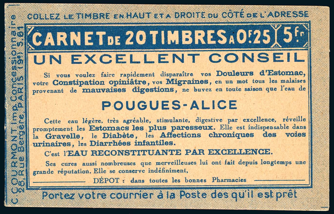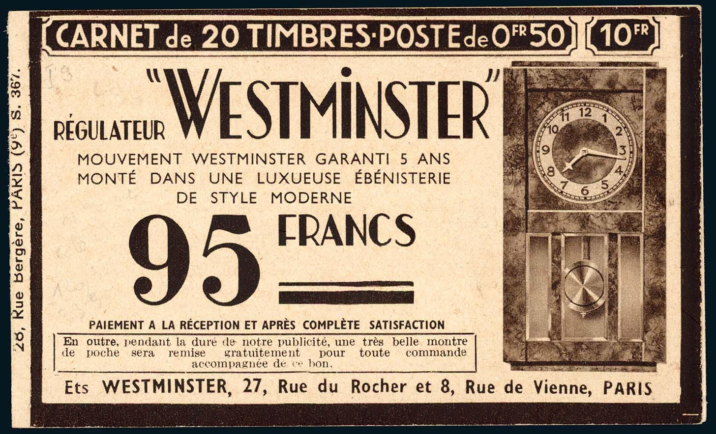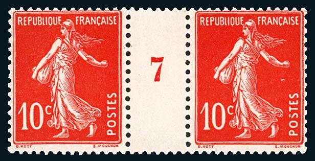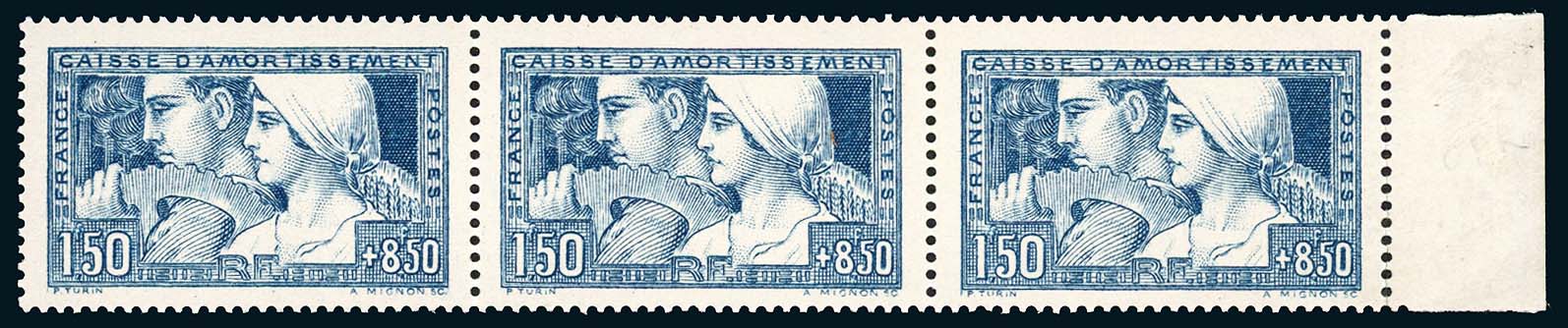 2433 | Roulettes, Pasteur 10, 15, 30 et 75c (Bandes verticales de 6 et de 10, cette dernière avec charnière centrale de consolidation) B/TB | 1000 | 2000 | 1000 | enchérir | |