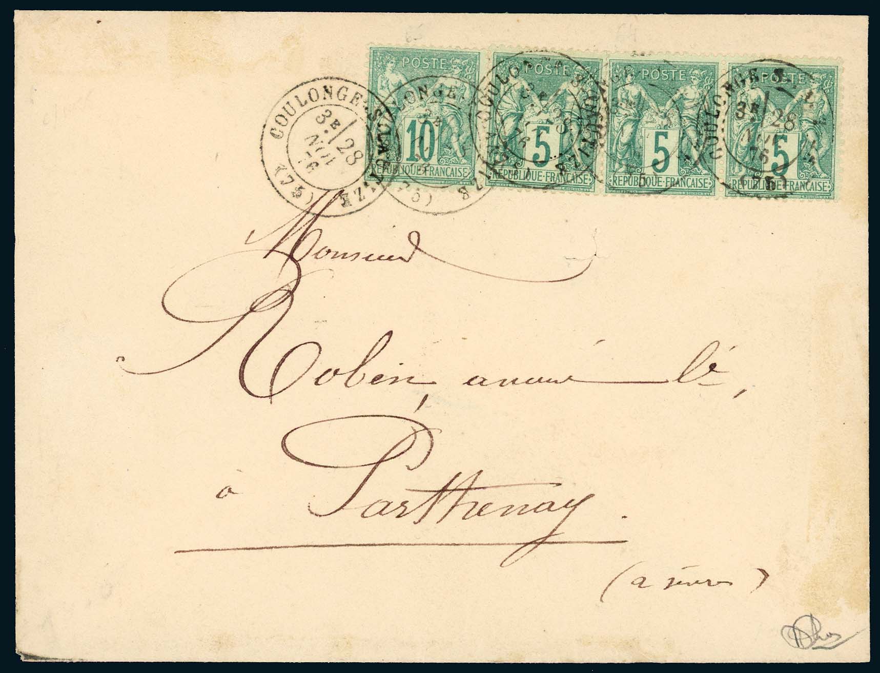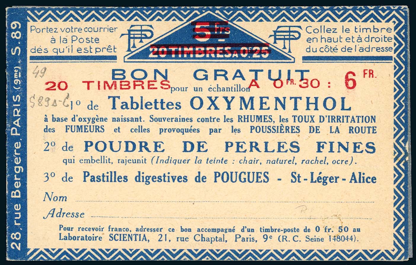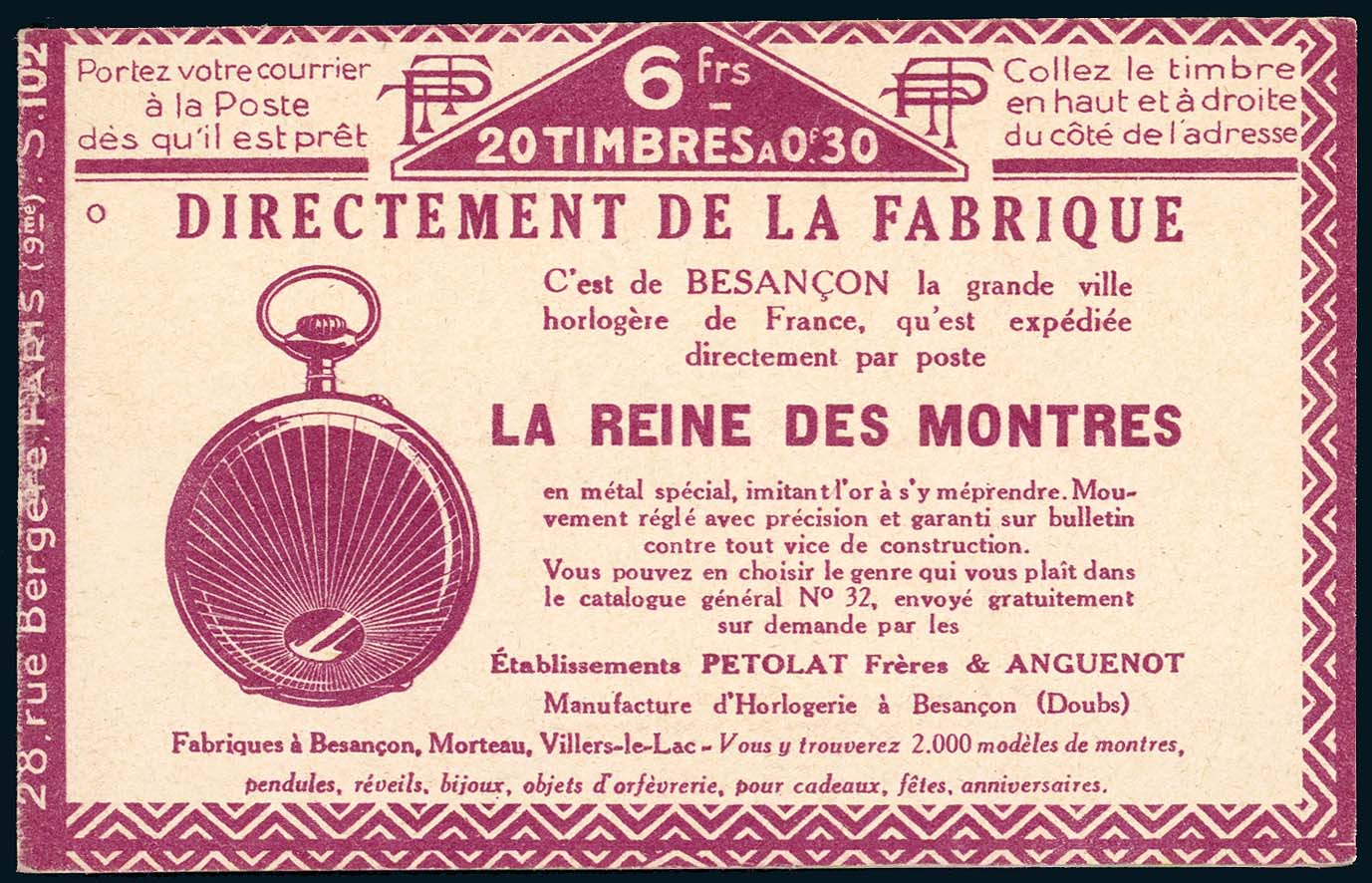 2433 | Roulettes, Pasteur 10, 15, 30 et 75c (Bandes verticales de 6 et de 10, cette dernière avec charnière centrale de consolidation) B/TB | 1000 | 2000 | 1000 | enchérir | |