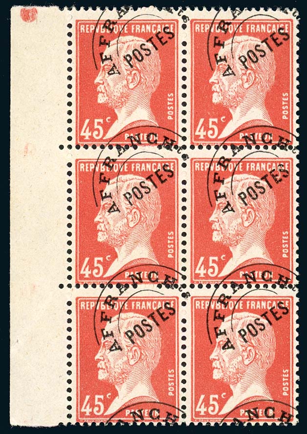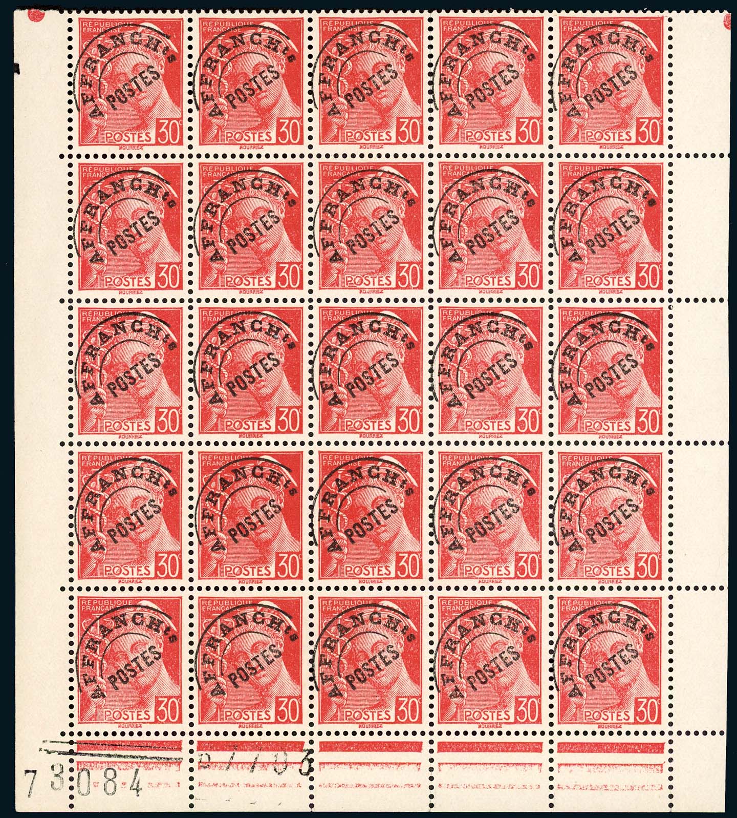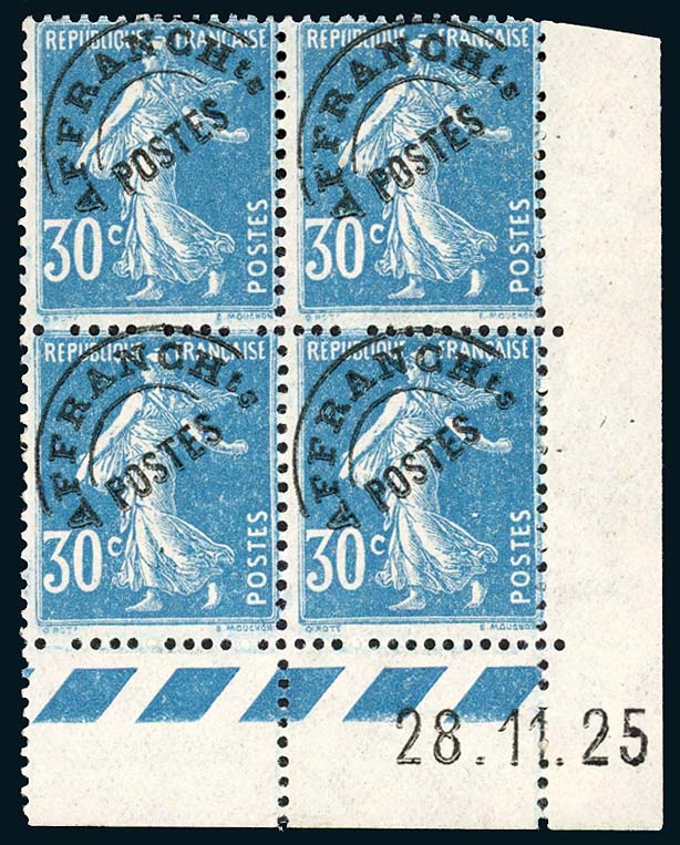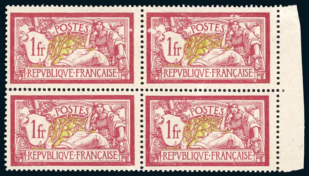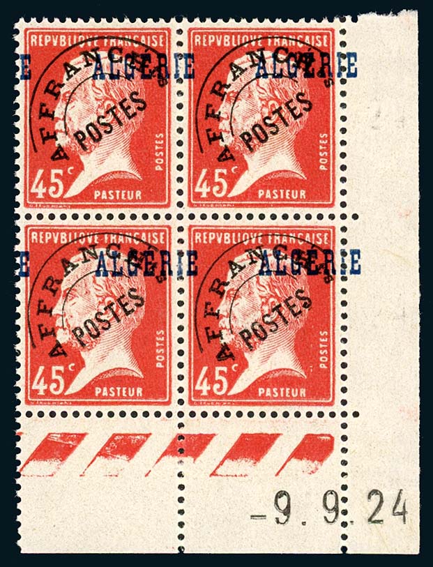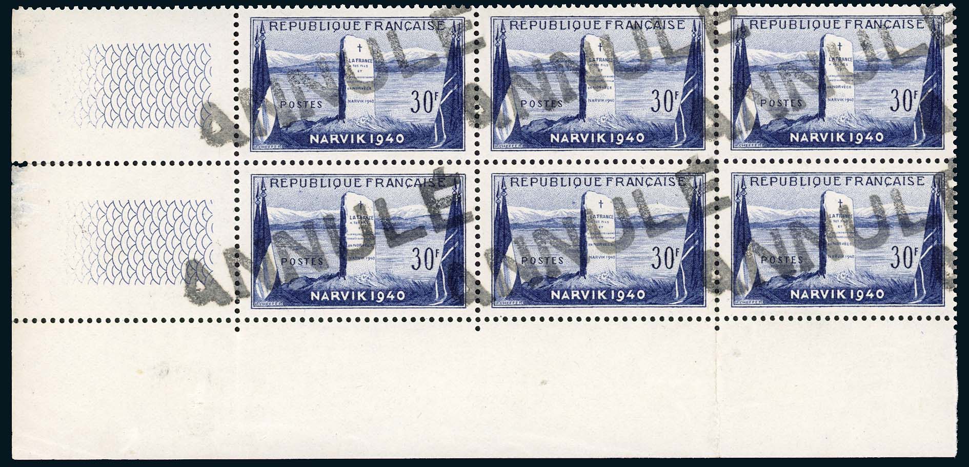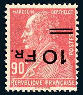 2428 | France, N°98*, 131** (rousseurs), 136*, 215** bord de feuille, 483** surcharge décalée et préo N°73** (c. 900+) TB | 130 | 260 | 130 | enchérir | |