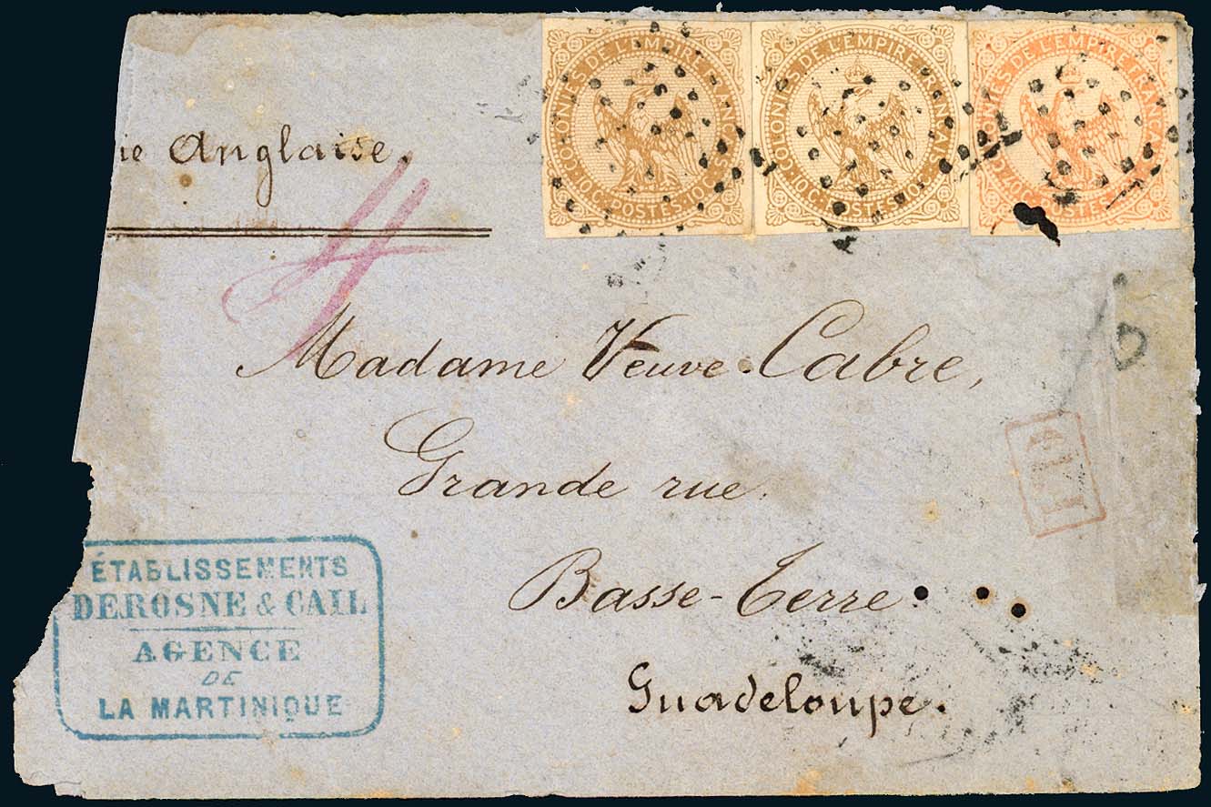 2481 | Colonies françaises, Ensemble de 21 lettres ou entiers (dont 2 BFE) 1891/1964 TB dans l'ensemble | 250 | 500 | 250 | enchérir | |