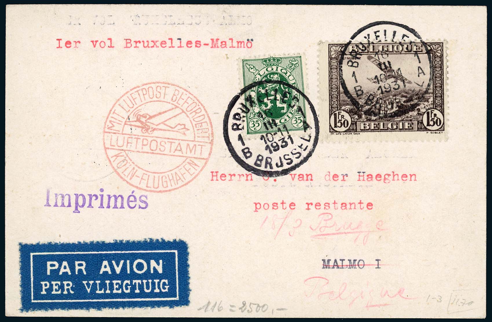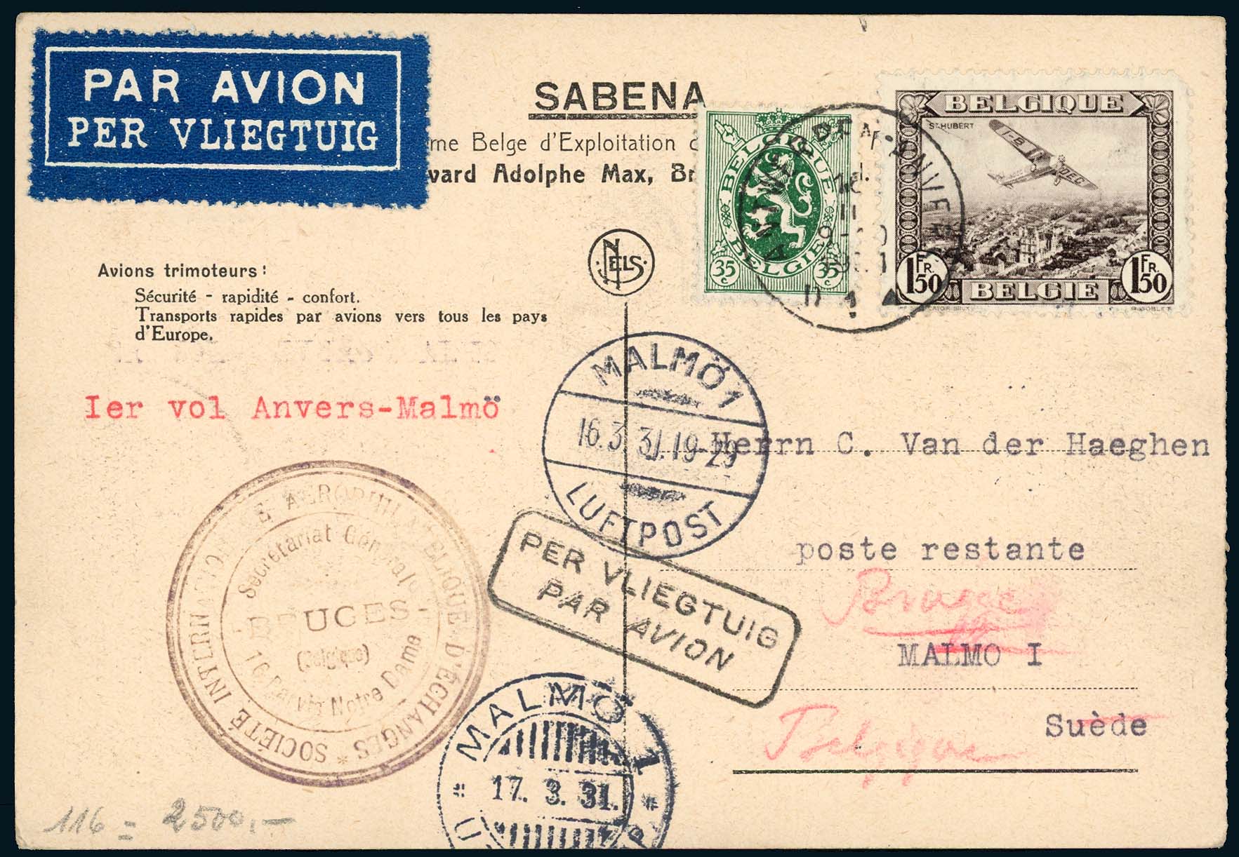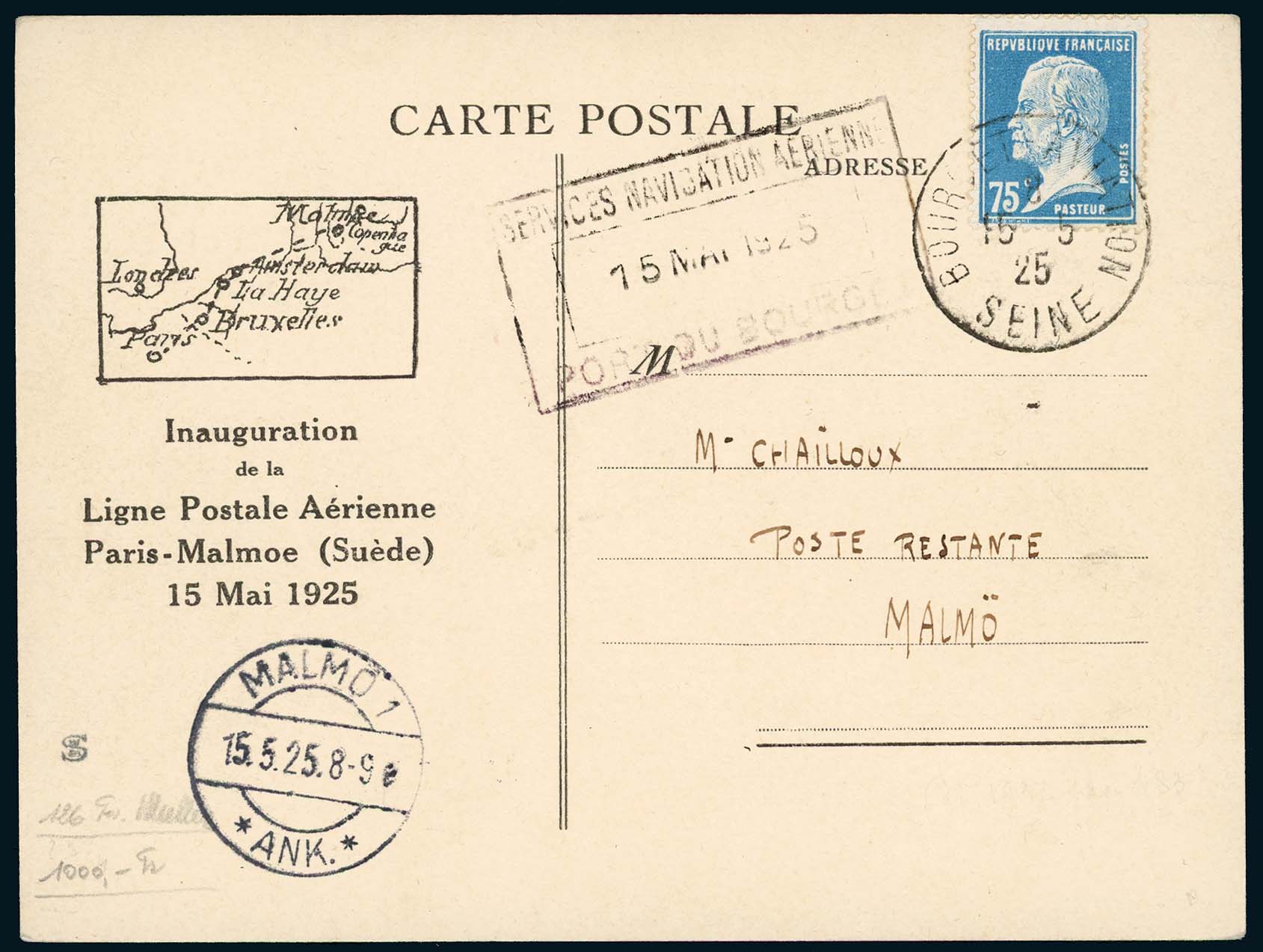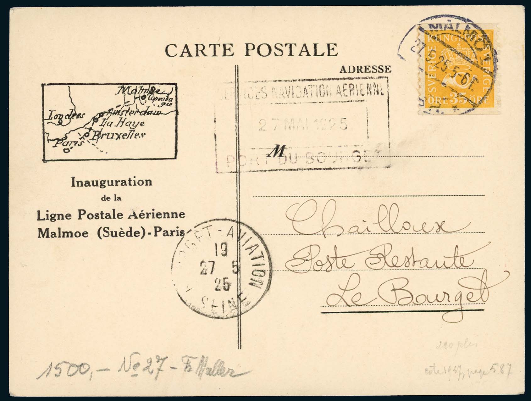 2403 | Poste Aérienne, Suède, 1er vol Malmö-Paris (Chailloux) (Muller 27) 27/5/1925 TB | 35 | 70 | 35 | enchérir | |