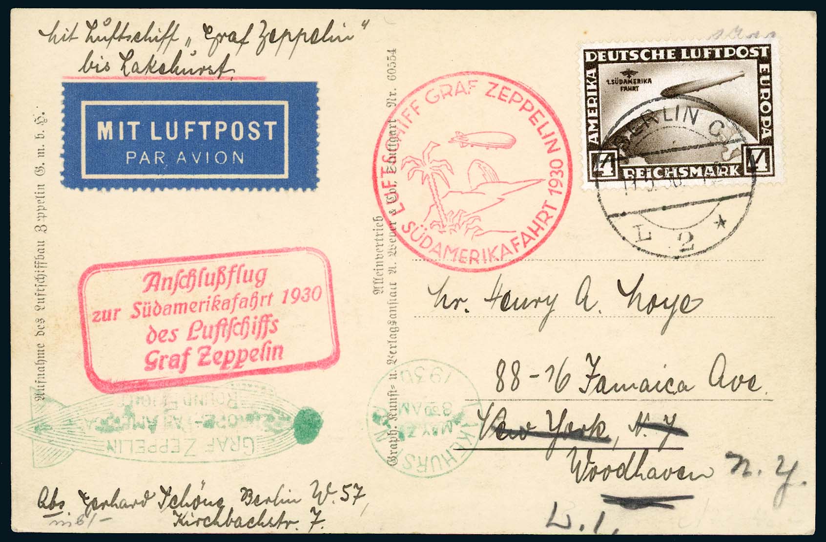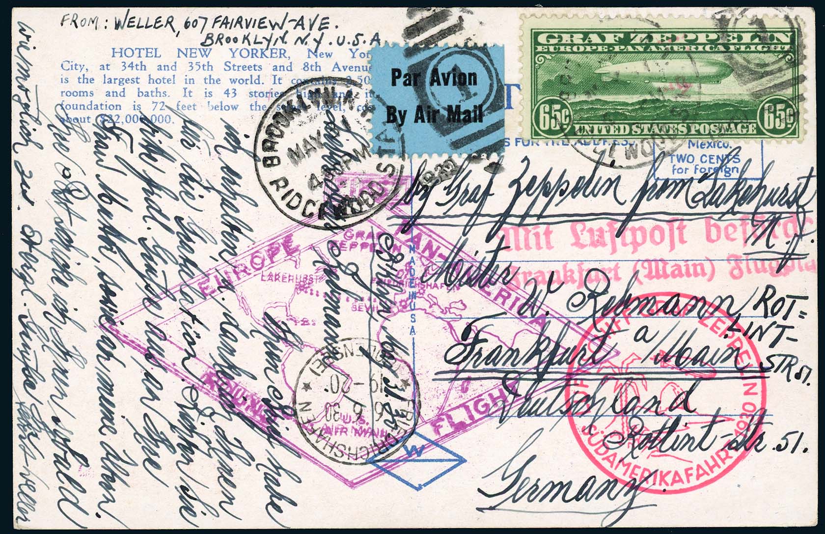 2395 | Zeppelin, USA 65c vert (Y.PA13) sur carte postale de Brooklyn du 31 mai 1930 avec C. losange EUROPE - PAN-AMERICA en violet TB | 150 | 250 | 150 | enchérir | |