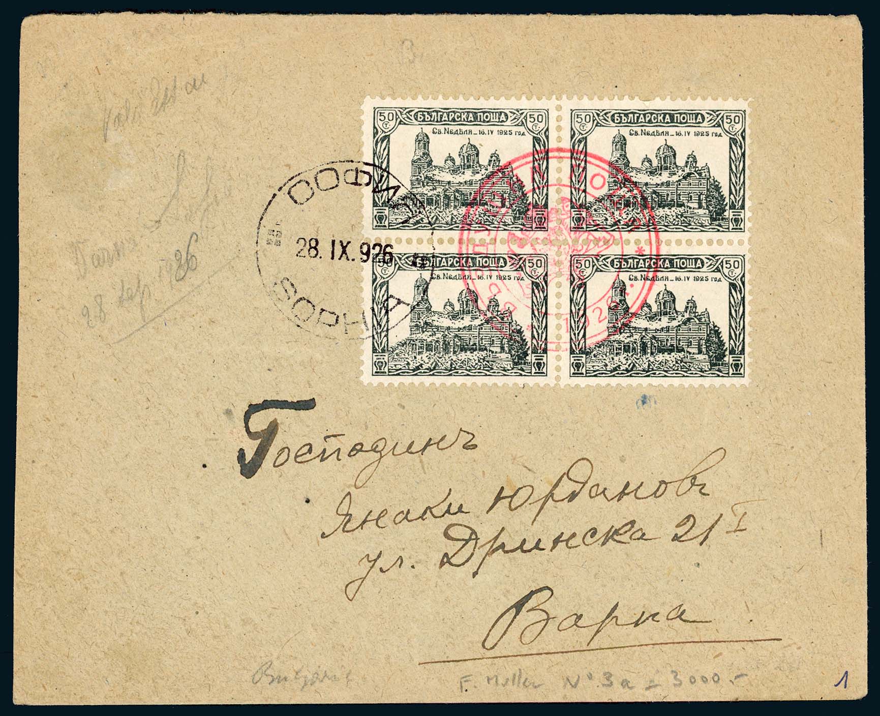 2391 | Poste Aérienne, Bulgarie, 1er vol Sofia Routchouk Varna, cachet commémoratif rouge (Muller 3a) 28/9/1926 TB | 20 | 40 | 20 | enchérir | |