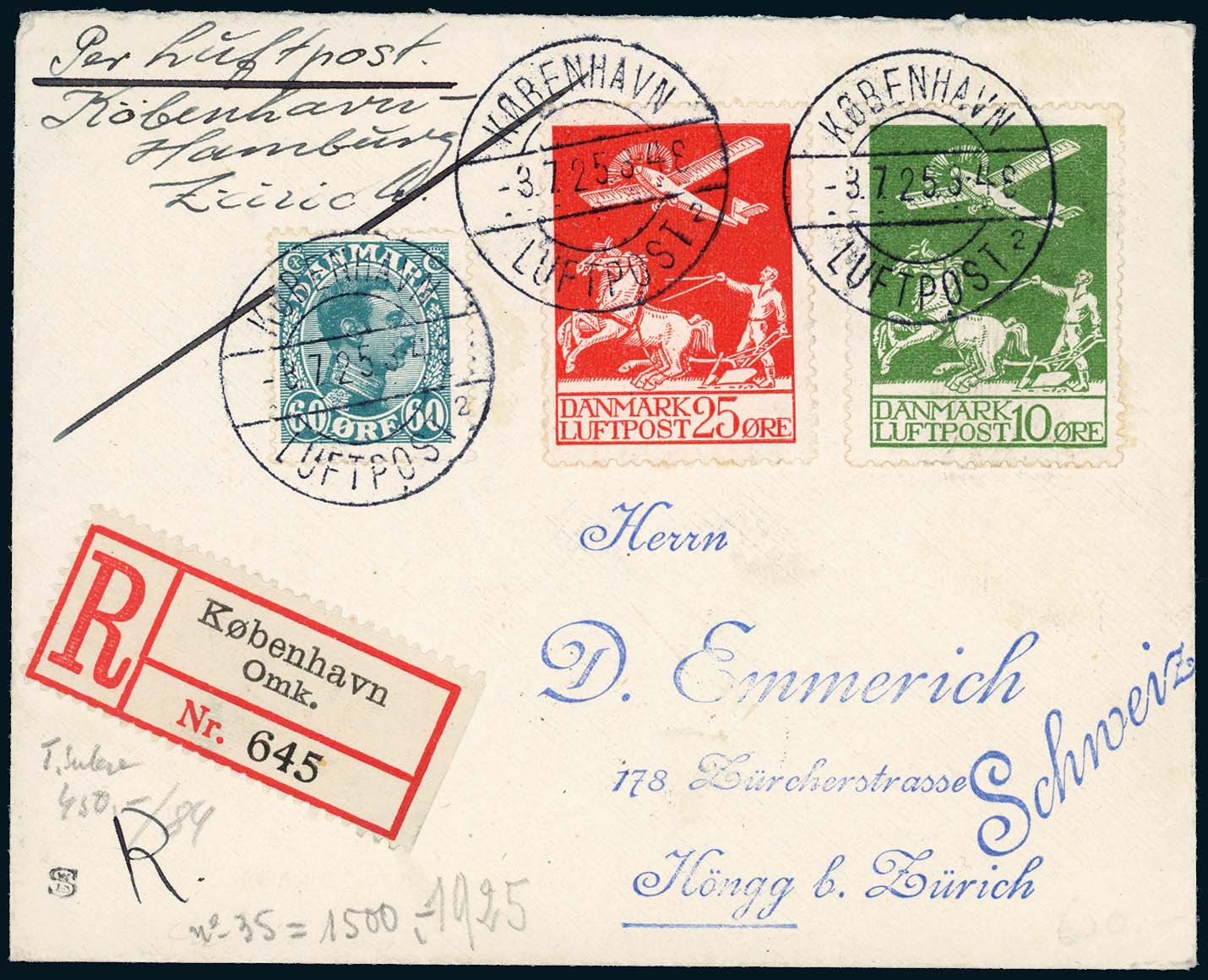 2393 | Poste Aérienne, Danemark, 1er vol Copenhague-Zurich (Muller 35) sur enveloppe recommandée 3/7/1925 TB | 30 | 60 | 30 | enchérir | |