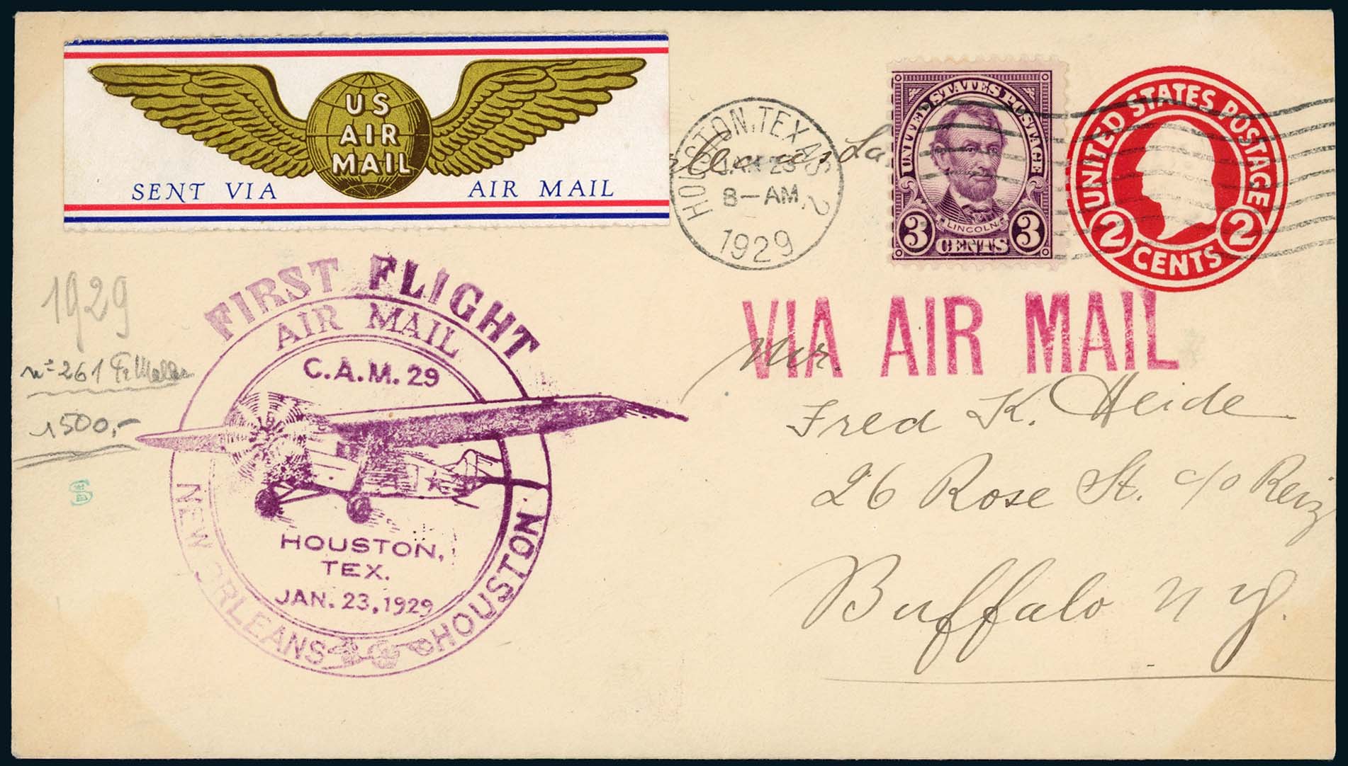 2394 | Poste Aérienne, USA, 1er vol New Orleans-Houston (Muller 261) 23/1/1929 TB | 40 | 80 | 40 | enchérir | |